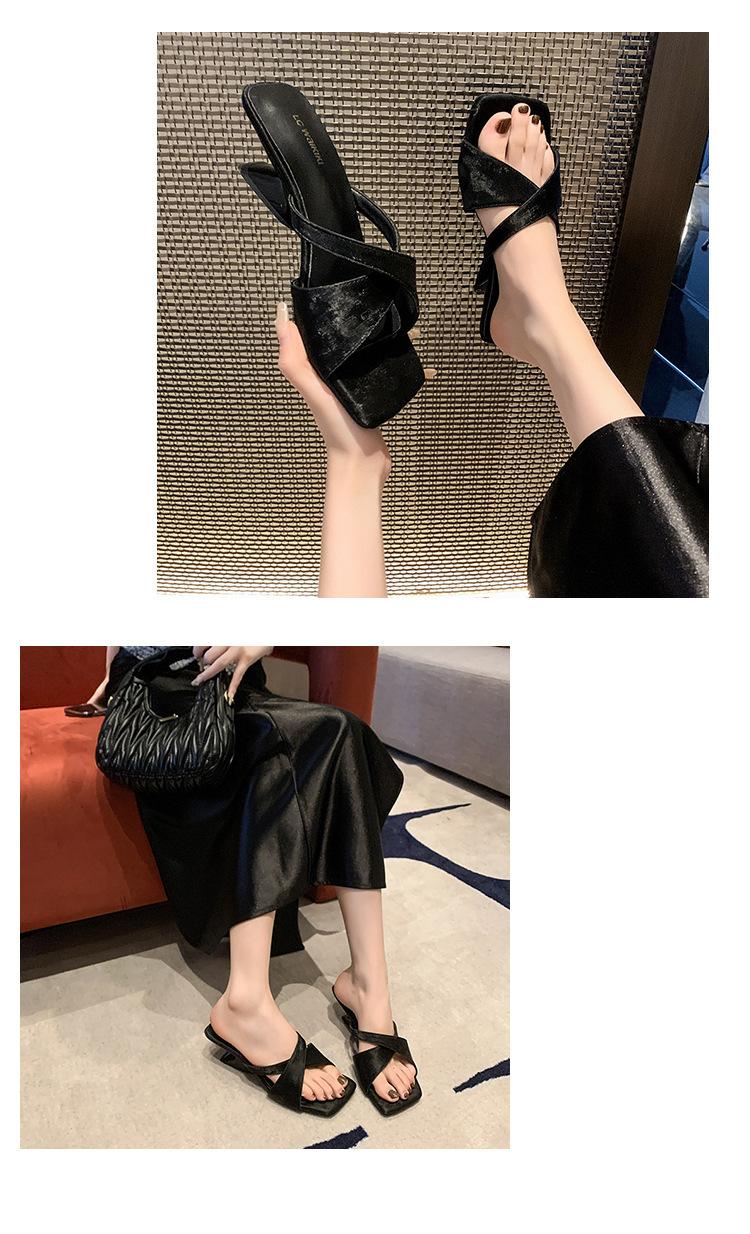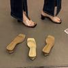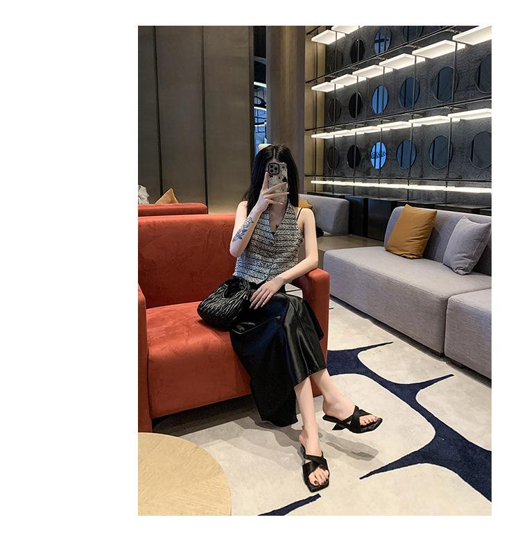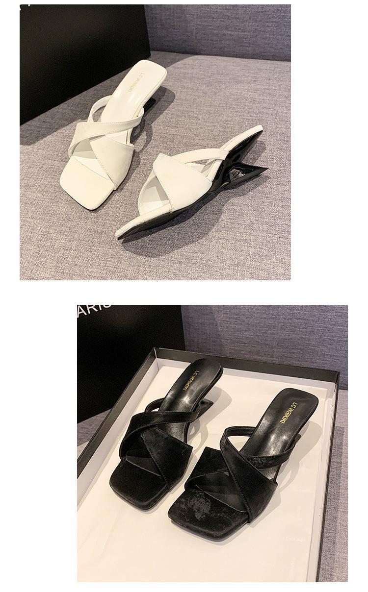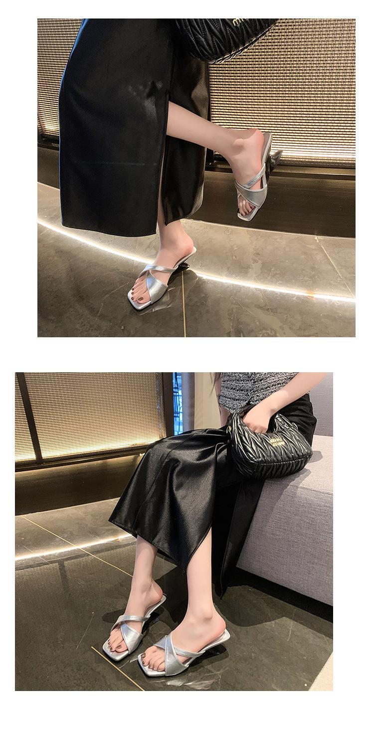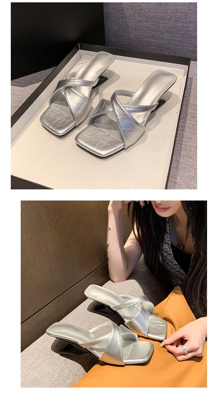 2024 Verano Nueva Llegada Estilo Francés Elegantes Sandalias y Pantuflas de Tacón Bajo para Mujer Estilo Coreano Moda Punta Cuadrada Punta Abierta para Exterior Tiendas de Una Palabra