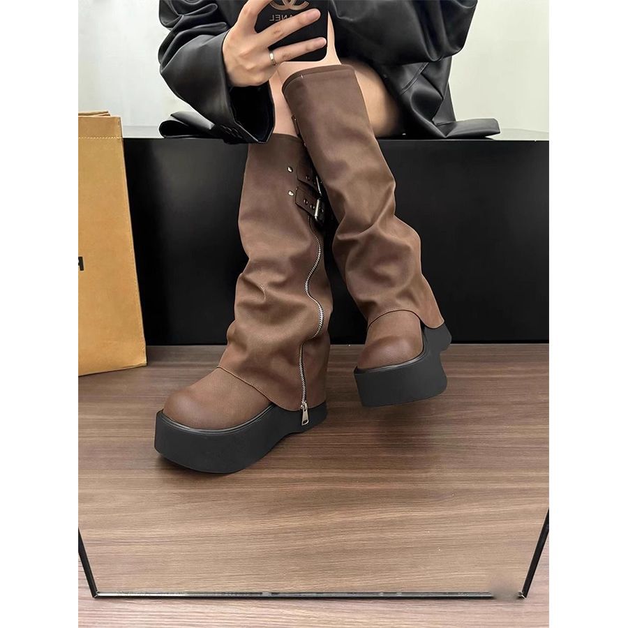Botas Largas de Diseño Botas Vaqueras Western para Mujer Otoño 2025 Nuevas de Suela Gruesa para Aumentar la Altura Botas de Plataforma Estilo Urbano