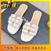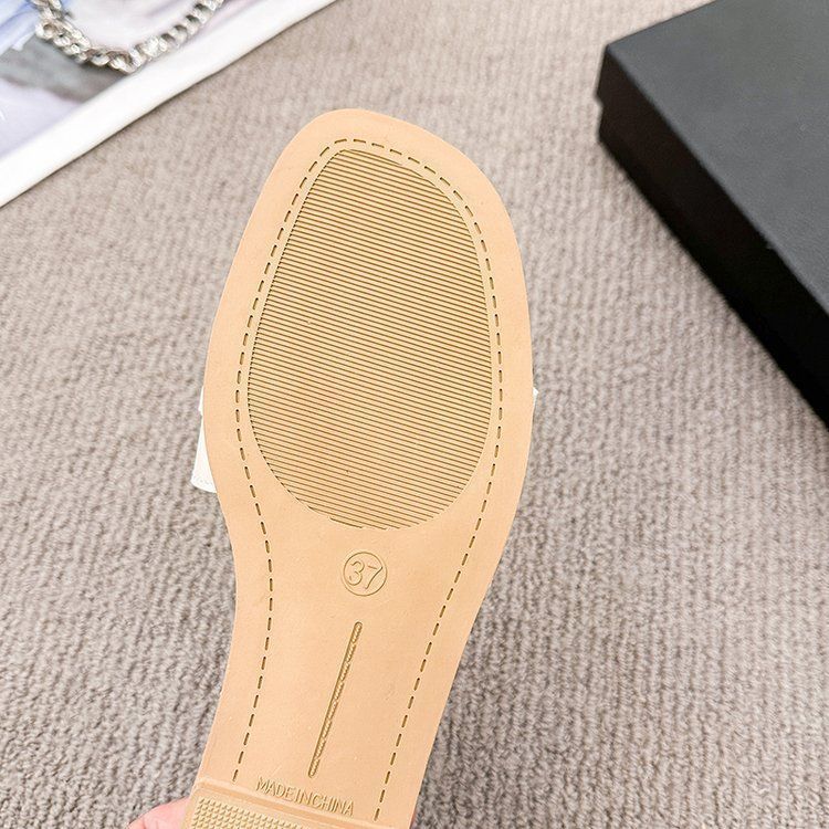 Pantuflas planas para uso exterior de mujer 2025 Verano Nueva Moda Pantuflas de punta cuadrada Sandalias versátiles antideslizantes