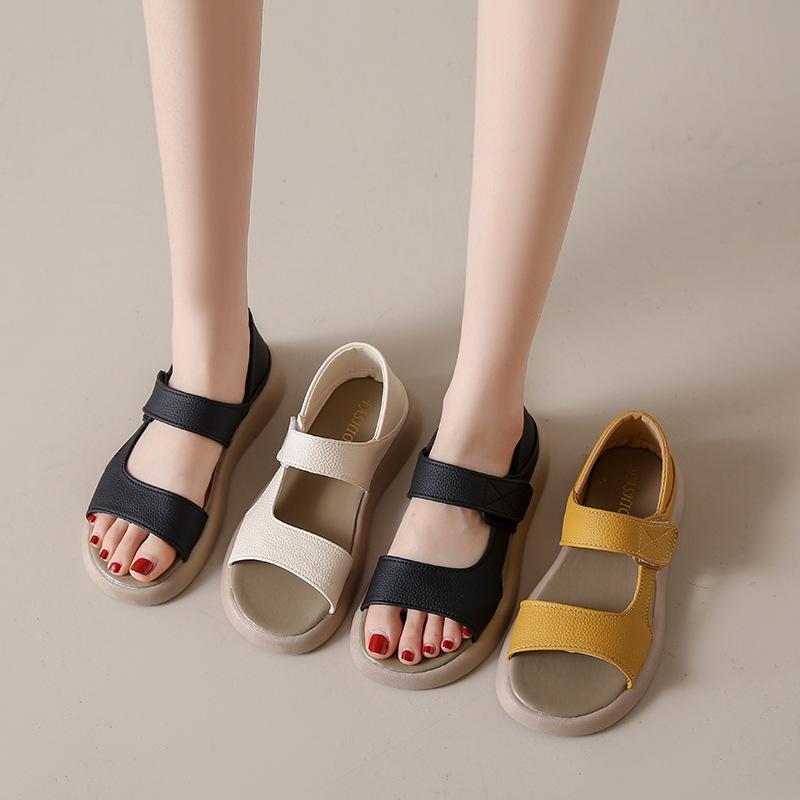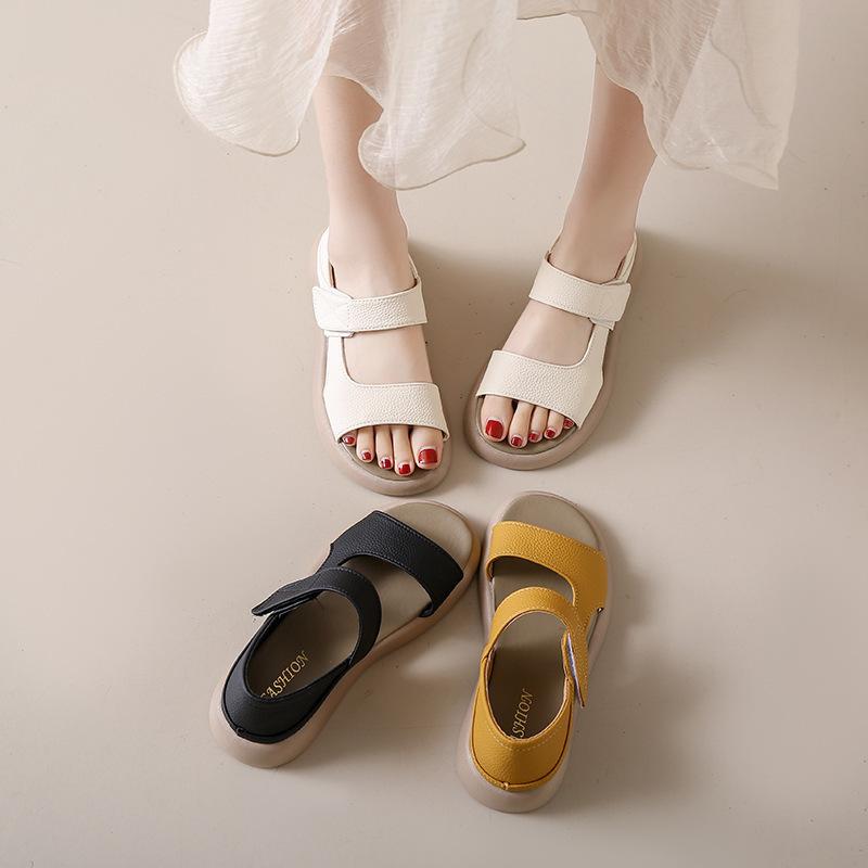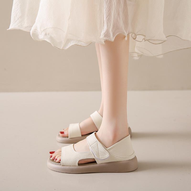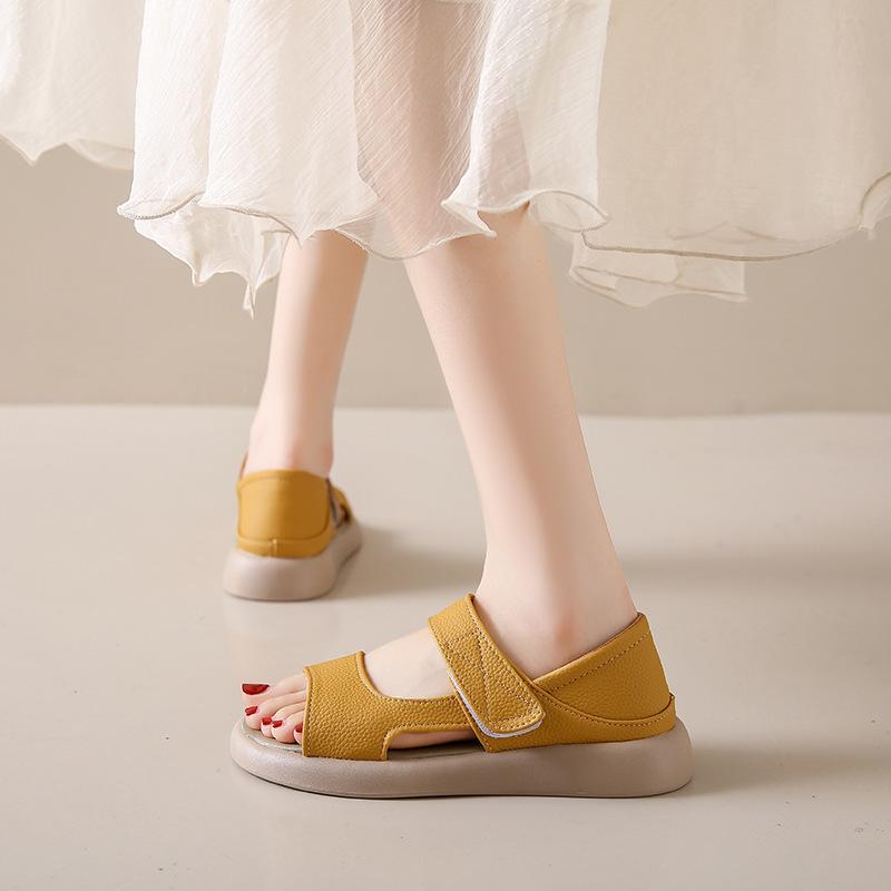 Comercio Exterior 2025 Primavera, Verano y Otoño Nueva Moda Casual Zapatos de Mujer Punta Abierta Punta Redonda Planas Romanas Sandalias Gruesas