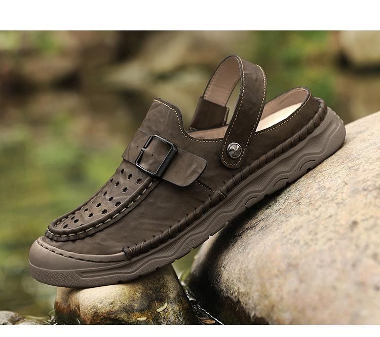 Comercio Exterior Calzado de Hombre de Talla Grande Más Vendido Transfronterizo Verano Nuevo Baotou Casual Transpirable Cuero Sandalias de Playa para Hombre