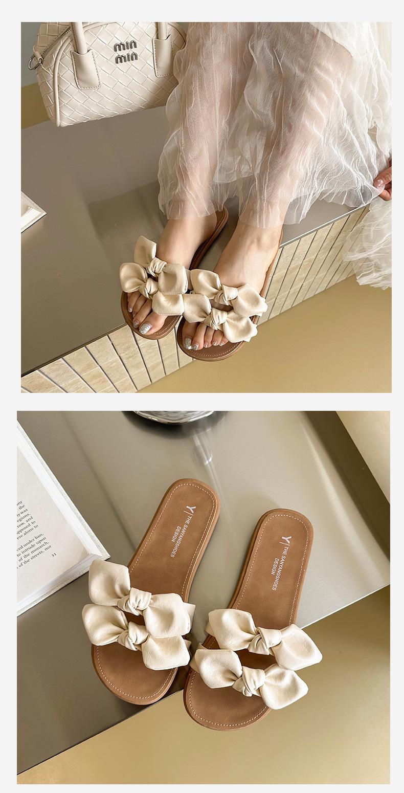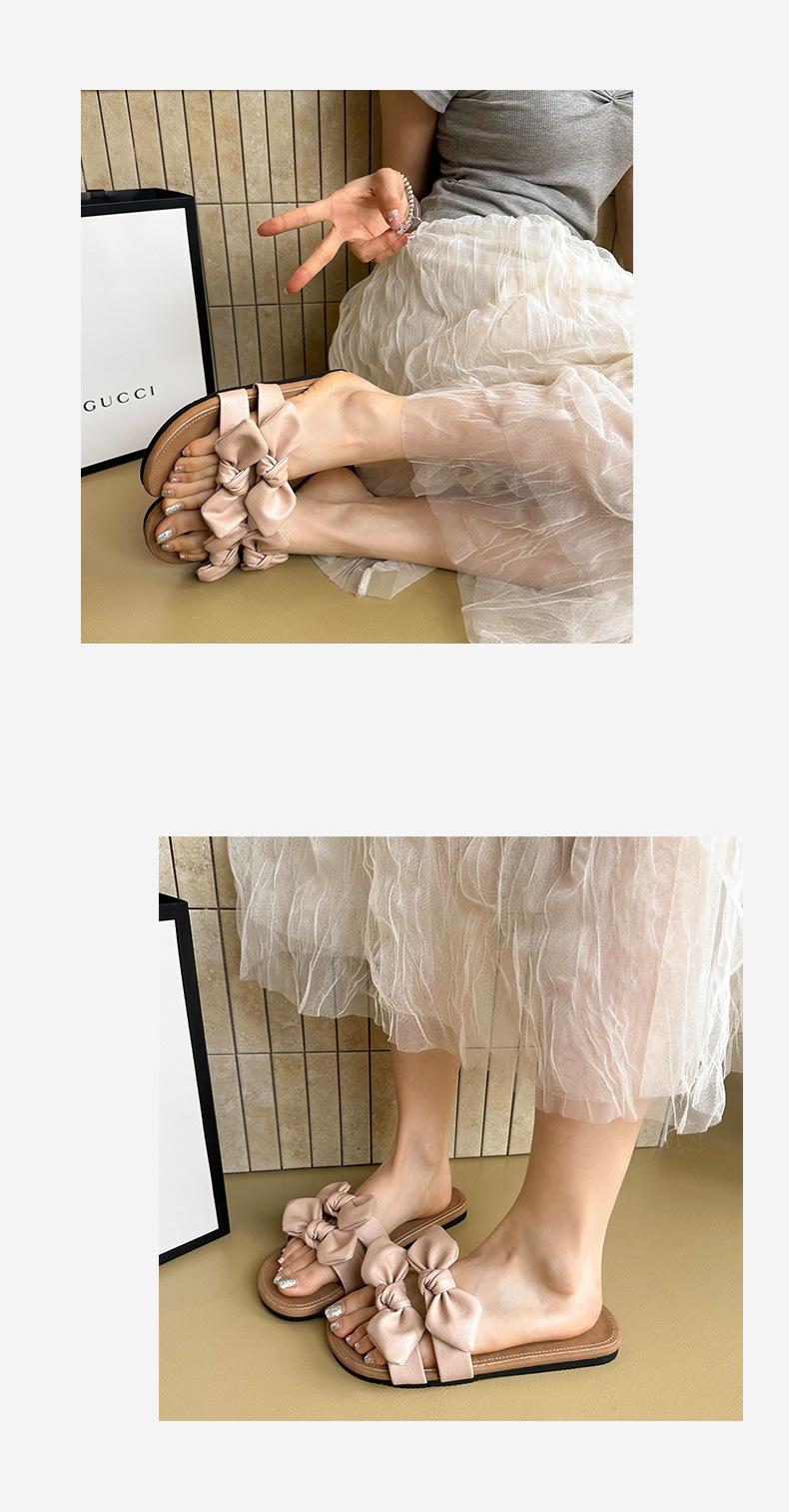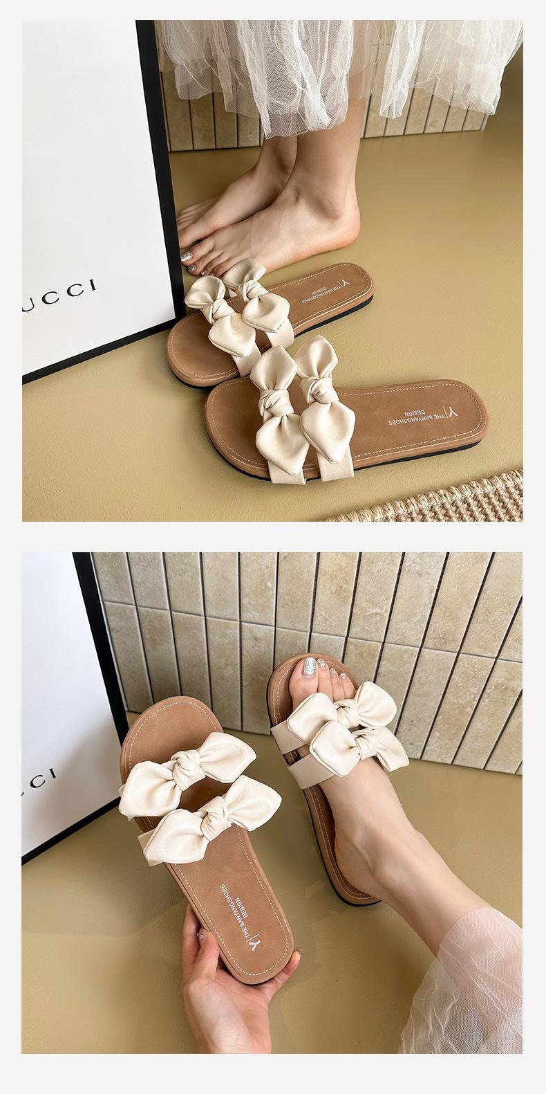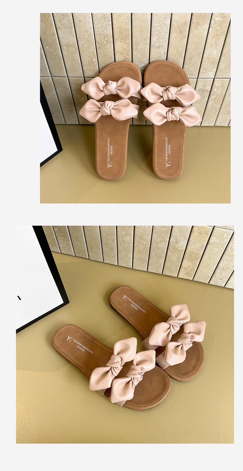 Verano Nuevas Pantuflas de Lazo de Suela Plana 2025 Sandalias de Exterior de Suela Blanda para Mujer Pantuflas Casuales para Mujer