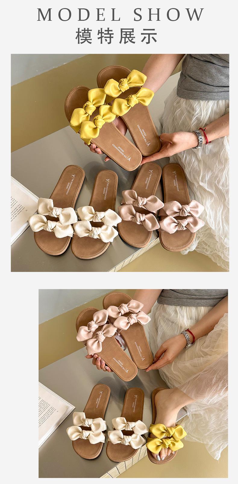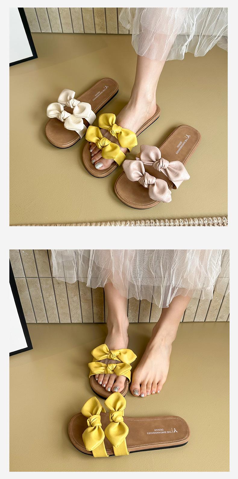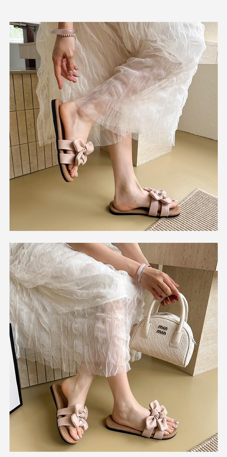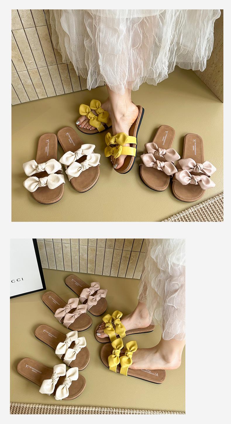 Verano Nuevas Pantuflas de Lazo de Suela Plana 2025 Sandalias de Exterior de Suela Blanda para Mujer Pantuflas Casuales para Mujer