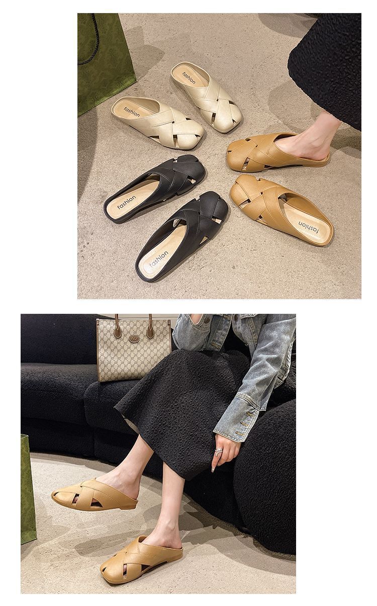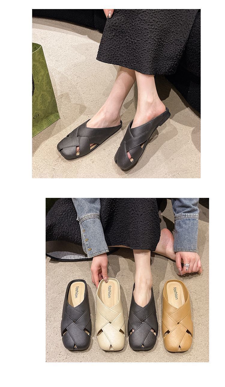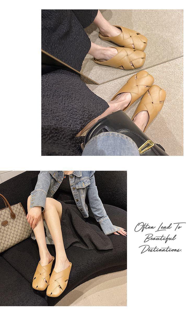 Pantuflas de Media Mujer Pantuflas de Punta Francesa 2024 Verano Primavera y Verano Nuevo Exterior Moda Pantuflas Planas Holgazanas