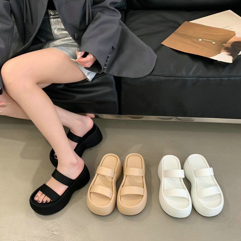 Ropa de Calle Casual Zapatillas de Moda Verano 2025 Nuevo Sandalias de Plataforma de Suela Gruesa Estilo Coreano para Personas Pequeñas