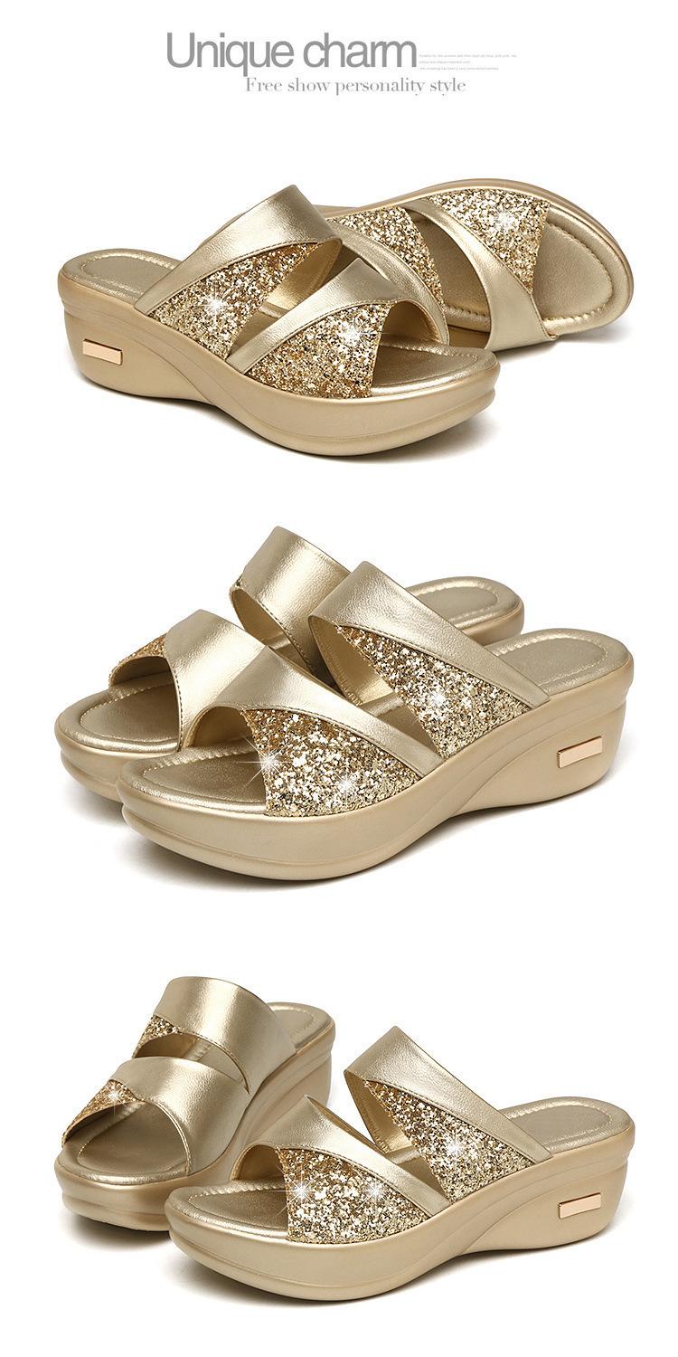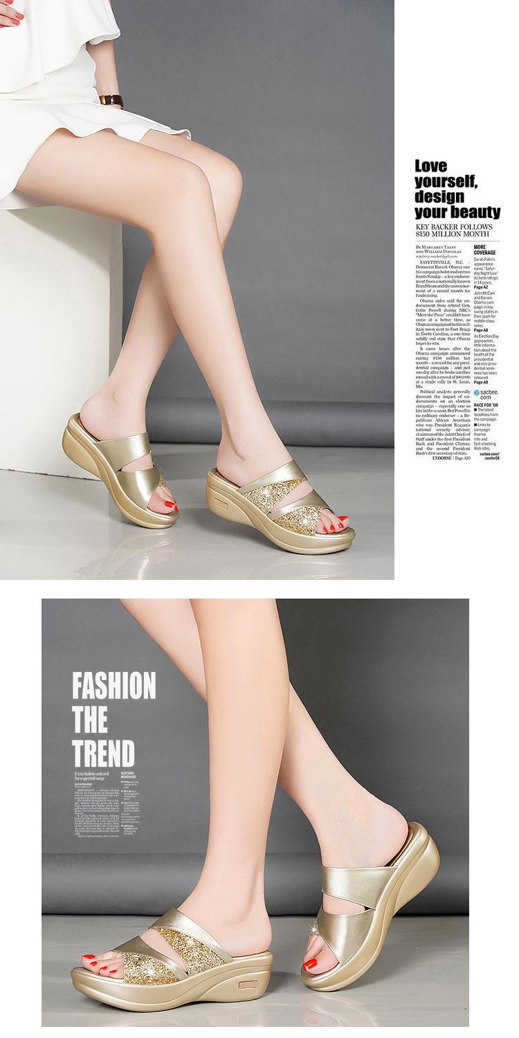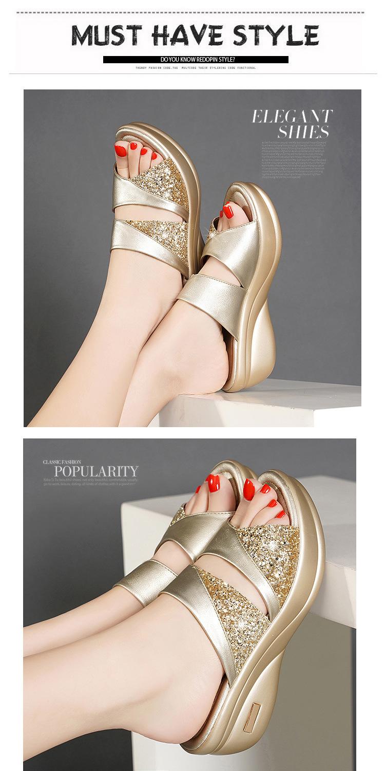 Sandalias de Verano para Mujer para Exterior Moda 2022 Nuevas Plataforma de Suela Gruesa Tacones de Cuña para Mujer, Zapatillas de Lentejuelas de Boca de Pez Fáciles de Combinar para Mujer