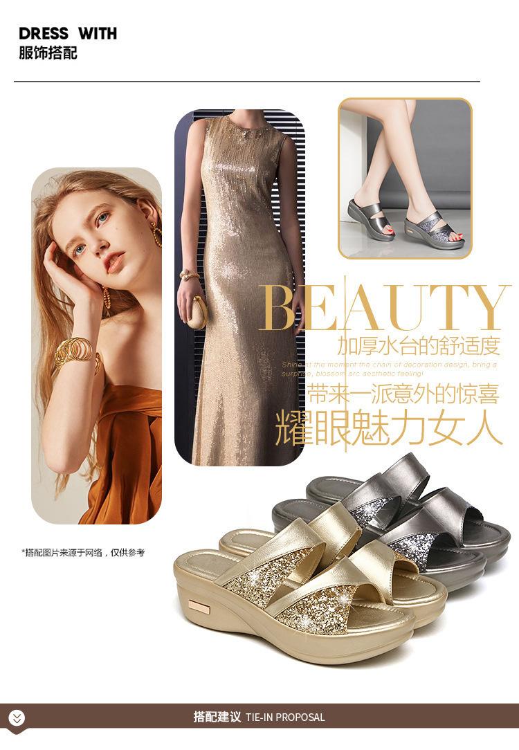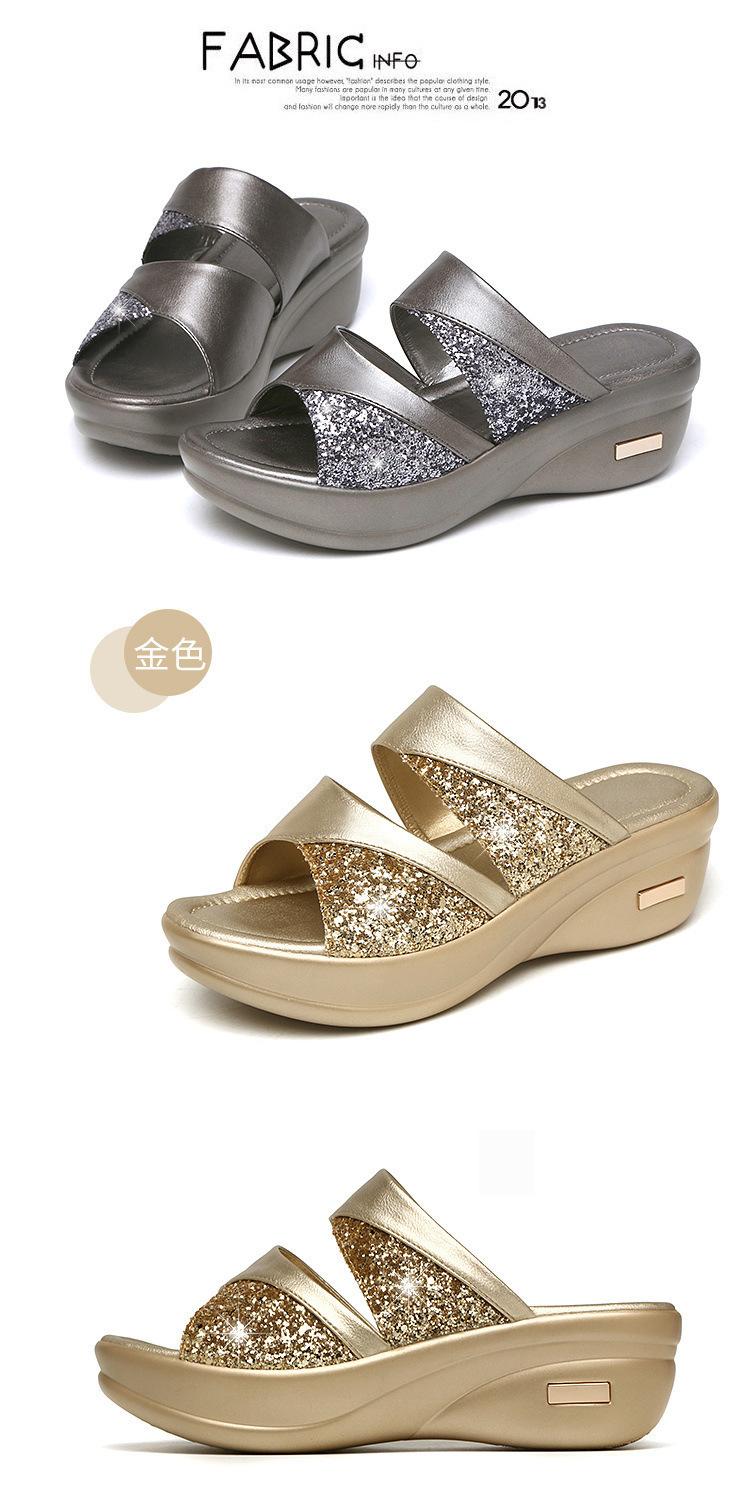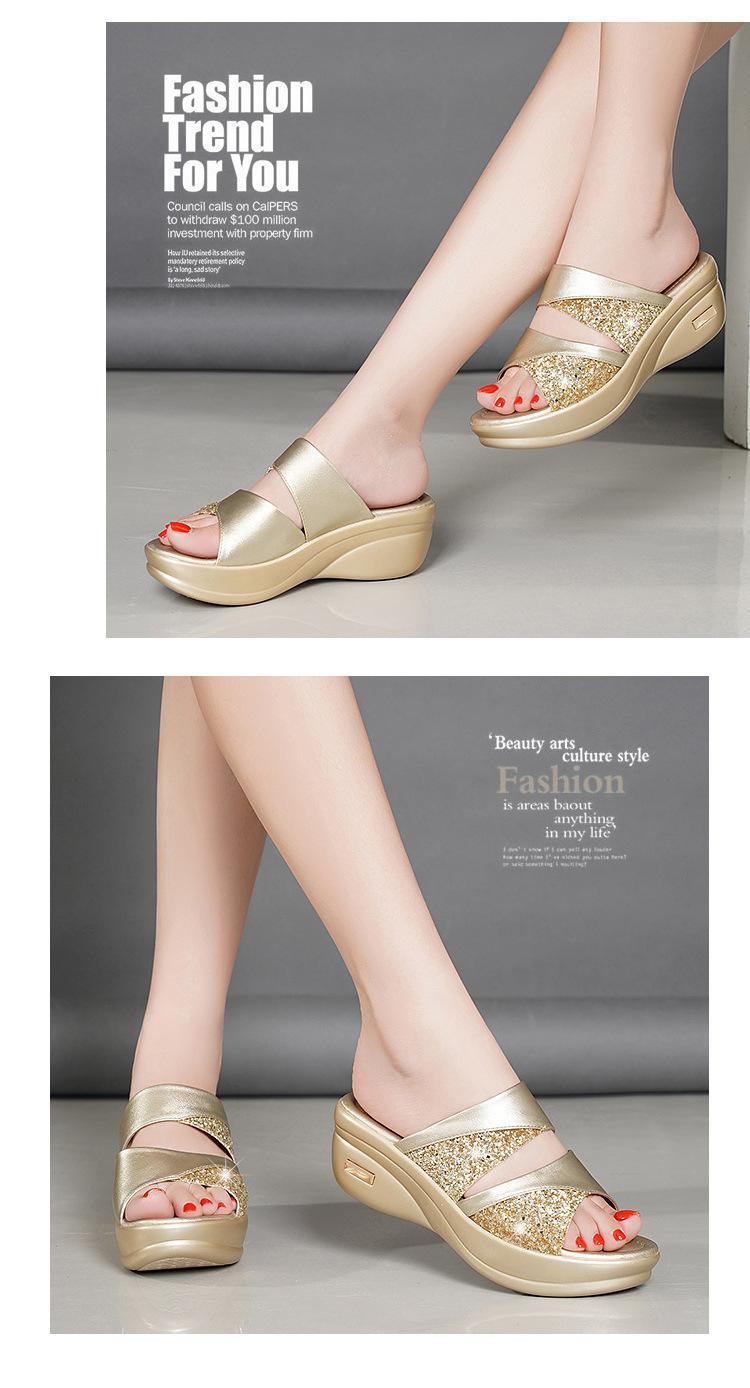 Sandalias de Verano para Mujer para Exterior Moda 2022 Nuevas Plataforma de Suela Gruesa Tacones de Cuña para Mujer, Zapatillas de Lentejuelas de Boca de Pez Fáciles de Combinar para Mujer