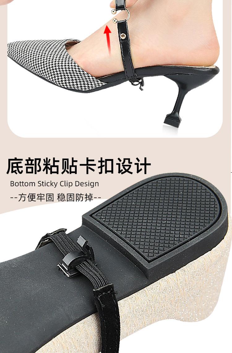 Zapatos de tacón alto sin instalación perezosa, con cordones y banda elástica para mujer, con correa sin talón, hebilla semicircular elástica fija