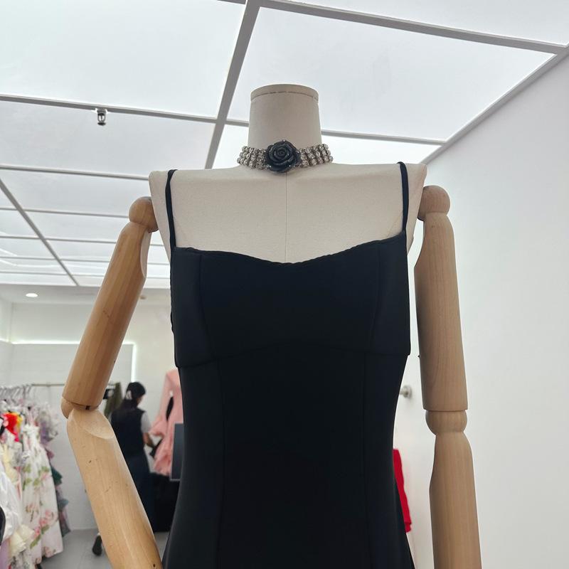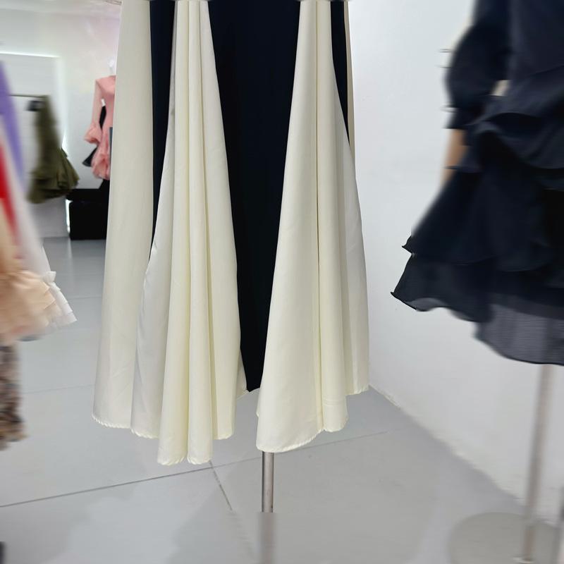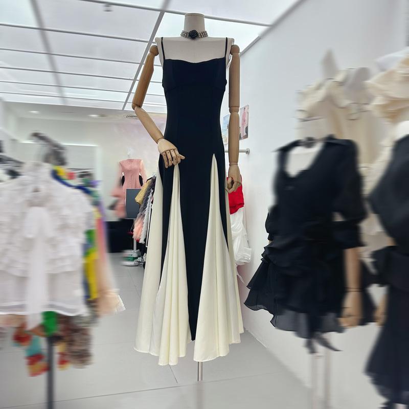 Vestido de Tirantes Europeo y Americano Transfronterizo Estilo Francés Bloque de Color Blanco y Negro Adelgazante Dobladillo Grande Vestido Largo hasta el Piso
