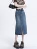 Falda Vaquera Pequeña con Abertura para Mujer Otoño 2024 Nueva Cintura Alta Adelgazante Cadera A Palabra Falda Larga