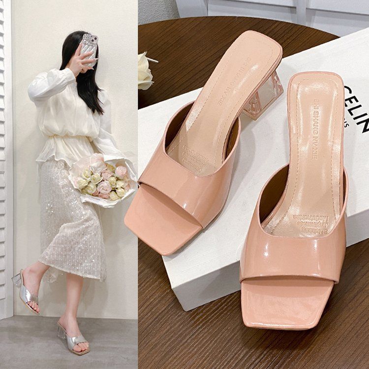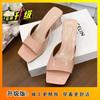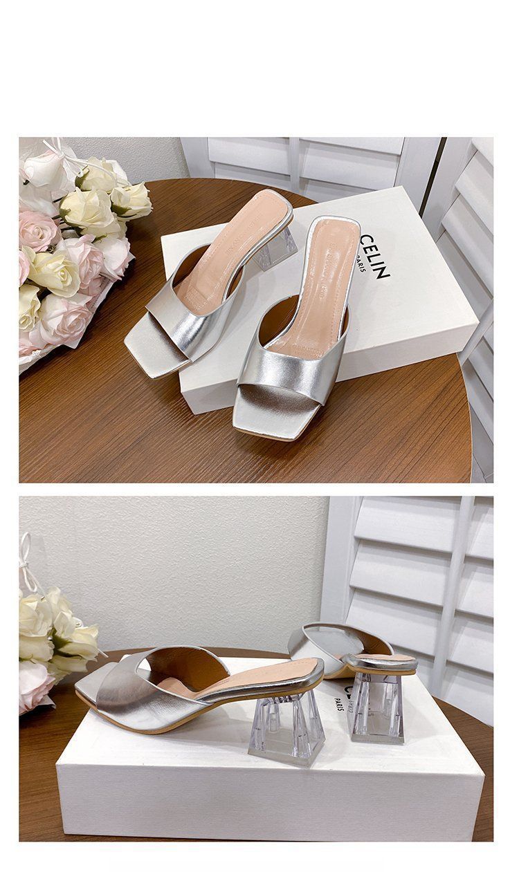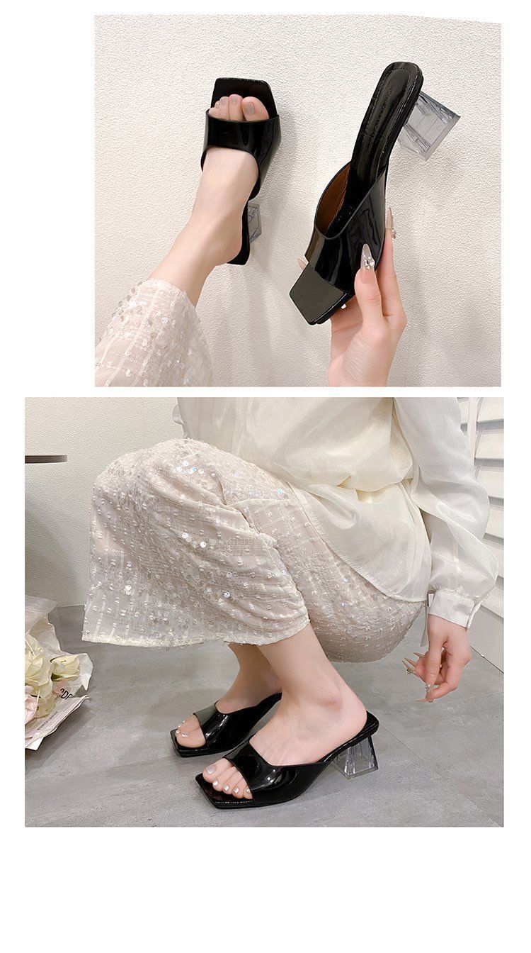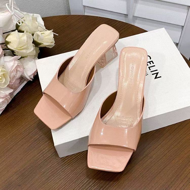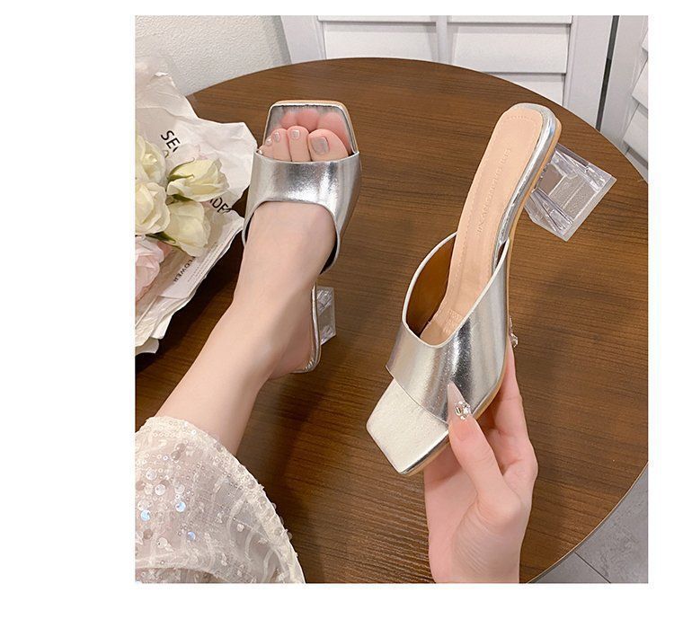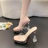 Tacones Altos Transparentes Casuales de Cristal con Tacón Grueso Zapatillas de Tira de Punta Cuadrada para Mujer 2025 Verano y Otoño Nuevas Sandalias Versátiles