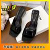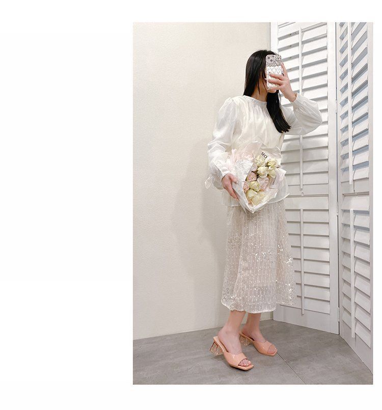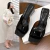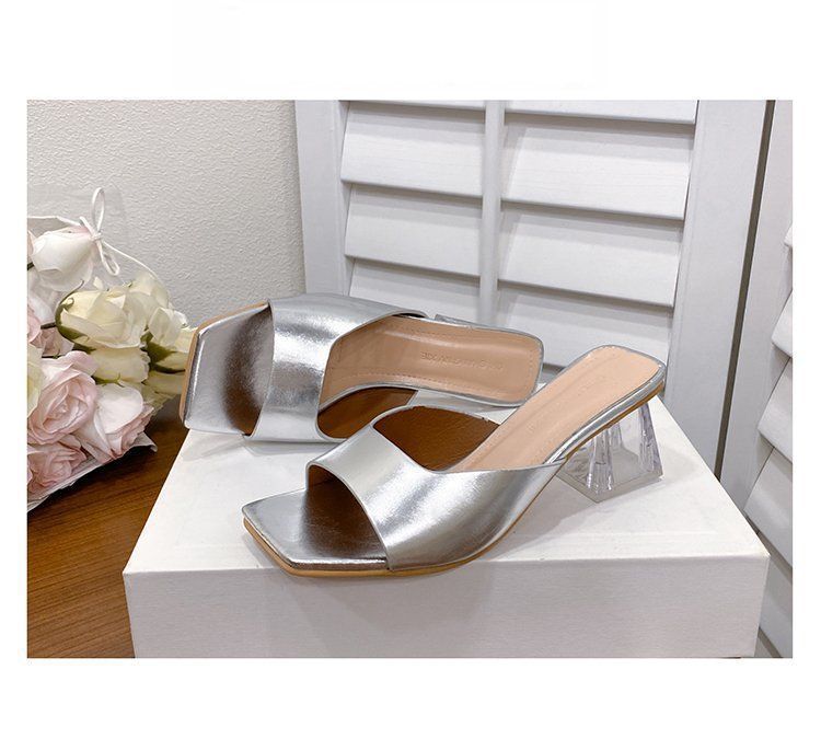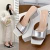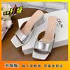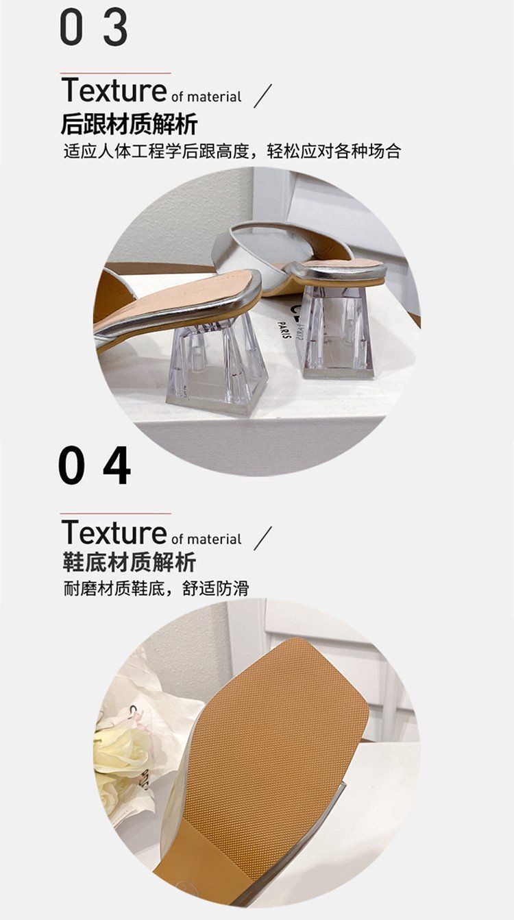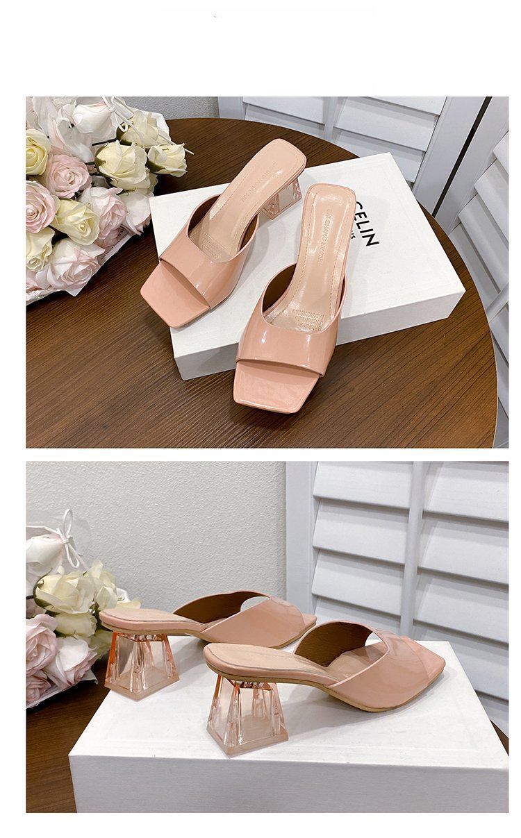 Tacones Altos Transparentes Casuales de Cristal con Tacón Grueso Zapatillas de Tira de Punta Cuadrada para Mujer 2025 Verano y Otoño Nuevas Sandalias Versátiles