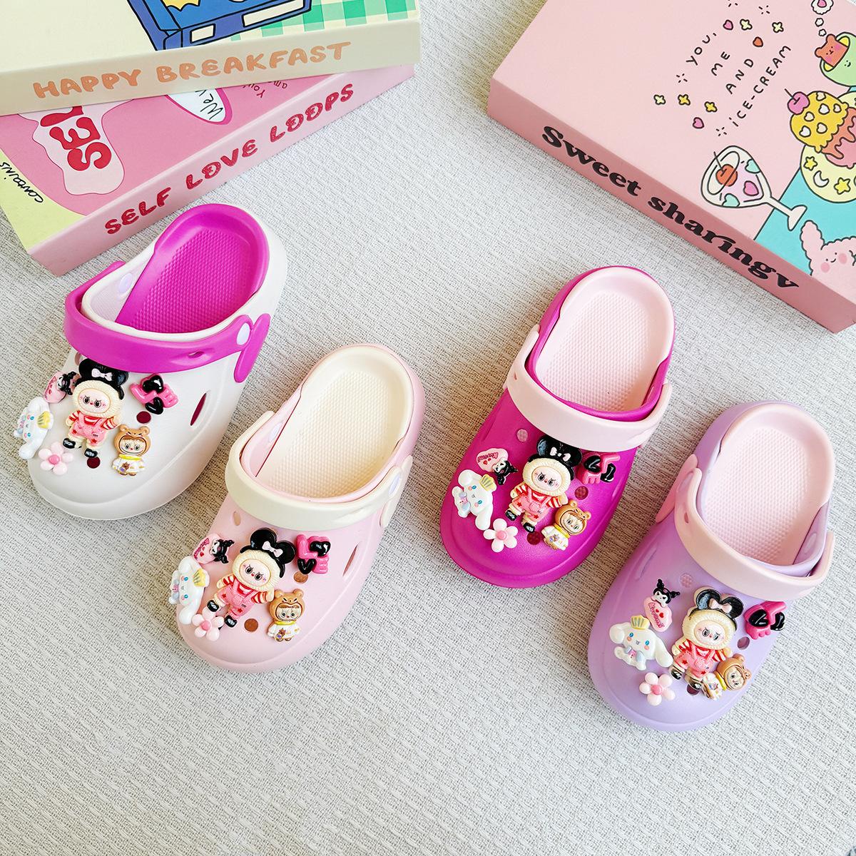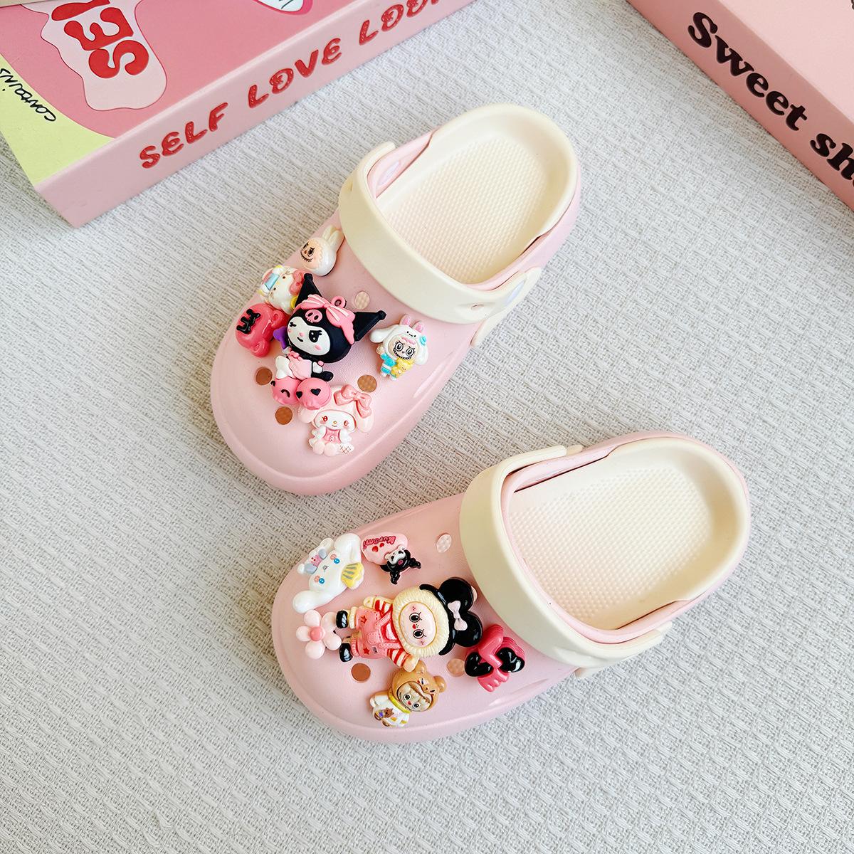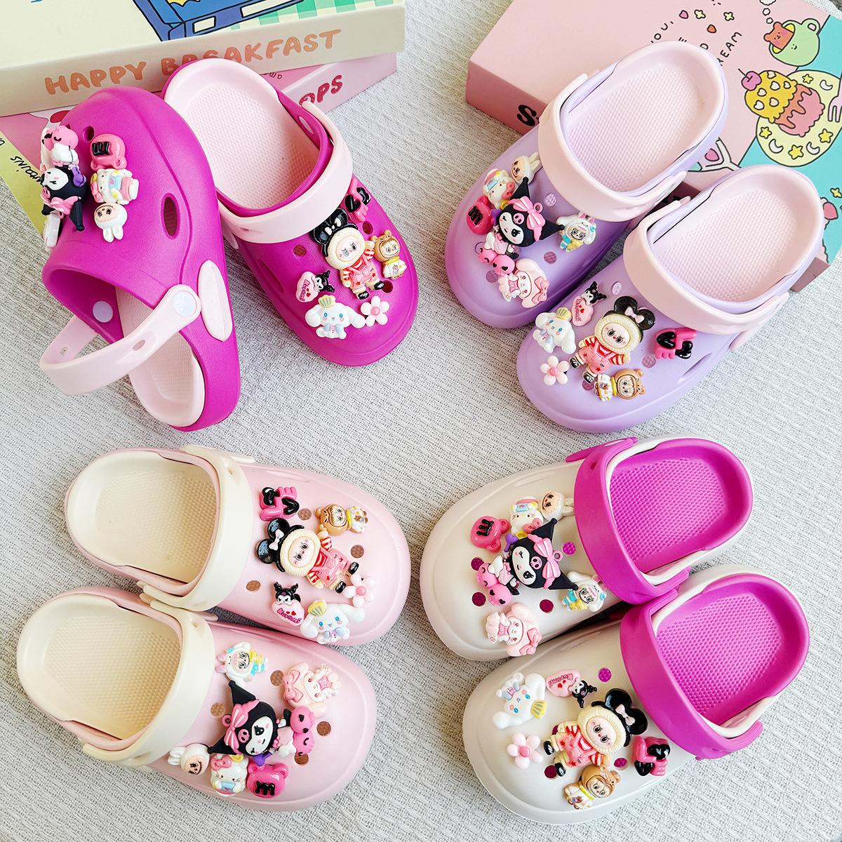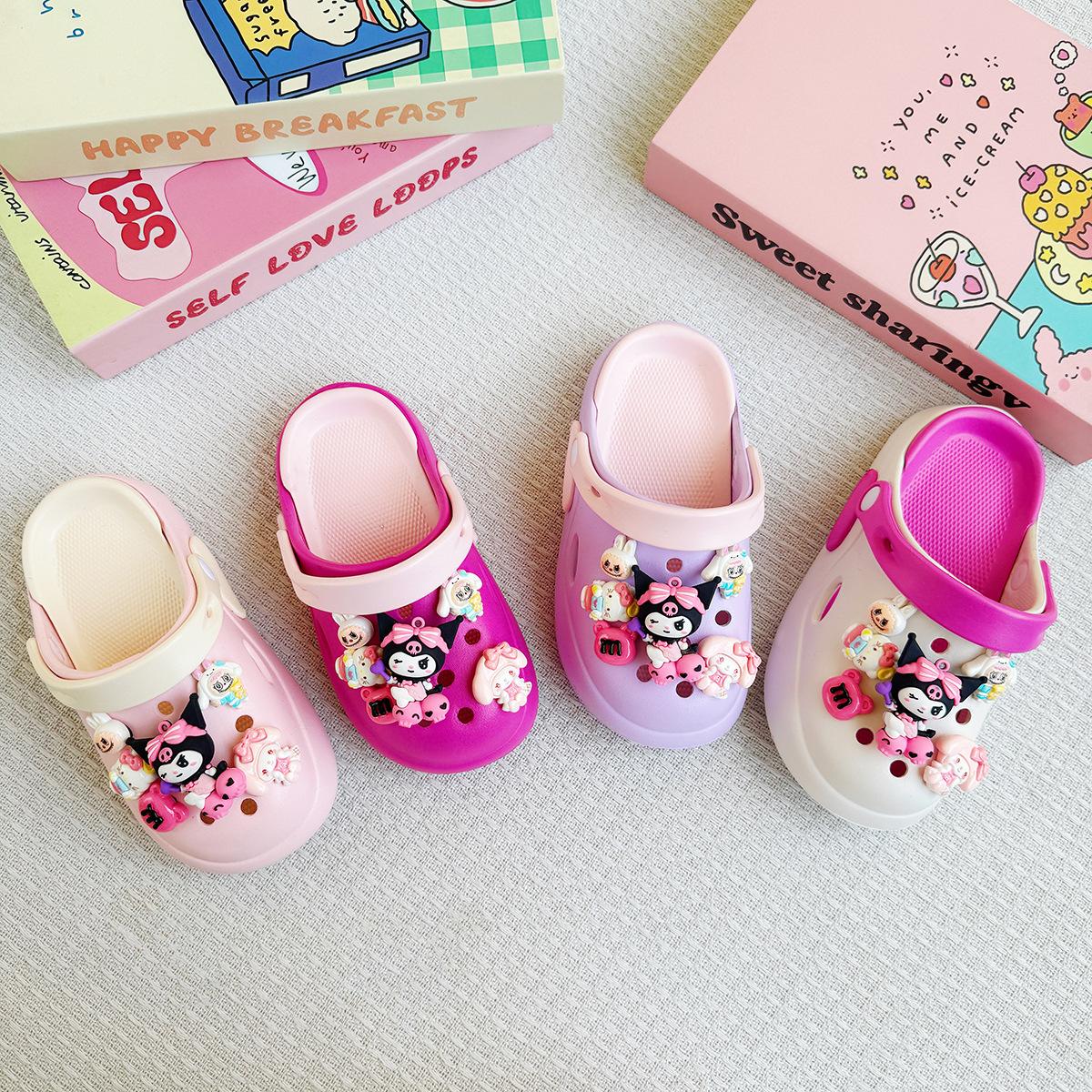 Nuevas Pantuflas para Niñas Dibujos Animados Kulomirabu Doble Color Combinación con Todo Zapatos con Agujeros Suela Suave Antideslizante Sandalias de Dedo