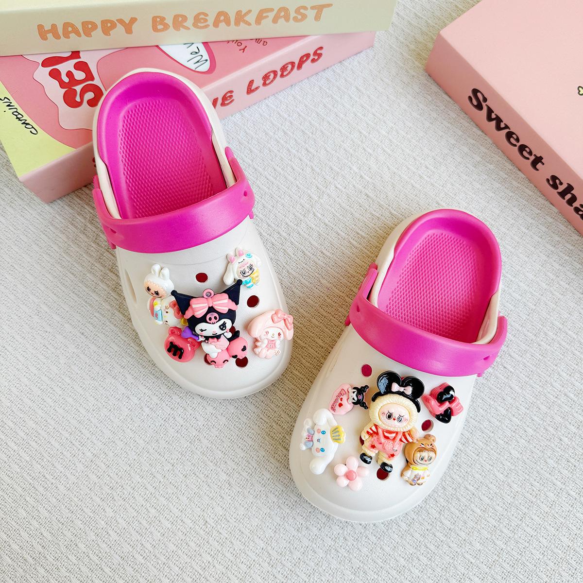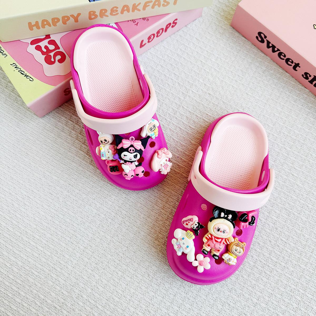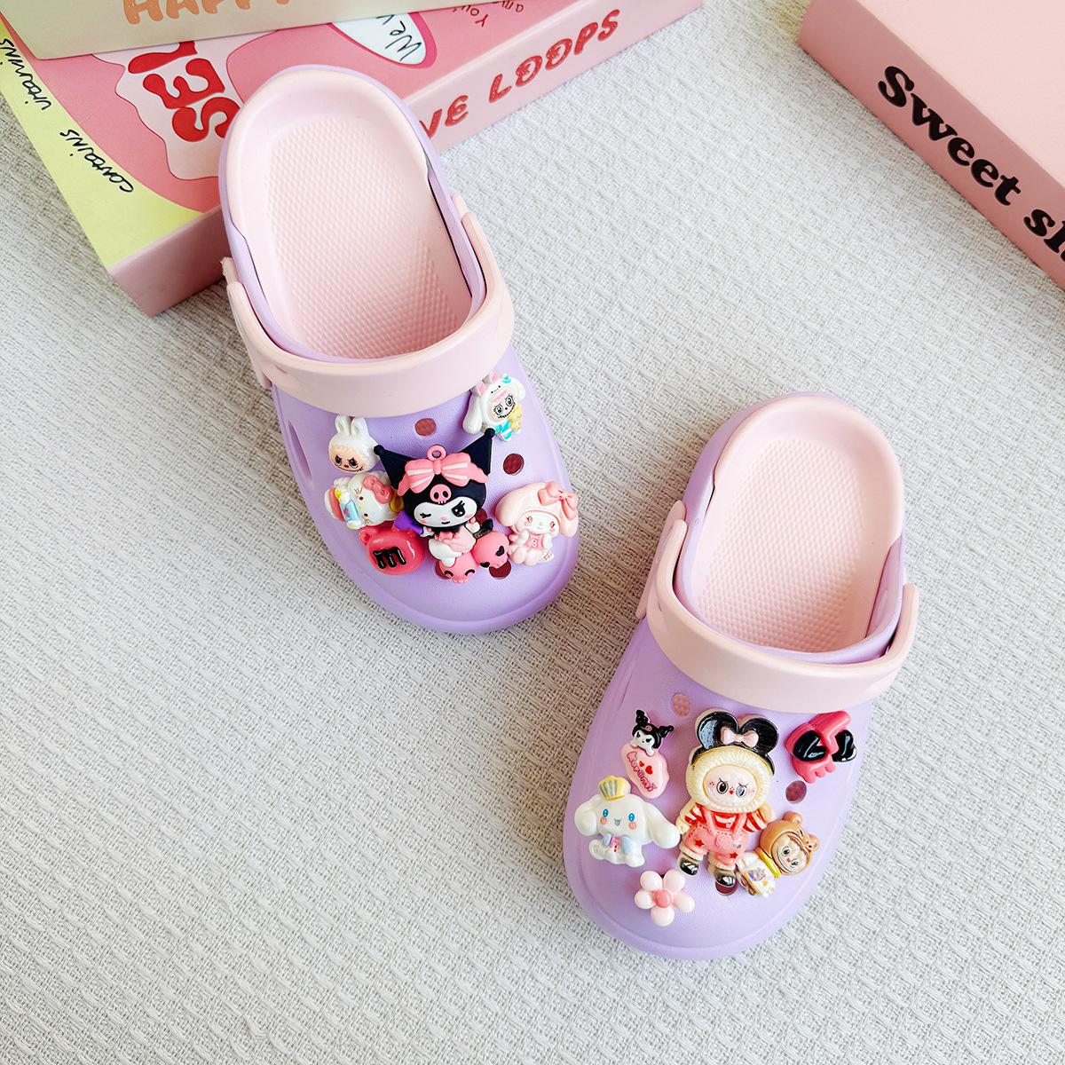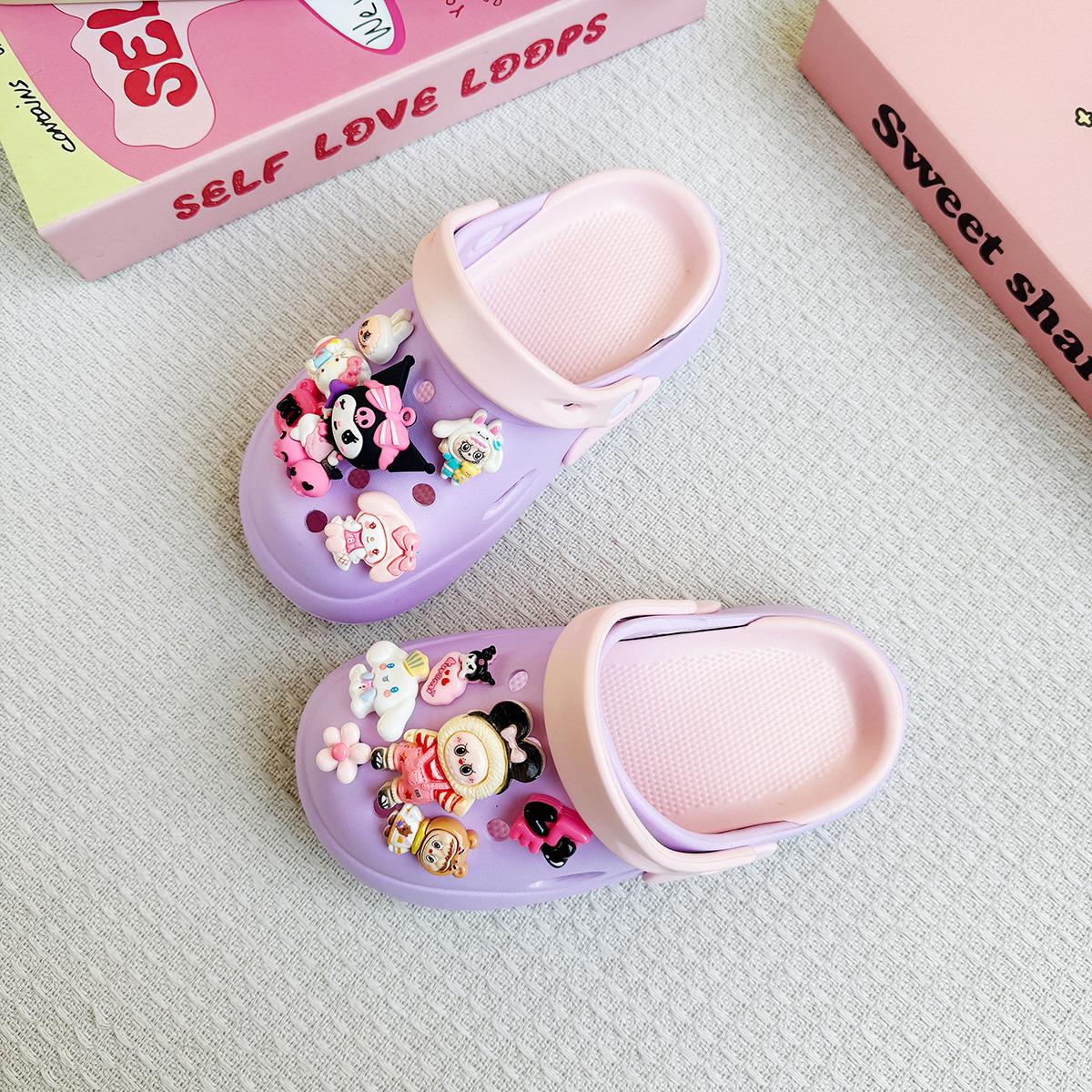 Nuevas Pantuflas para Niñas Dibujos Animados Kulomirabu Doble Color Combinación con Todo Zapatos con Agujeros Suela Suave Antideslizante Sandalias de Dedo