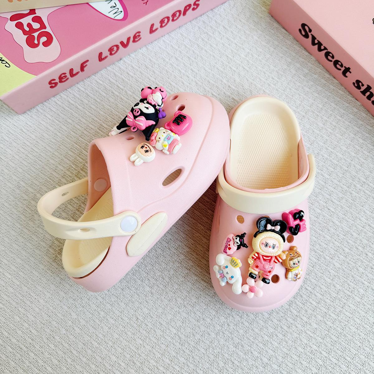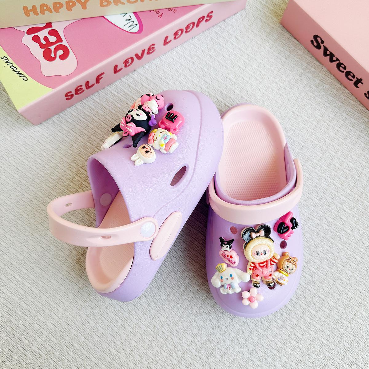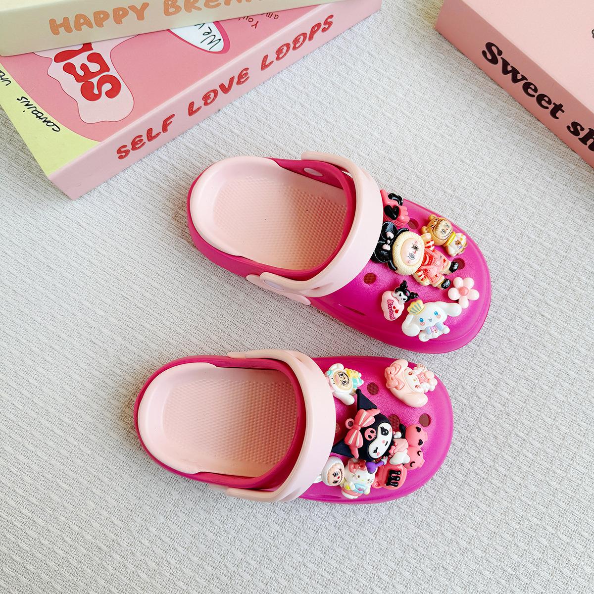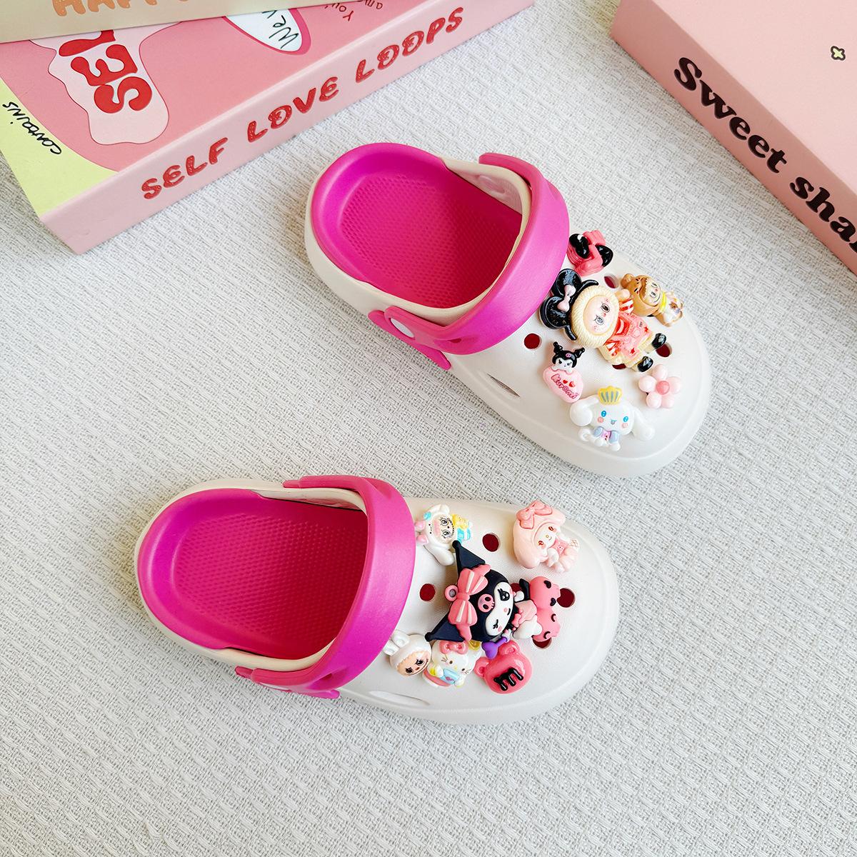 Nuevas Pantuflas para Niñas Dibujos Animados Kulomirabu Doble Color Combinación con Todo Zapatos con Agujeros Suela Suave Antideslizante Sandalias de Dedo