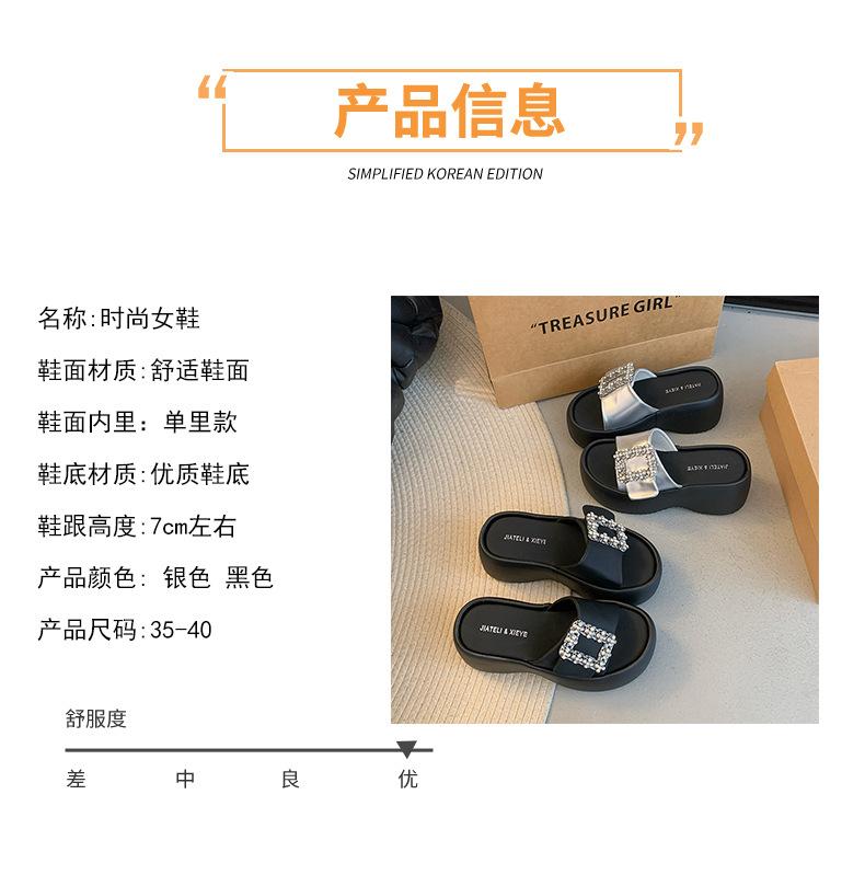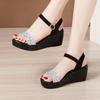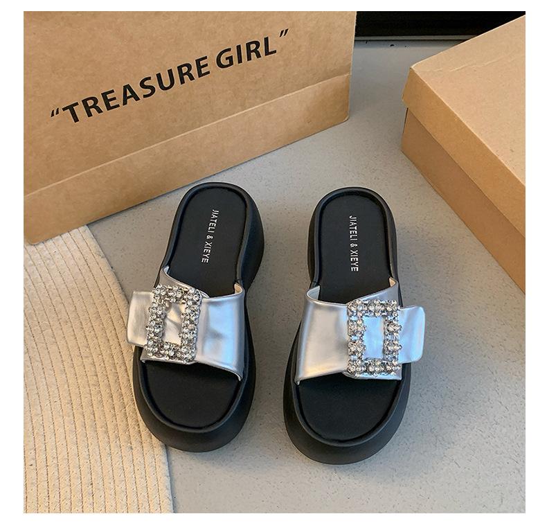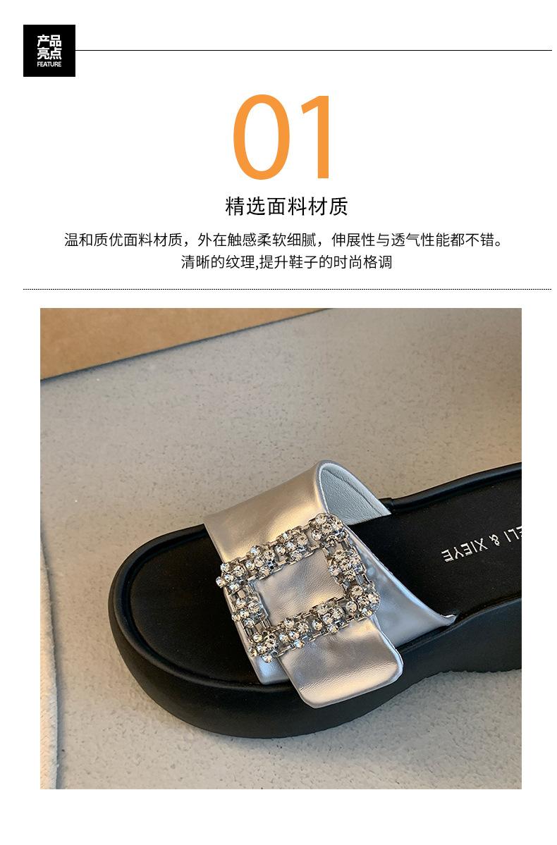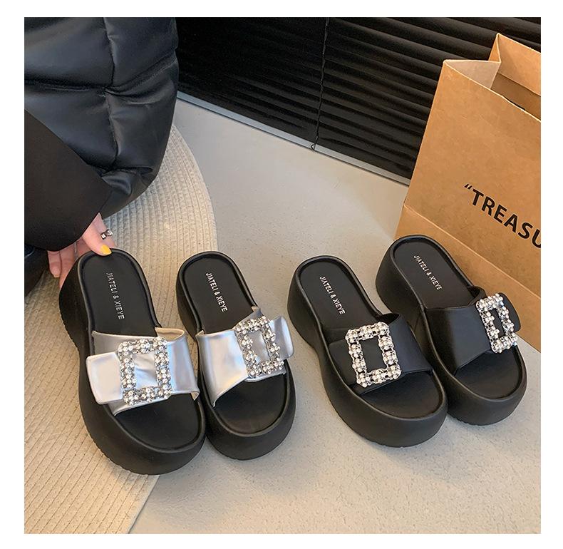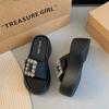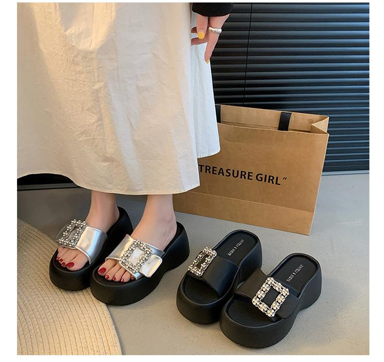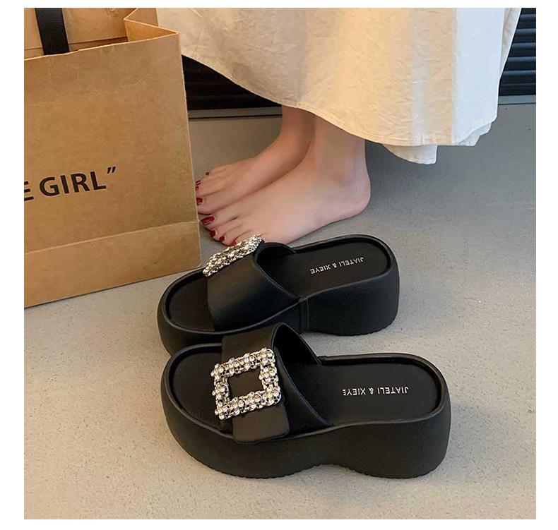 Sandalias de Plataforma Gruesa con Hebilla de Pedrería para Mujer, Sandalias de Cuña de Imitación de Cuero, Sandalias de Plataforma Versátiles, Zapatillas de Plataforma Impermeables para Mujer