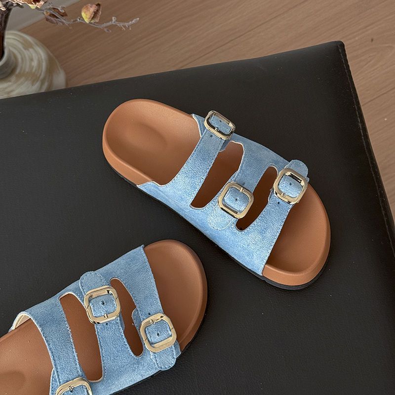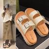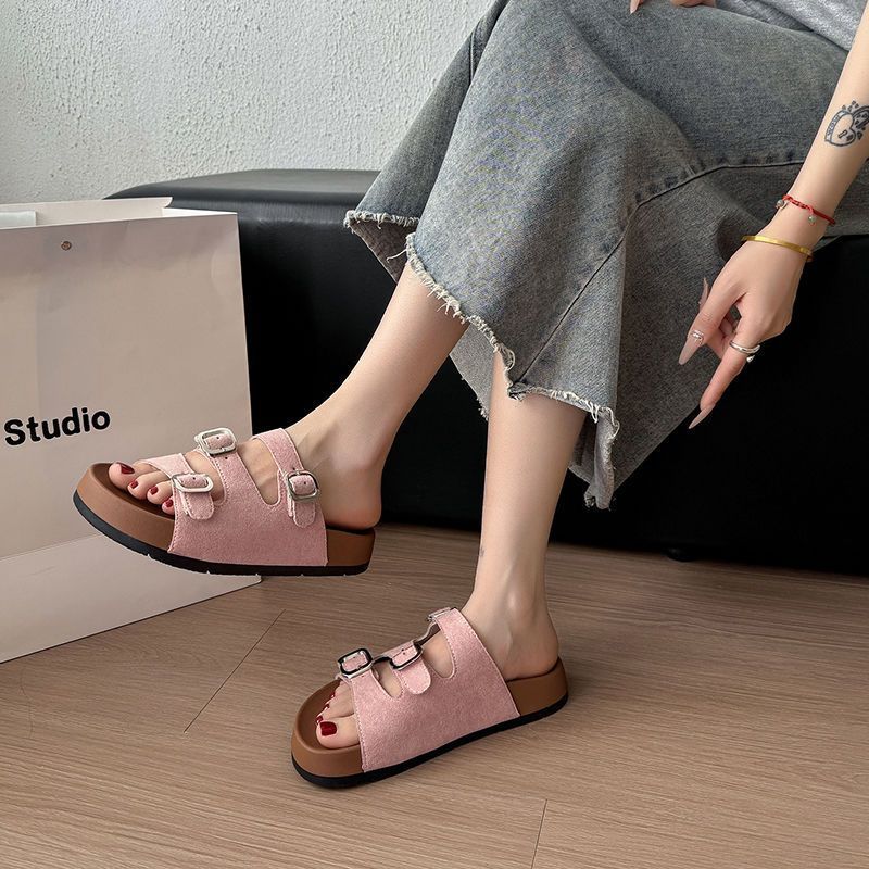 Sandalias Retro de Moda de Una Línea Antideslizantes Zapatos de Playa 2025 Pantuflas de Plataforma de Suela Gruesa para Verano para Mujer con Sensación de Alta Gama