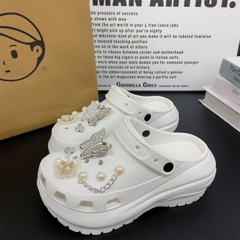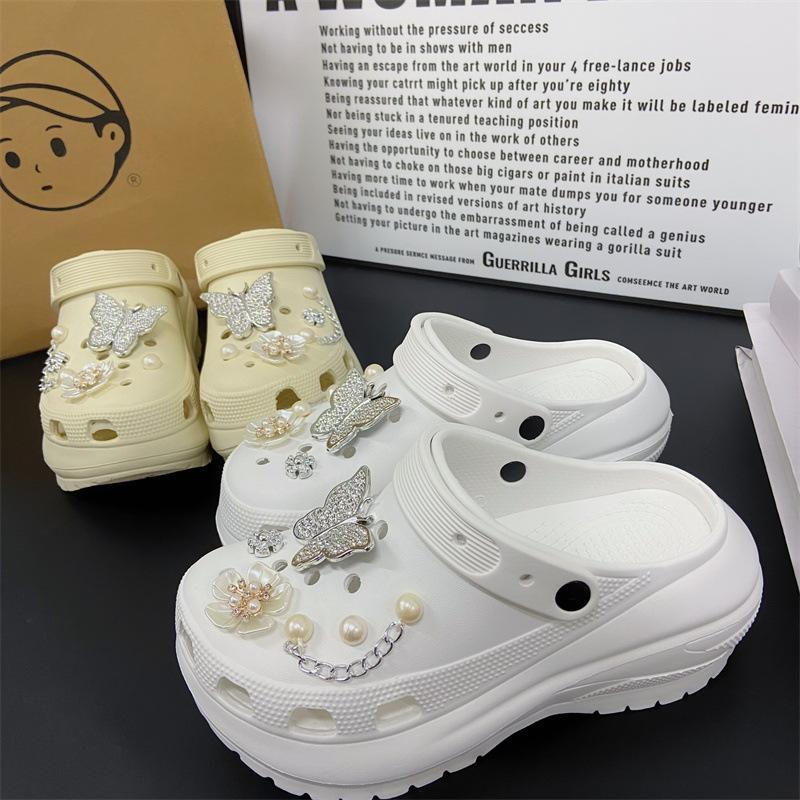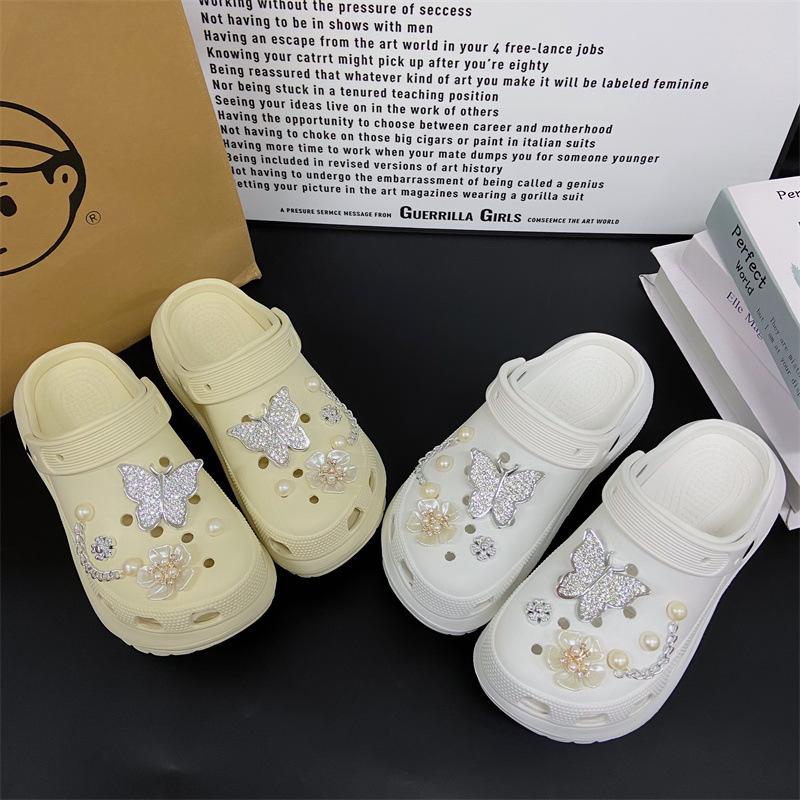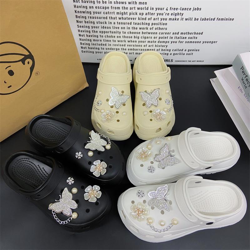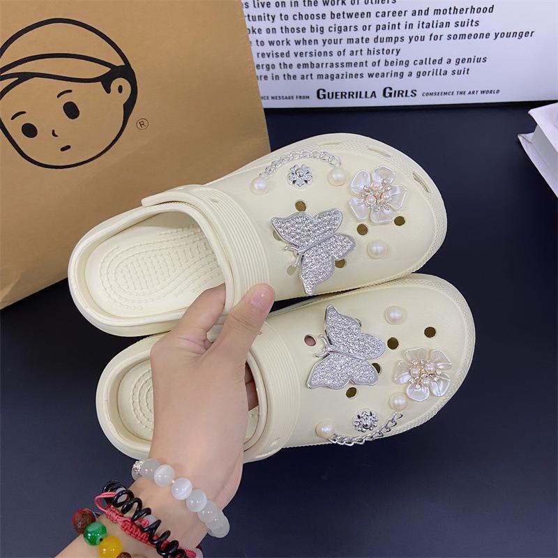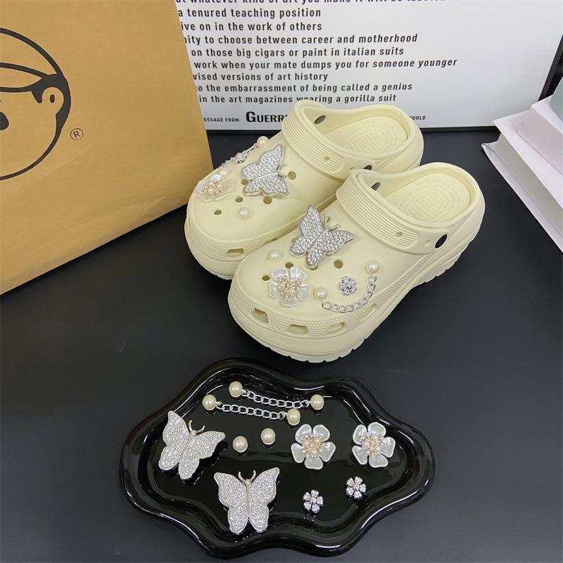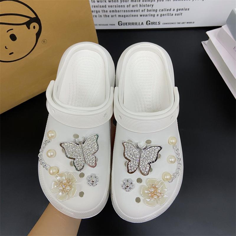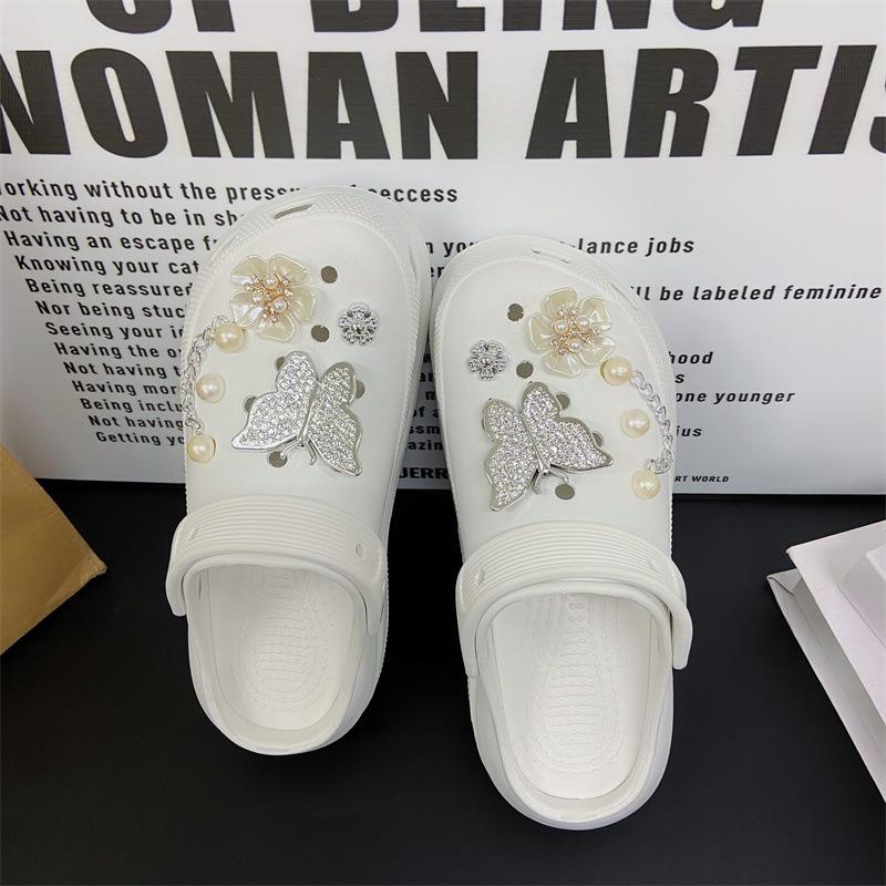 Accesorios para Zapatos de Agujeros Flor para Zapatos Hebilla para Zapatos DIY Decoración con Sentido Avanzado Cadena Removible Accesorios de Perlas de Mariposa Venta al por Mayor
