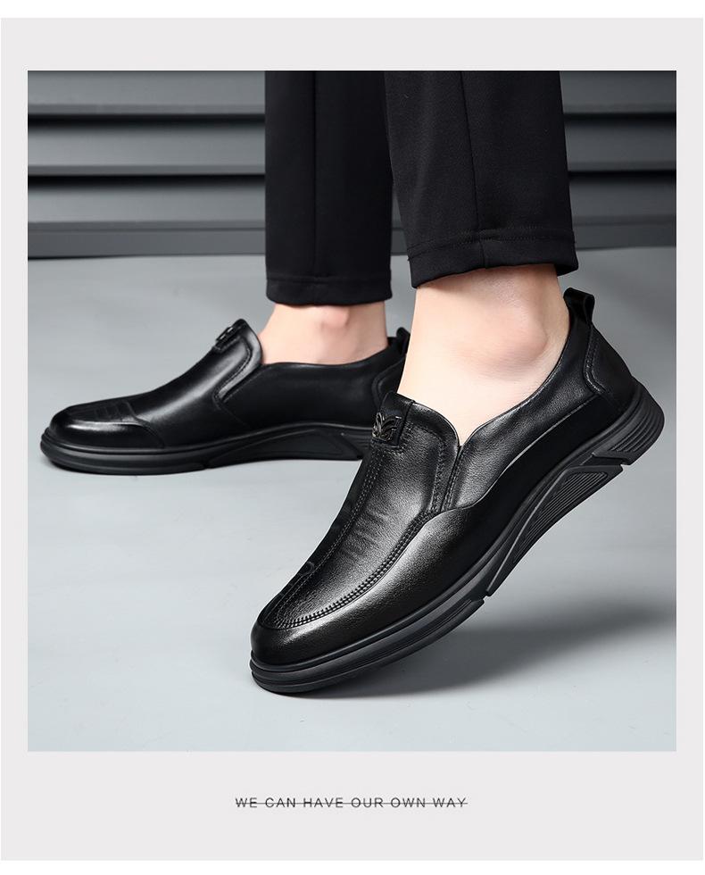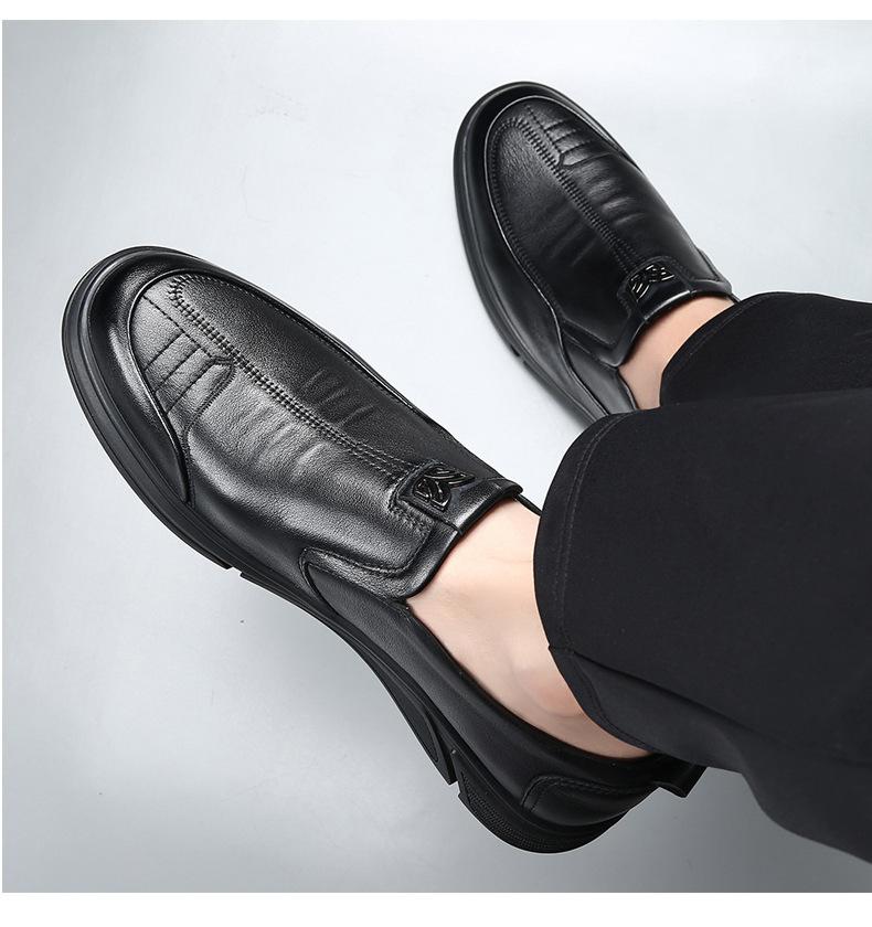 Zapatos de Cuero para Hombre Otoño e Invierno Capa Superior Piel de Vaca Zapatos de Hombre Nuevos Suela Blanda Antideslizante Zapatos Casuales de Cuero Zapatos Individuales Slip-on para Hombre