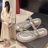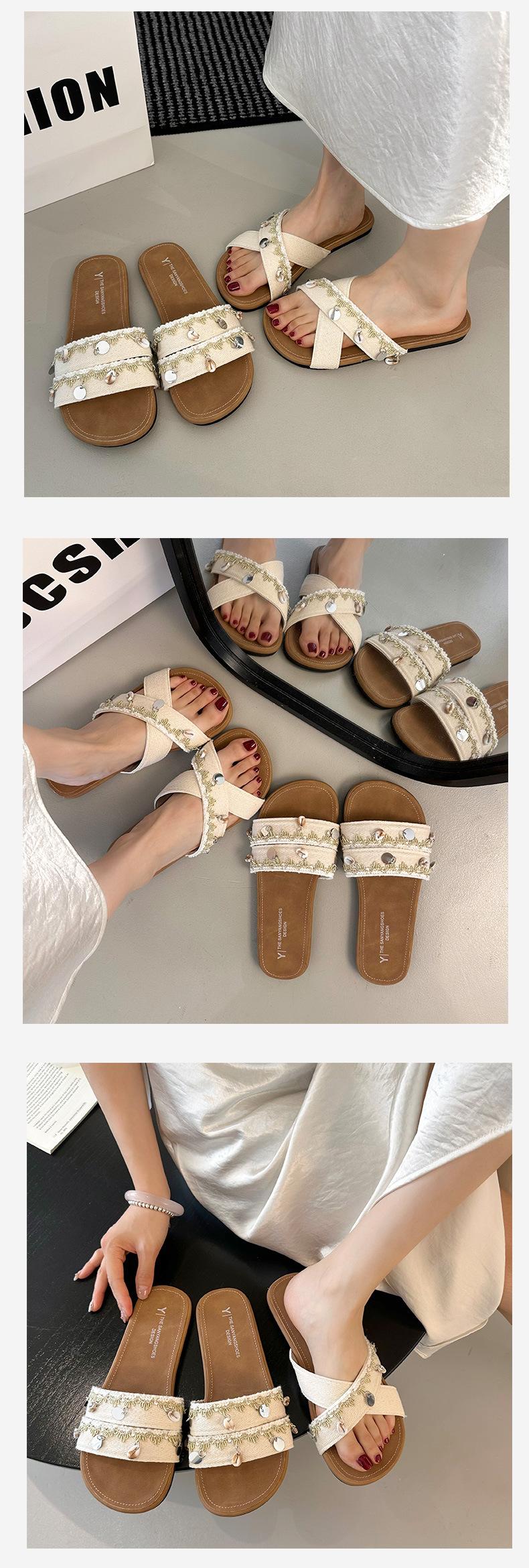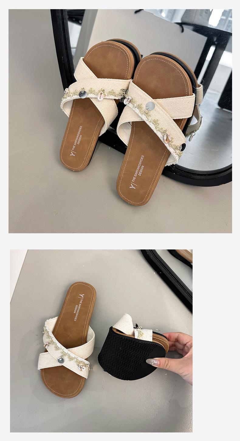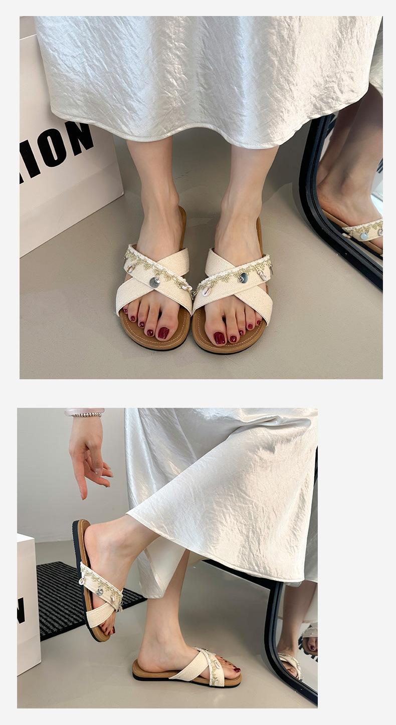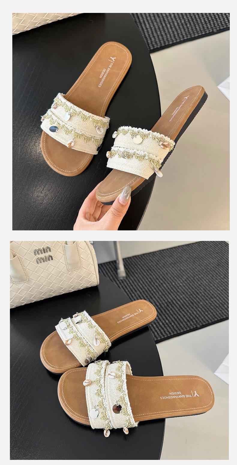 Sandalias de Perlas Estilo Hada Francés para Exterior de Mujer Primavera y Verano 2025 Nuevas Flats Perezosas Slip-On Sandalias de Playa