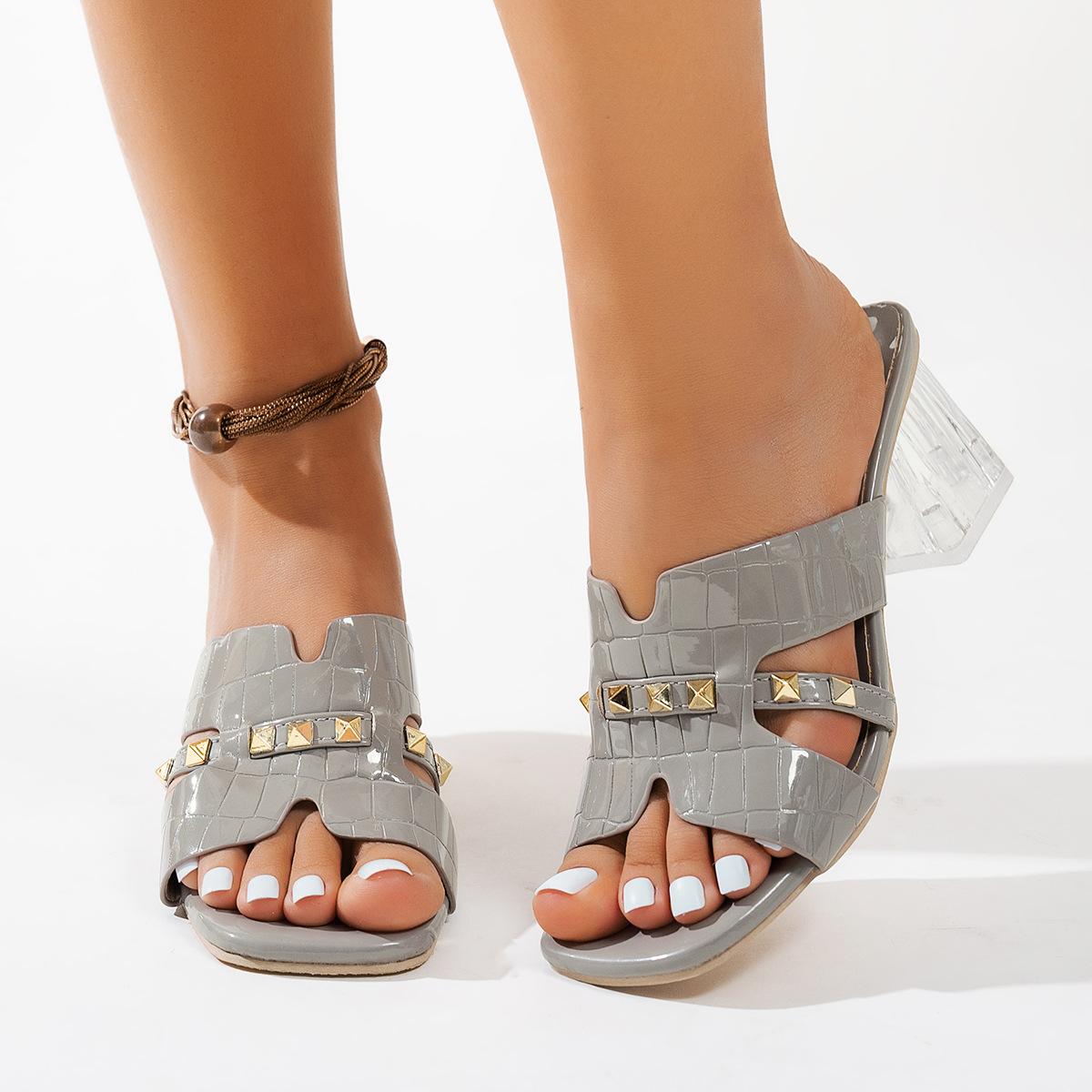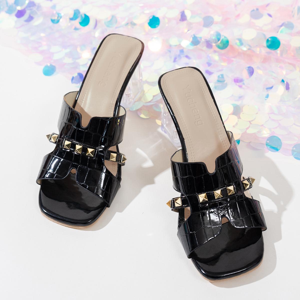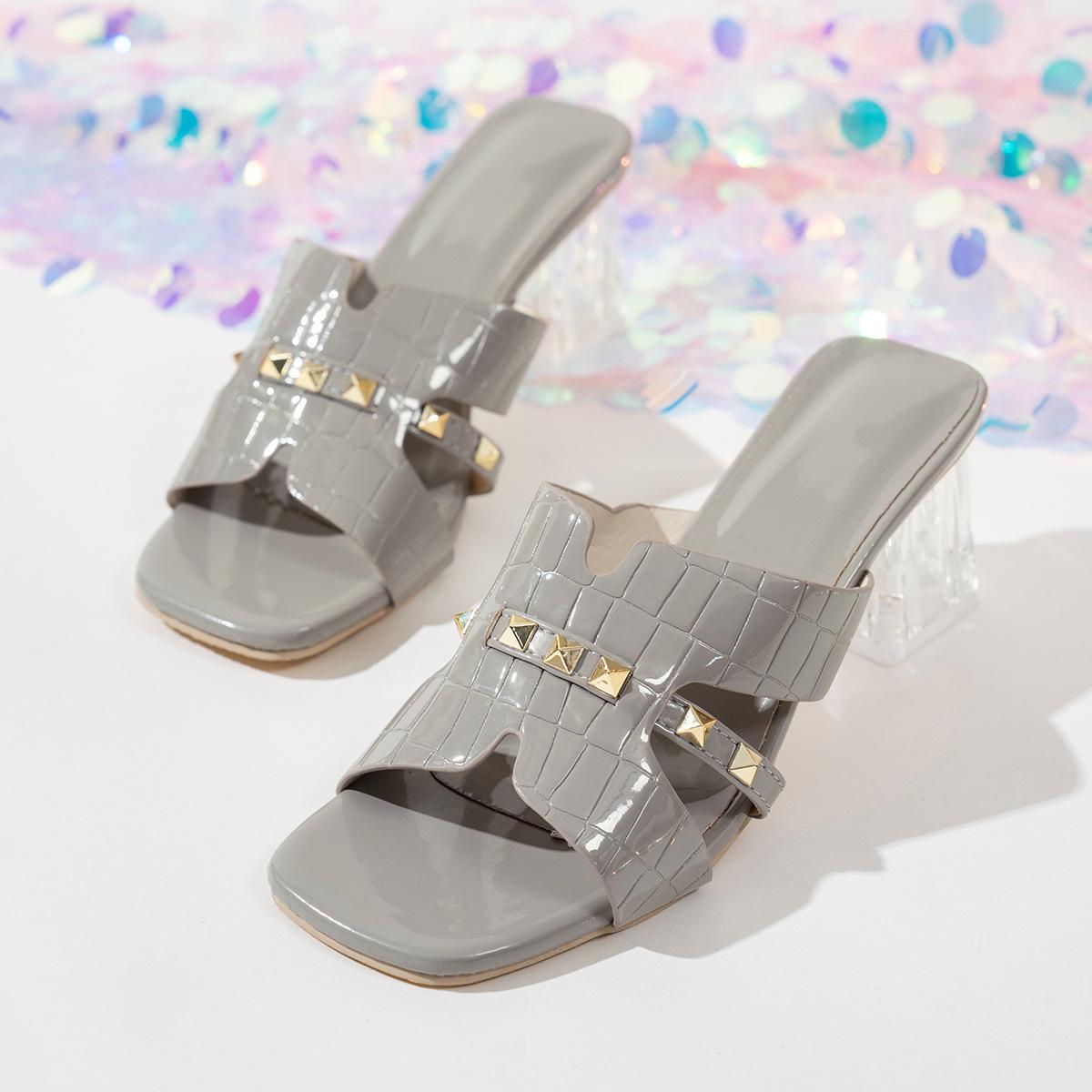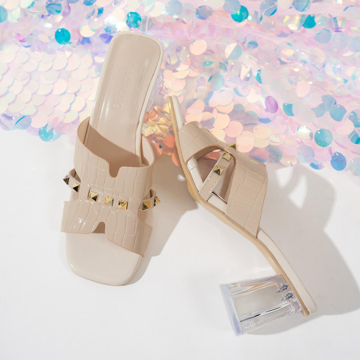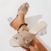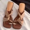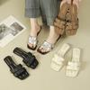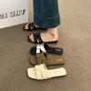 Pantuflas para Mujer 2025 Verano Nuevo Estilo Punta Cuadrada Tacón Bajo Suela Plana Exterior Sandalias de Playa para Mujer