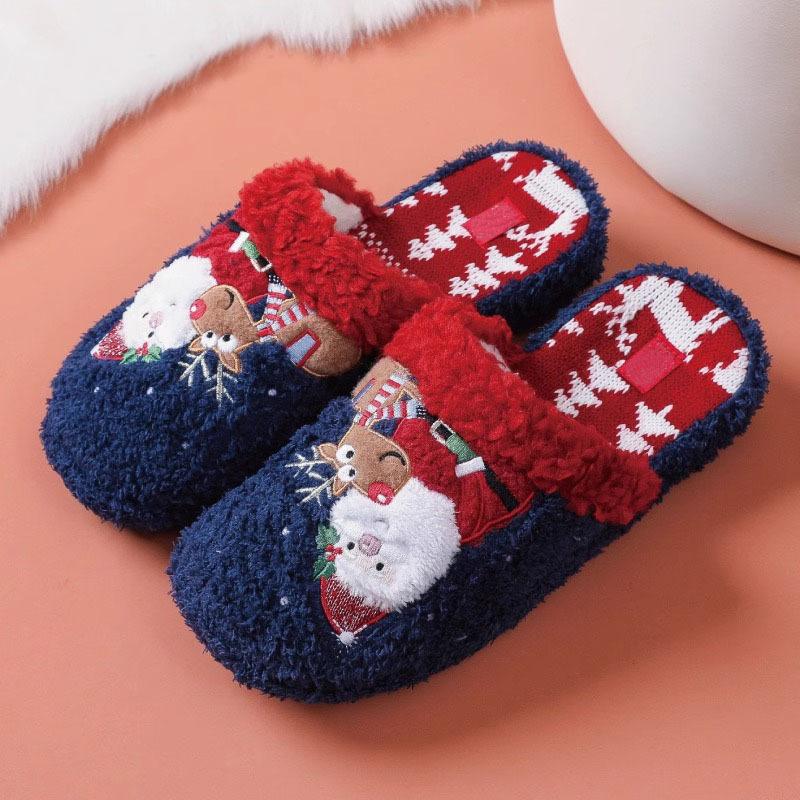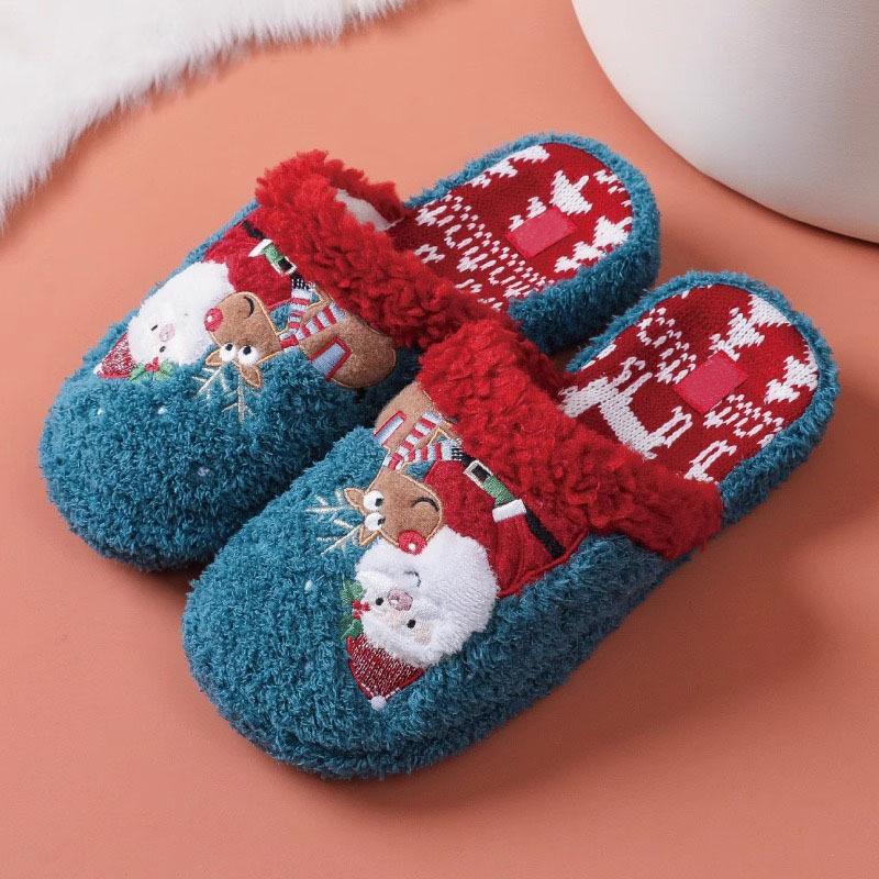 Comercio Exterior Aduana Venta al por Mayor Dibujo Animado Navidad Dibujo Animado Hogar Cálidas Pantuflas Peludas Otoño e Invierno Pantuflas de Algodón para Mujer