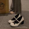 Zapatos Mary Jane Negros de Estilo Británico para Mujer 2025 Nuevo Estilo Estilo Pequeño Fragante Versátiles y Hermosos Zapatos de Tacón Alto con Lazo