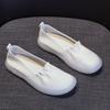 Zapatos Blancos para Mujer Primavera 2025 Estilo Coreano Versátiles Casuales Zapatos Planos Tipo Mocasín Slip-On Zapatos de Mujer Estilo Verano