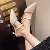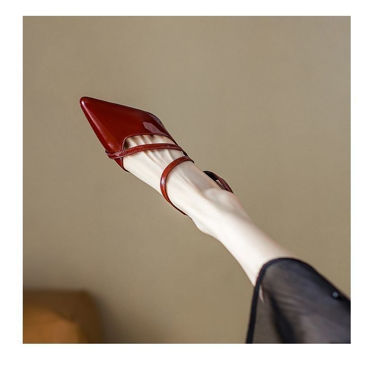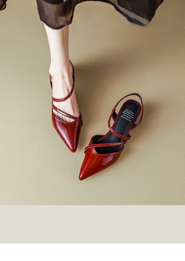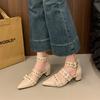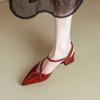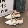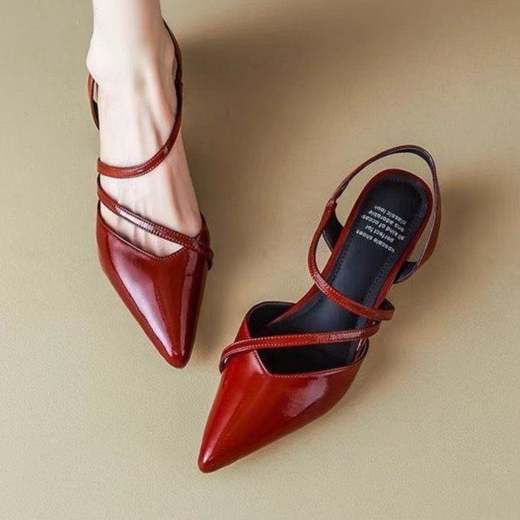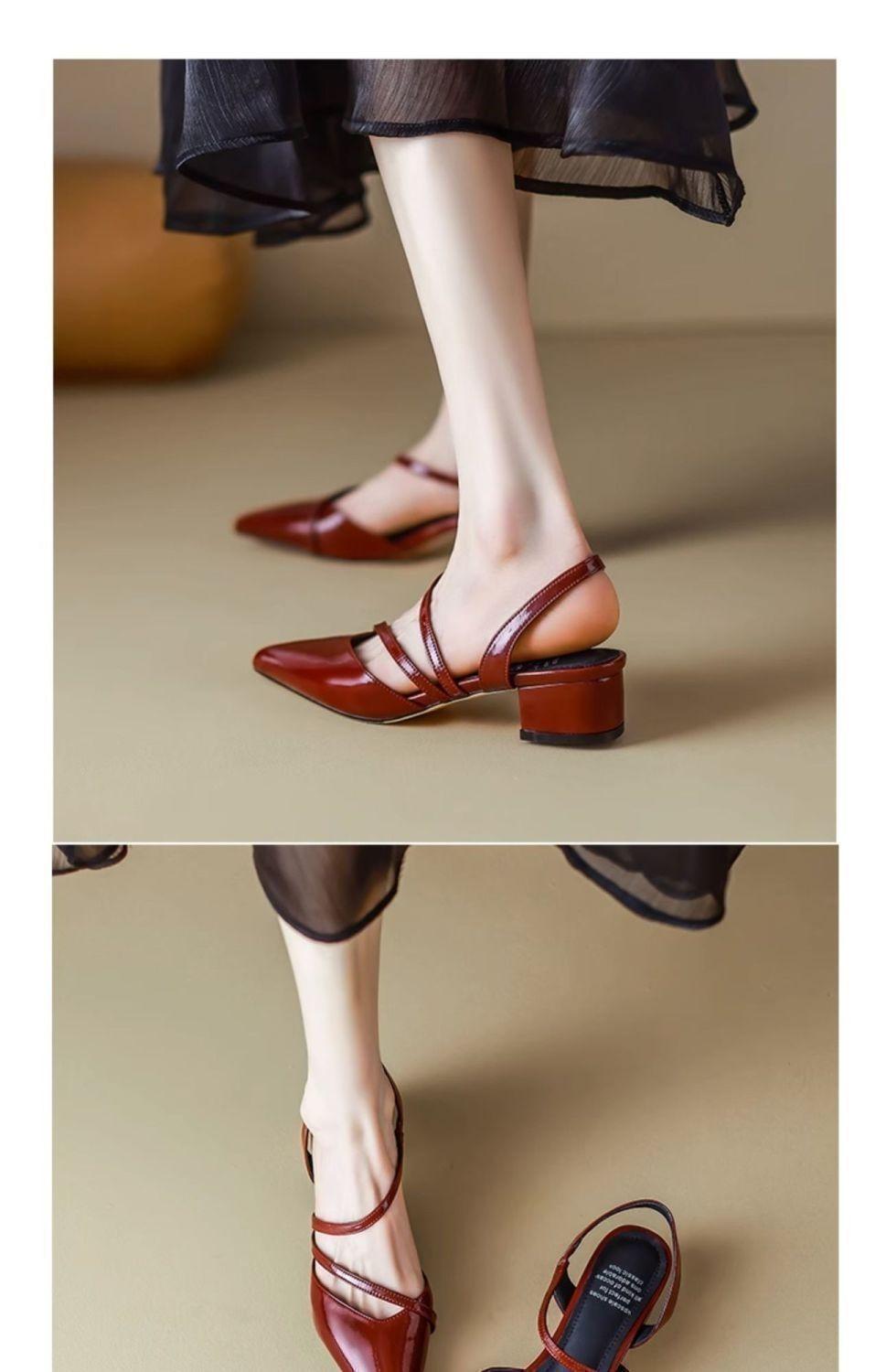 Sandalias plateadas de tacón medio estilo francés con punta hueca 2025 Nuevo retro versátil de punta cerrada tacón grueso bajo espalda abierta zapatos de verano
