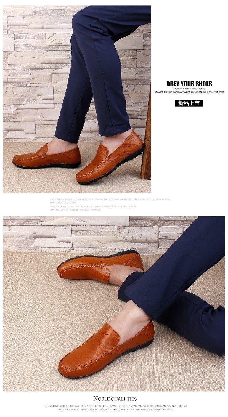 Zapatos de Cuero de Otoño para Hombre Cuero Genuino Transpirable Suela Blanda Zapatos Casuales para Hombre Antideslizantes Zapatos Lazy Slip-on de Negocios para Hombre