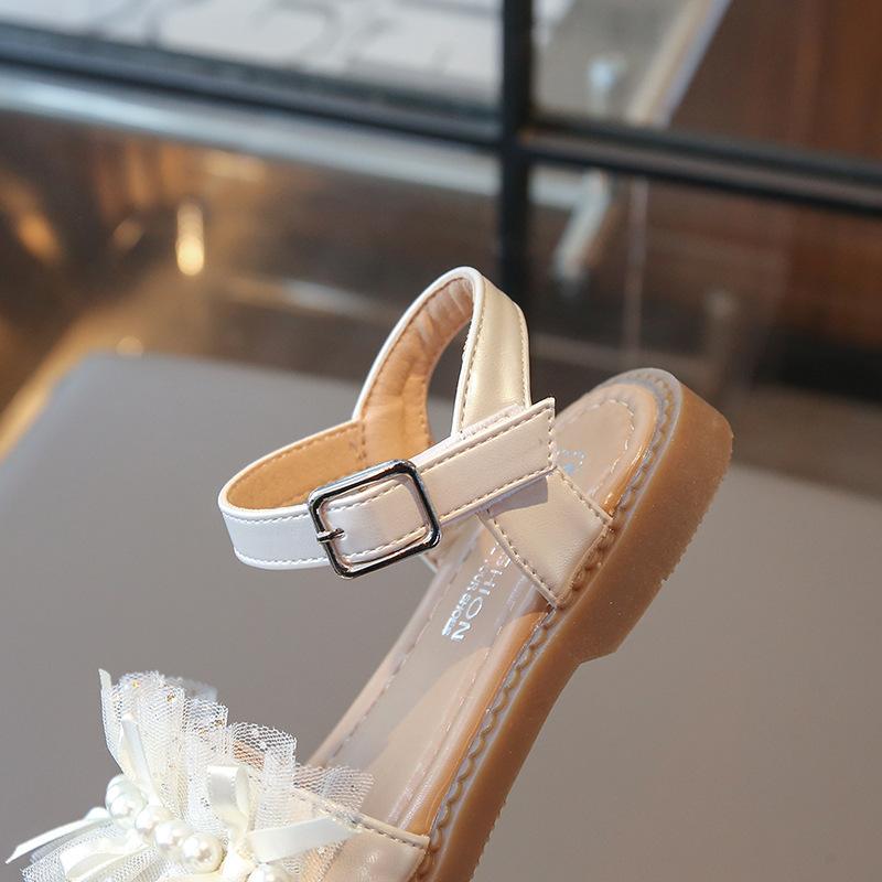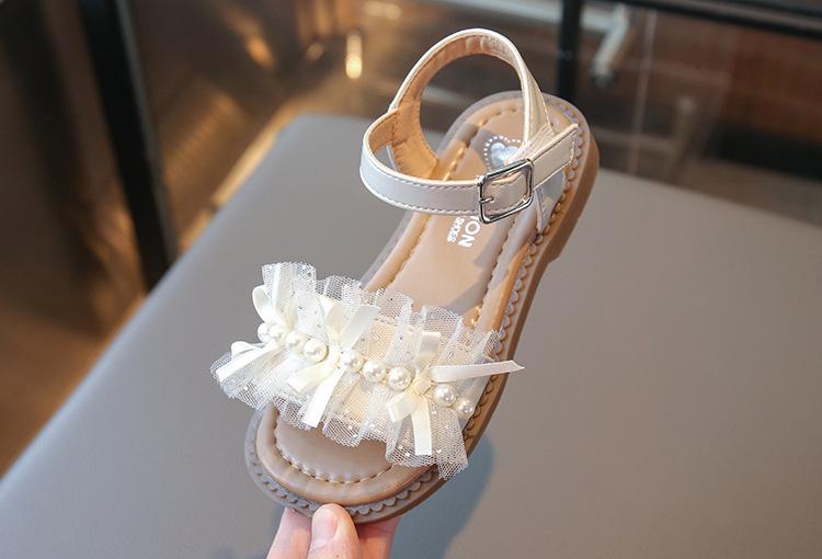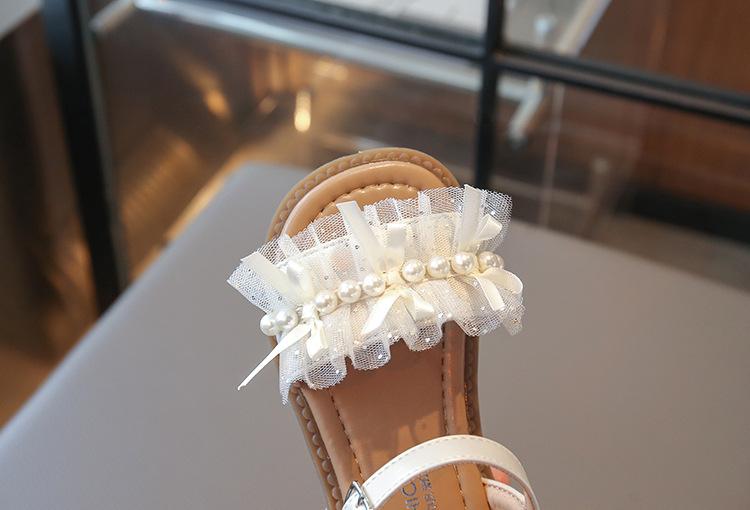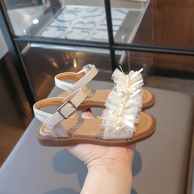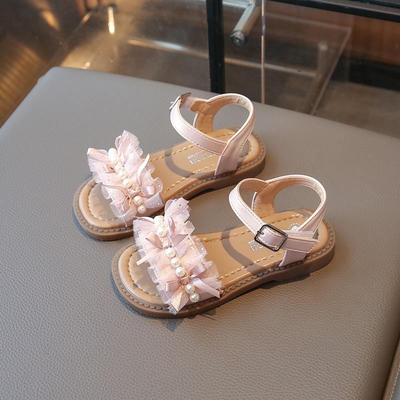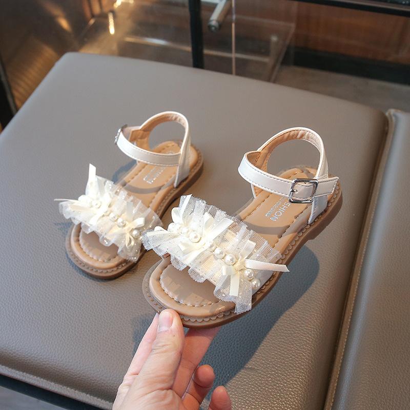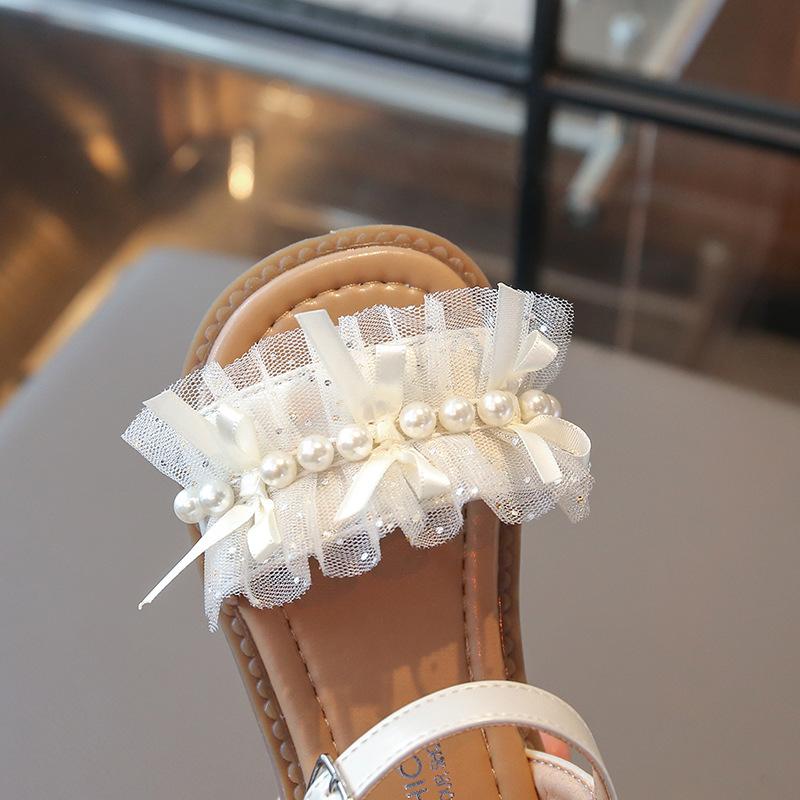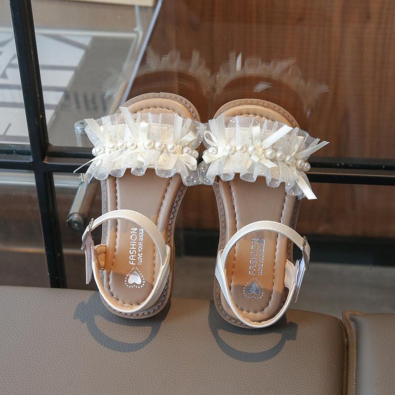 Zapatos para Niños 2025 Sandalias de Verano Perla Encaje Niñas Hermosos Zapatos de Princesa Suela Suave Punta Abierta Antideslizantes Zapatos de Playa