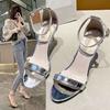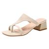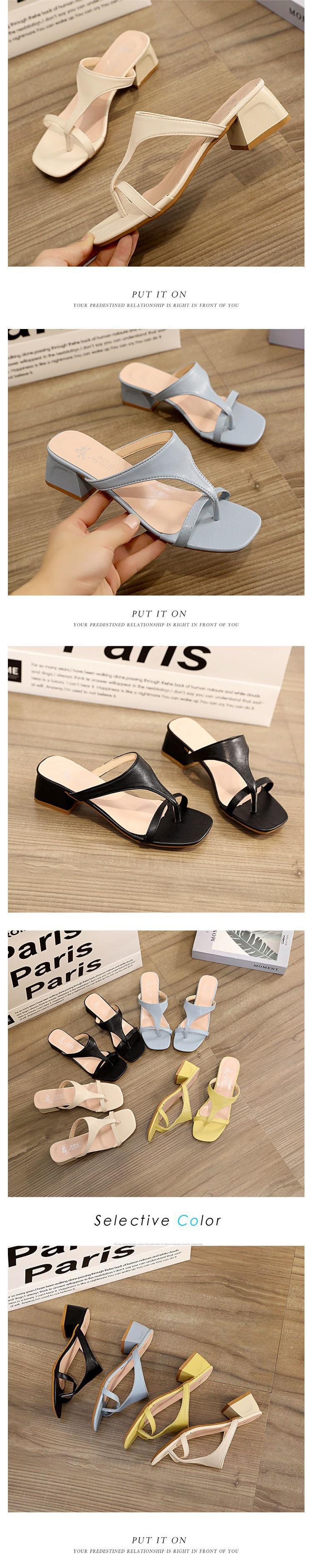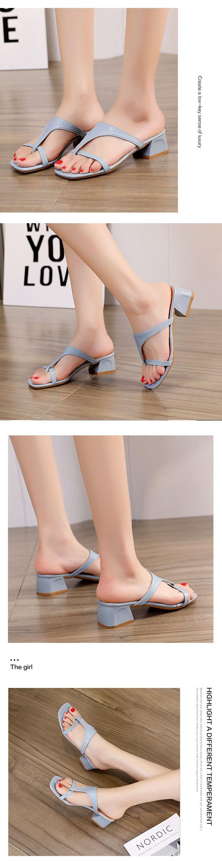 Verano 2022 Nuevo Estilo Coreano Zapatillas de Tacón Alto Tipo Mula, Tacones de Aguja Modernos y Versátiles, Chanclas de Punta Cuadrada de Hada