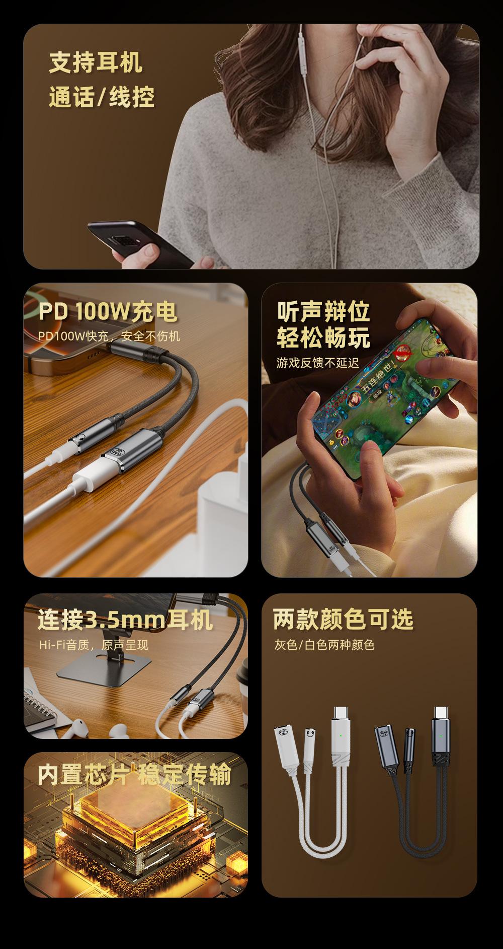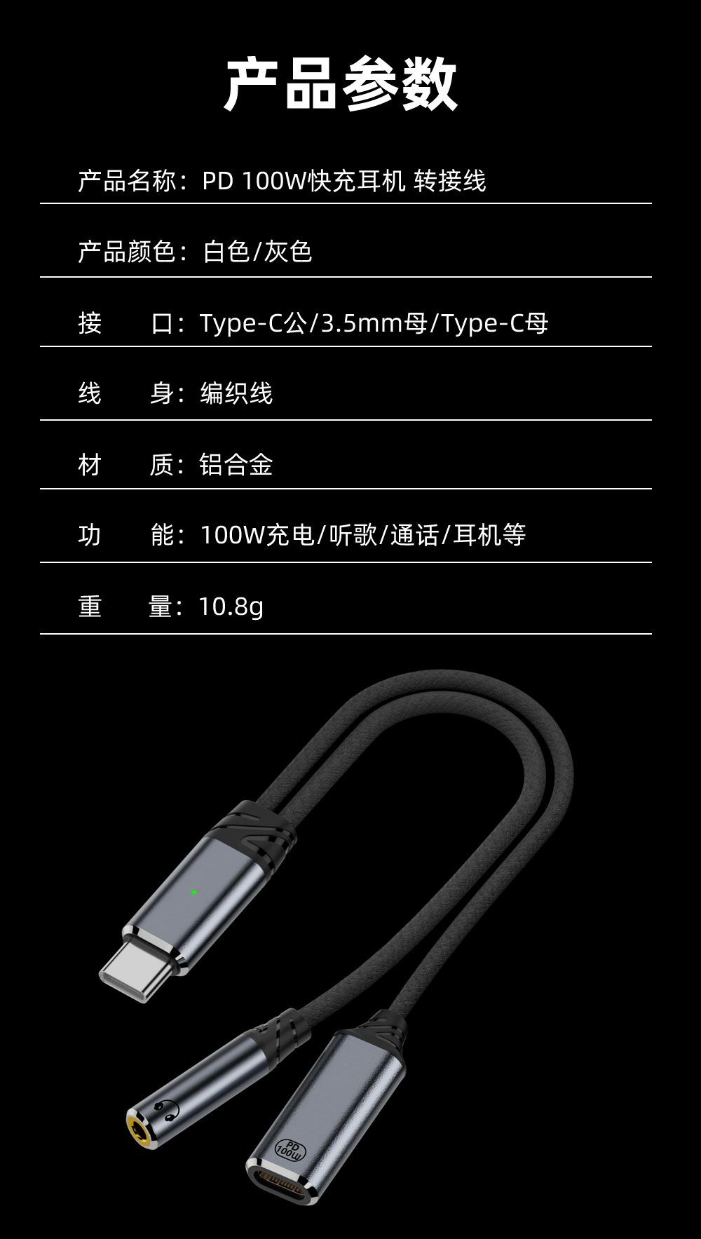 El cable corto de audio de carga es adecuado para escuchar canciones en teléfonos móviles y computadoras, adaptador de auriculares tipo C a 3.5 de carga 2 en 1
