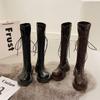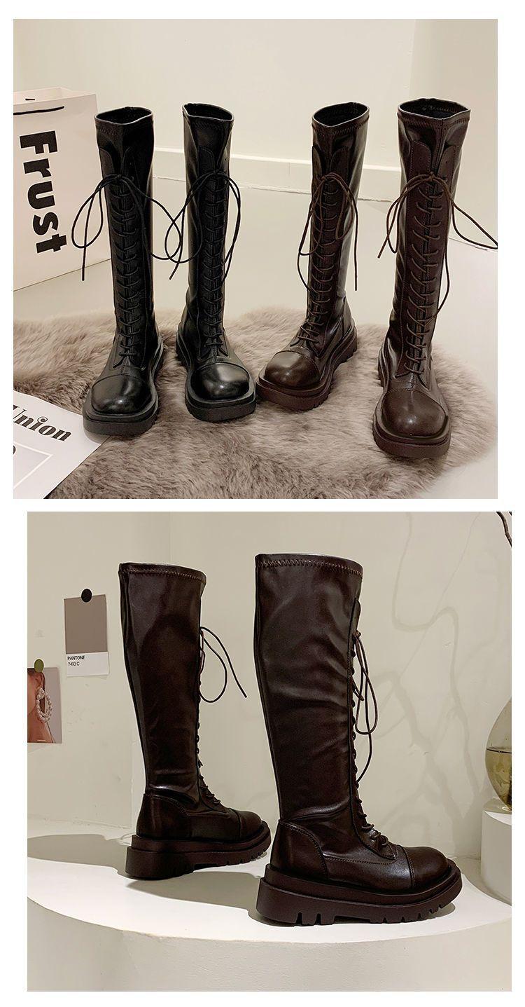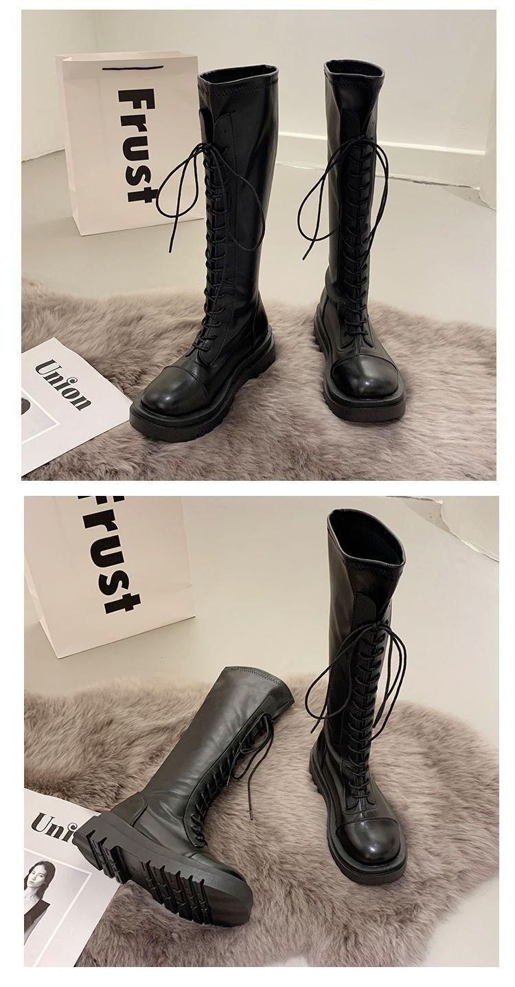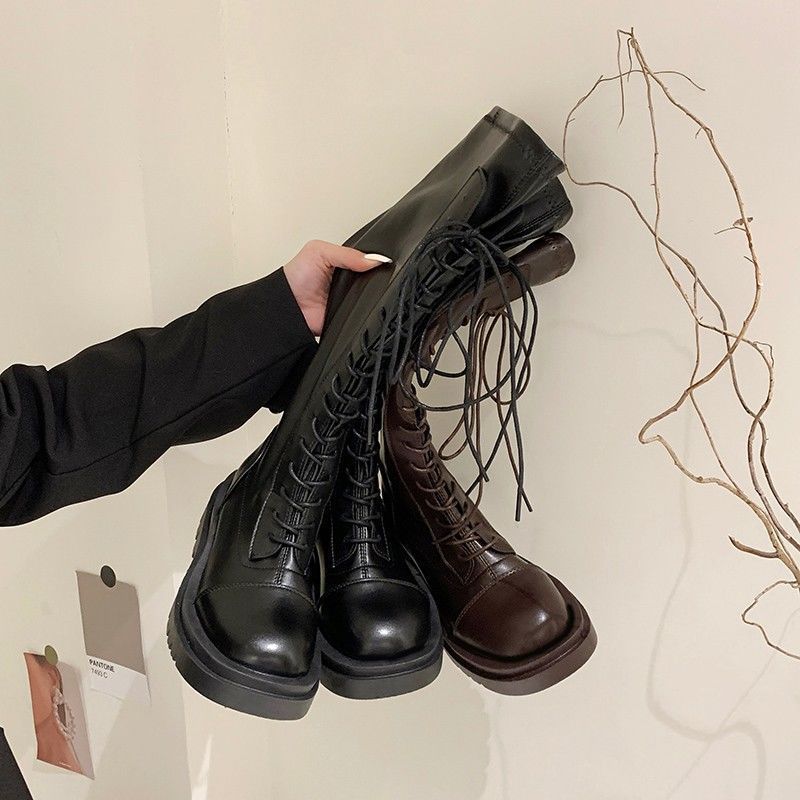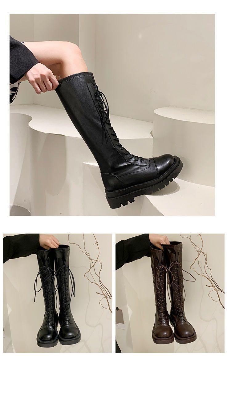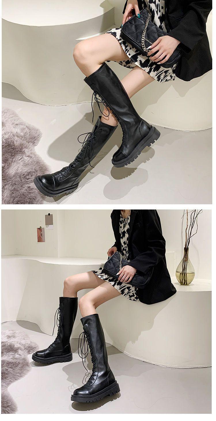Botas Negras de Media Caña Estilo Coreano Martin para Mujer 2025 Nuevo Otoño Estilo Británico Suela Gruesa Slim Botas Altas Botas Ins