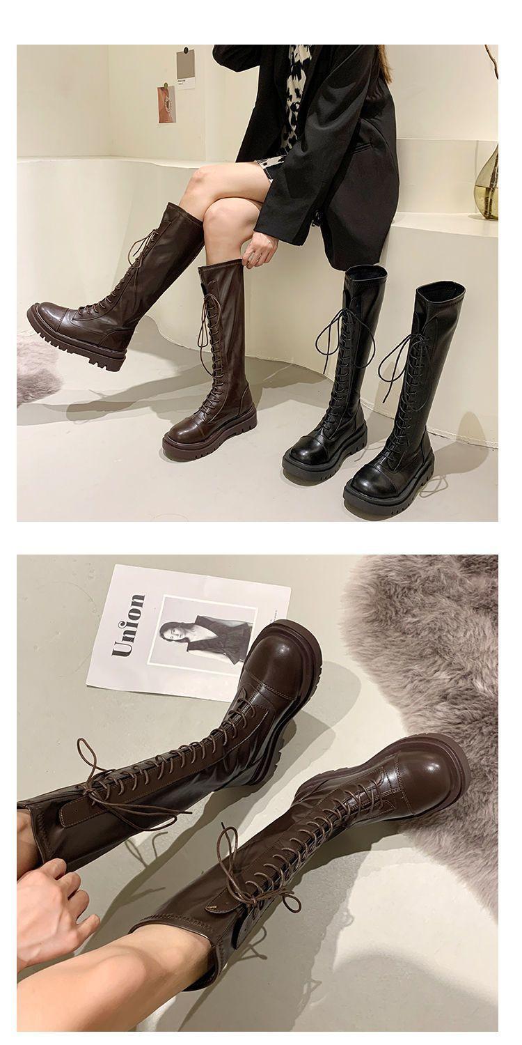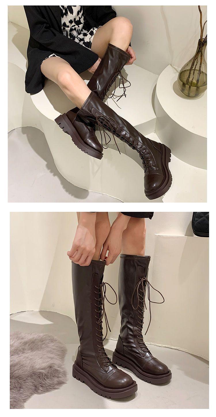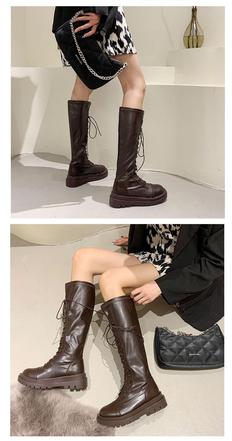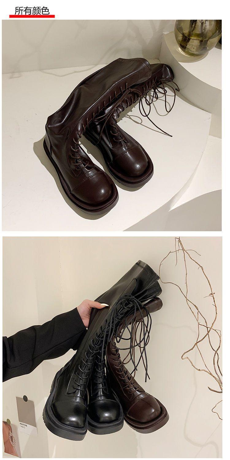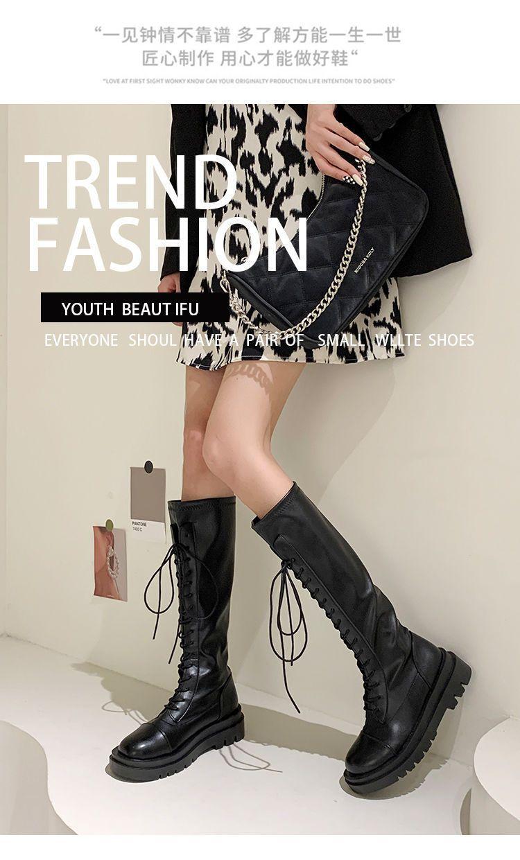 Botas Negras de Media Caña Estilo Coreano Martin para Mujer 2025 Nuevo Otoño Estilo Británico Suela Gruesa Slim Botas Altas Botas Ins