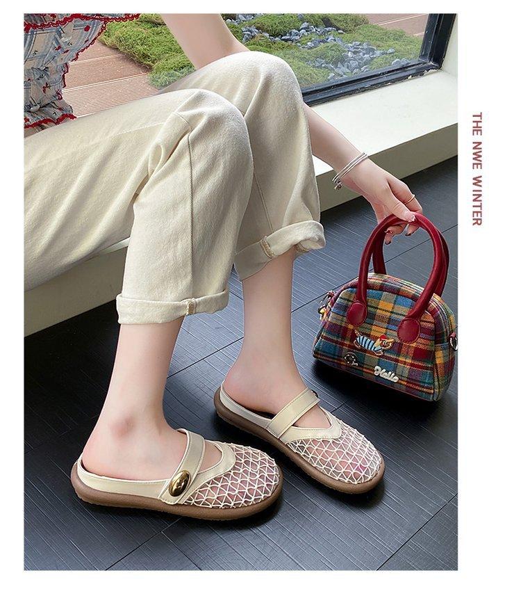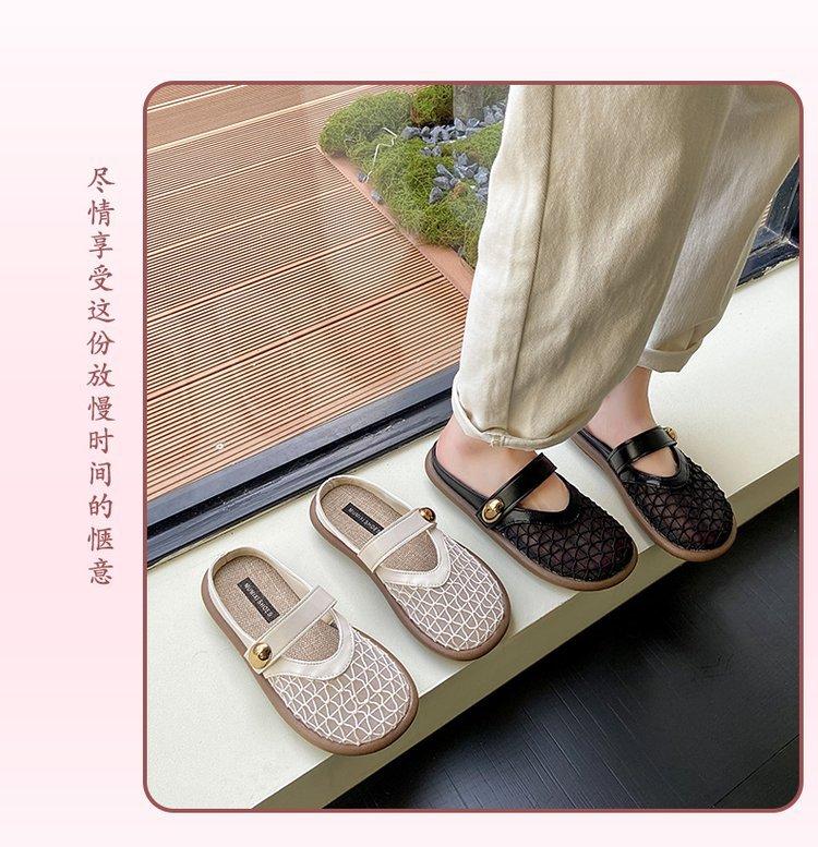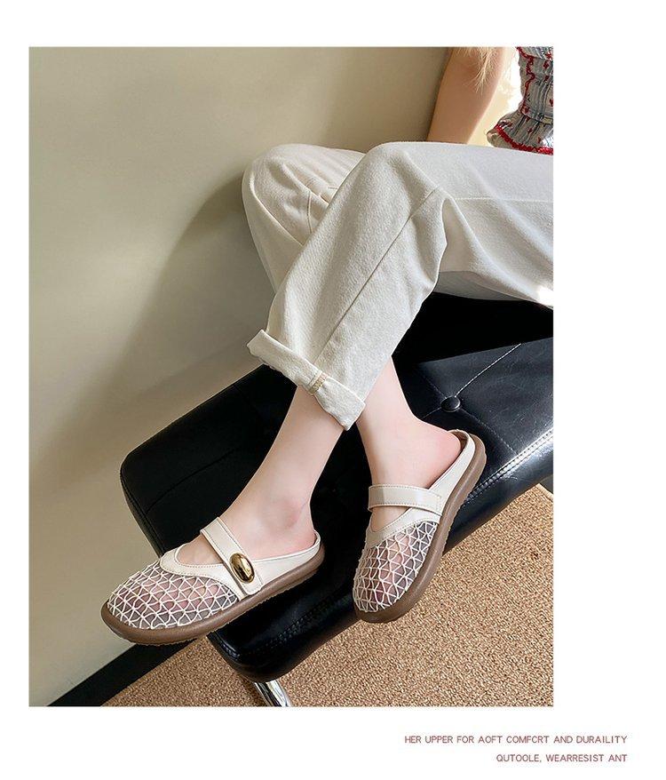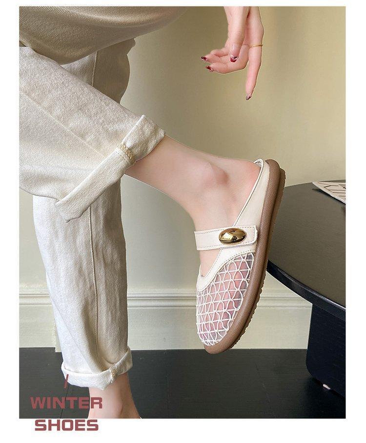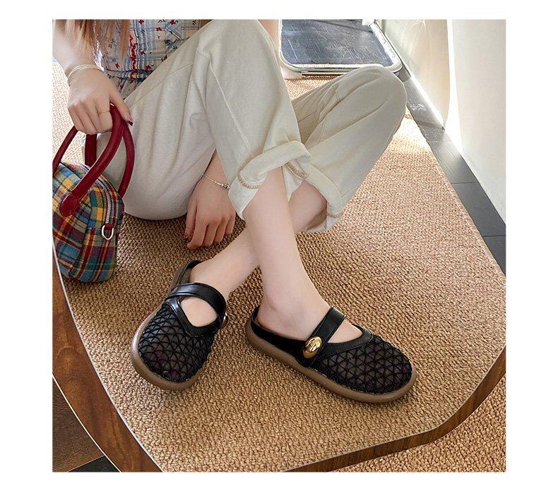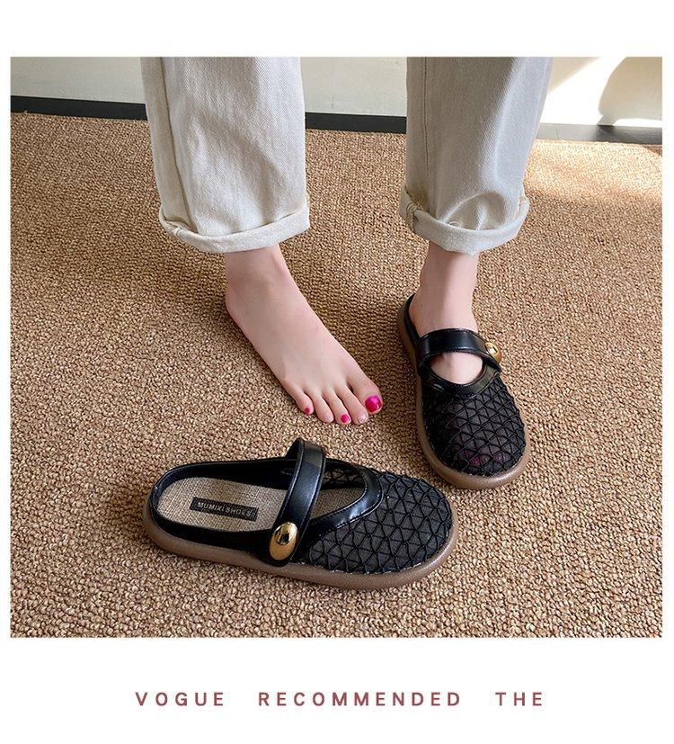 Zapatillas de Malla Punta-Punta 2025 Verano Nuevas Malla Media-Zapatillas Casual Versátiles de Suela Plana Recortadas Sandalias Transpirables