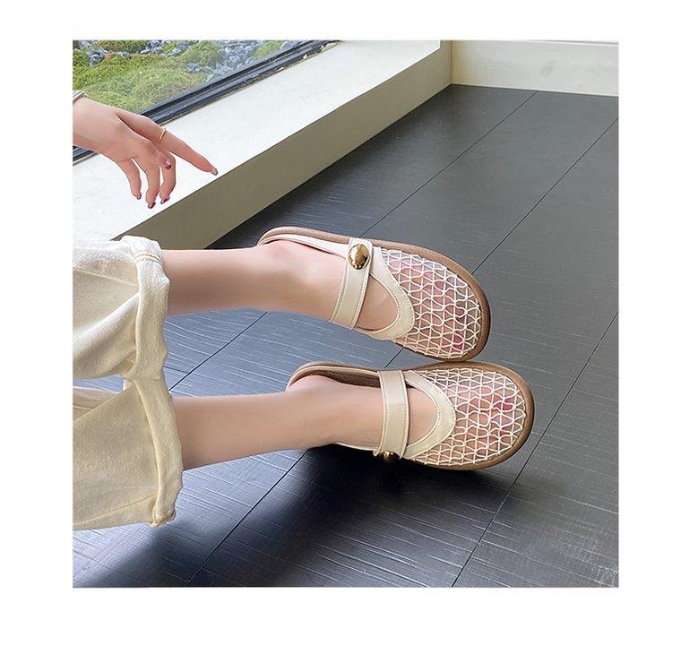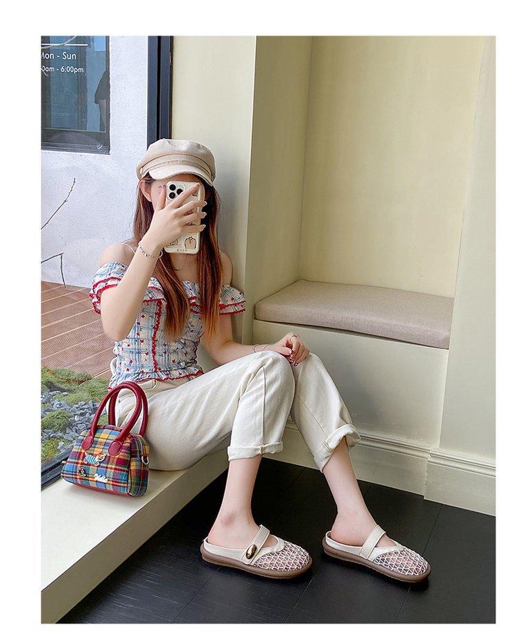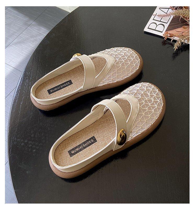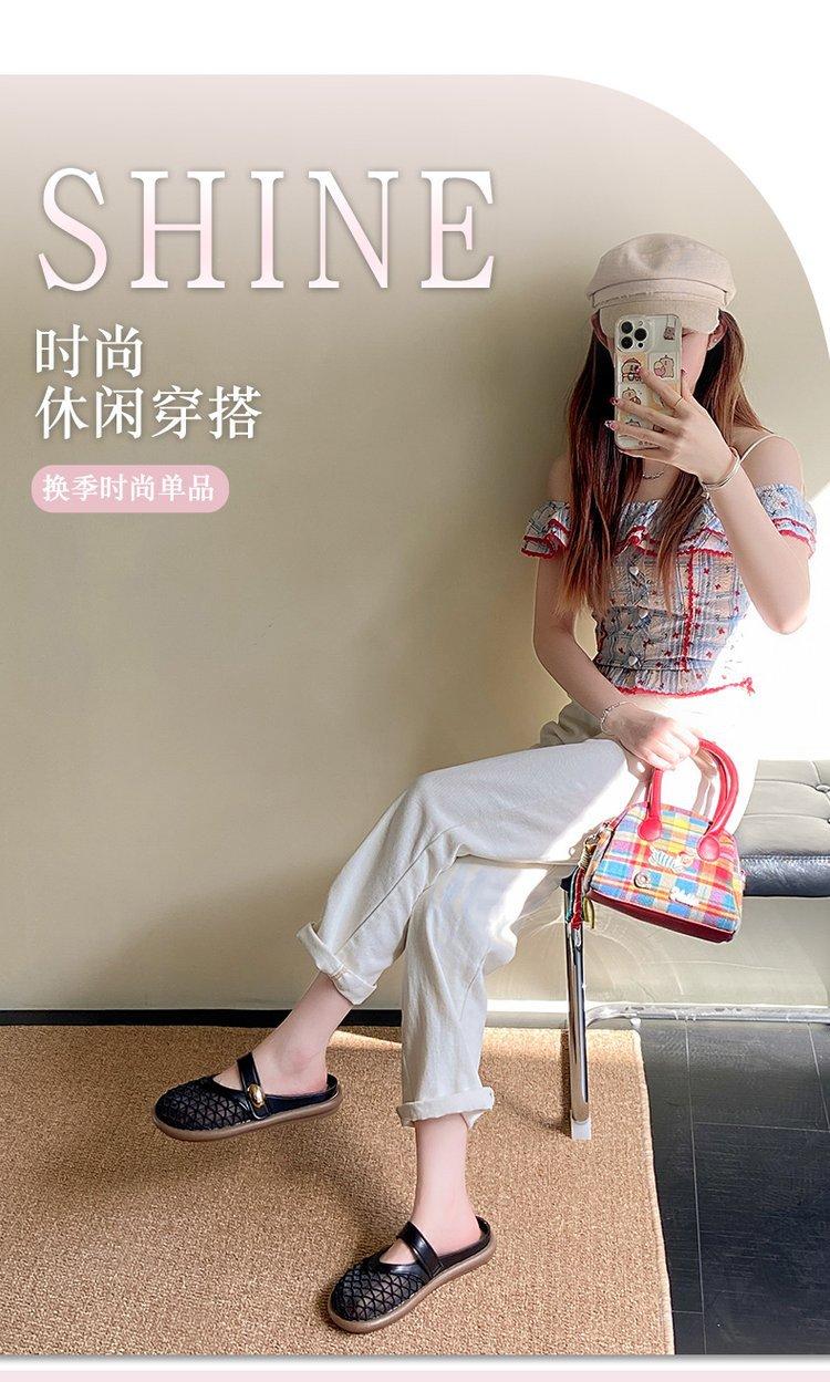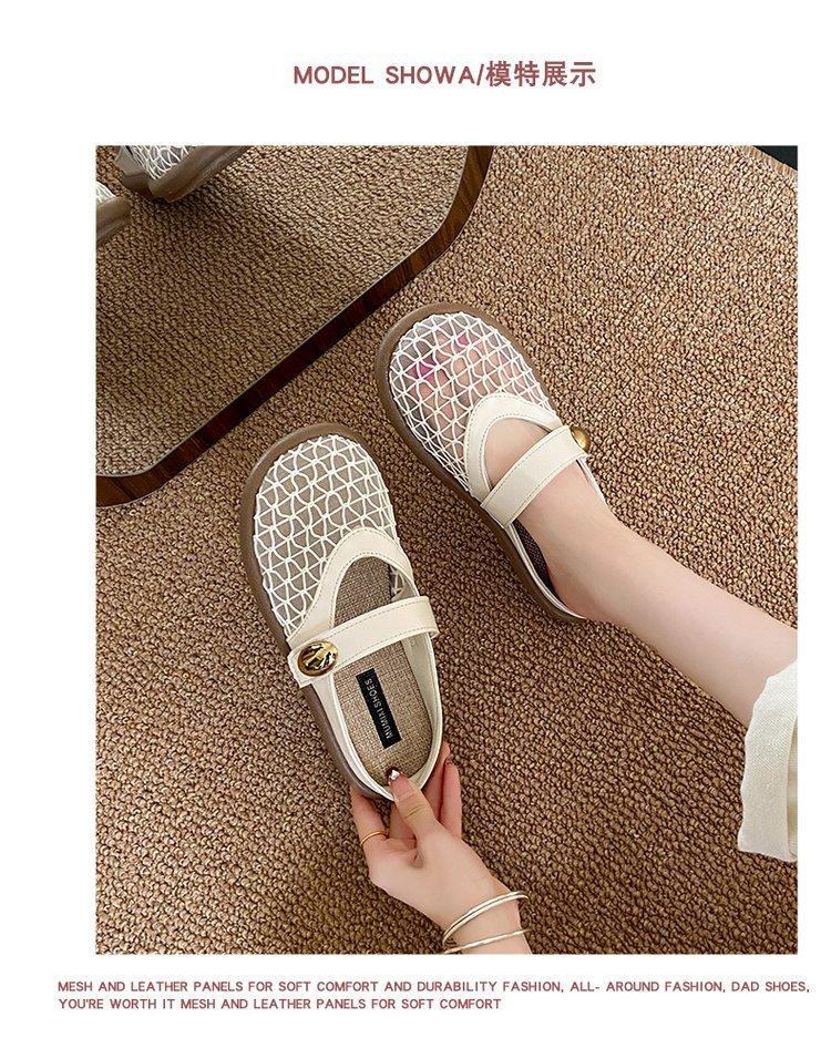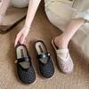 Zapatillas de Malla Punta-Punta 2025 Verano Nuevas Malla Media-Zapatillas Casual Versátiles de Suela Plana Recortadas Sandalias Transpirables