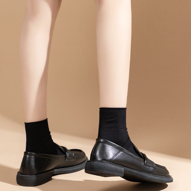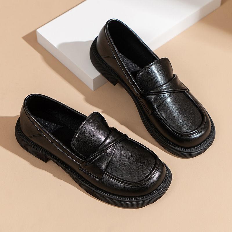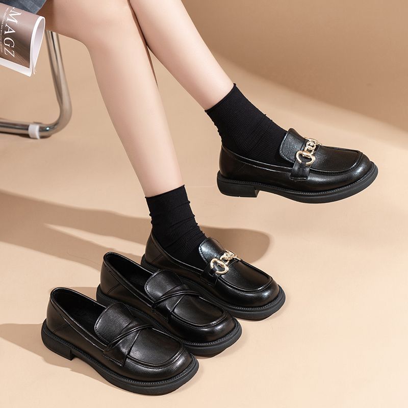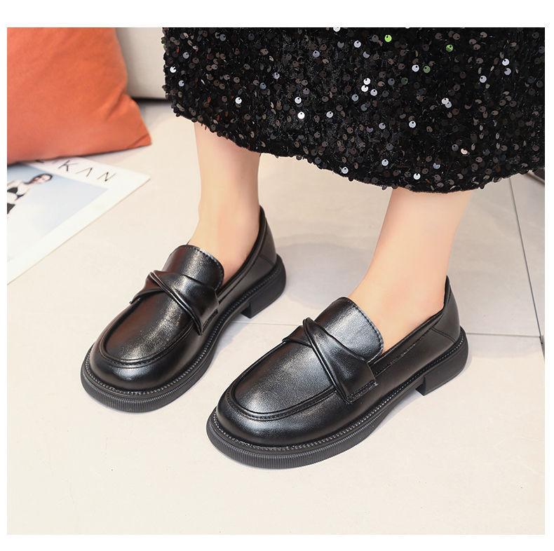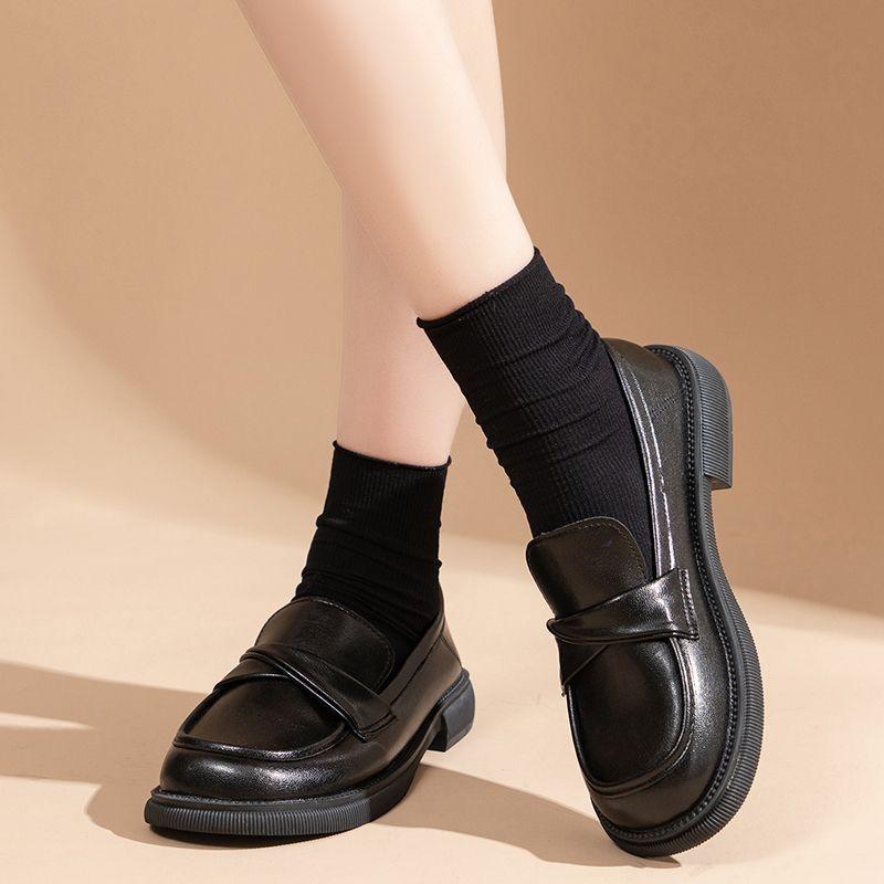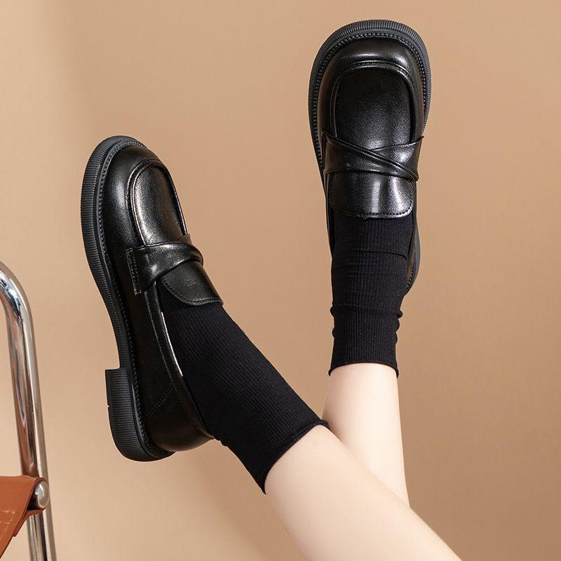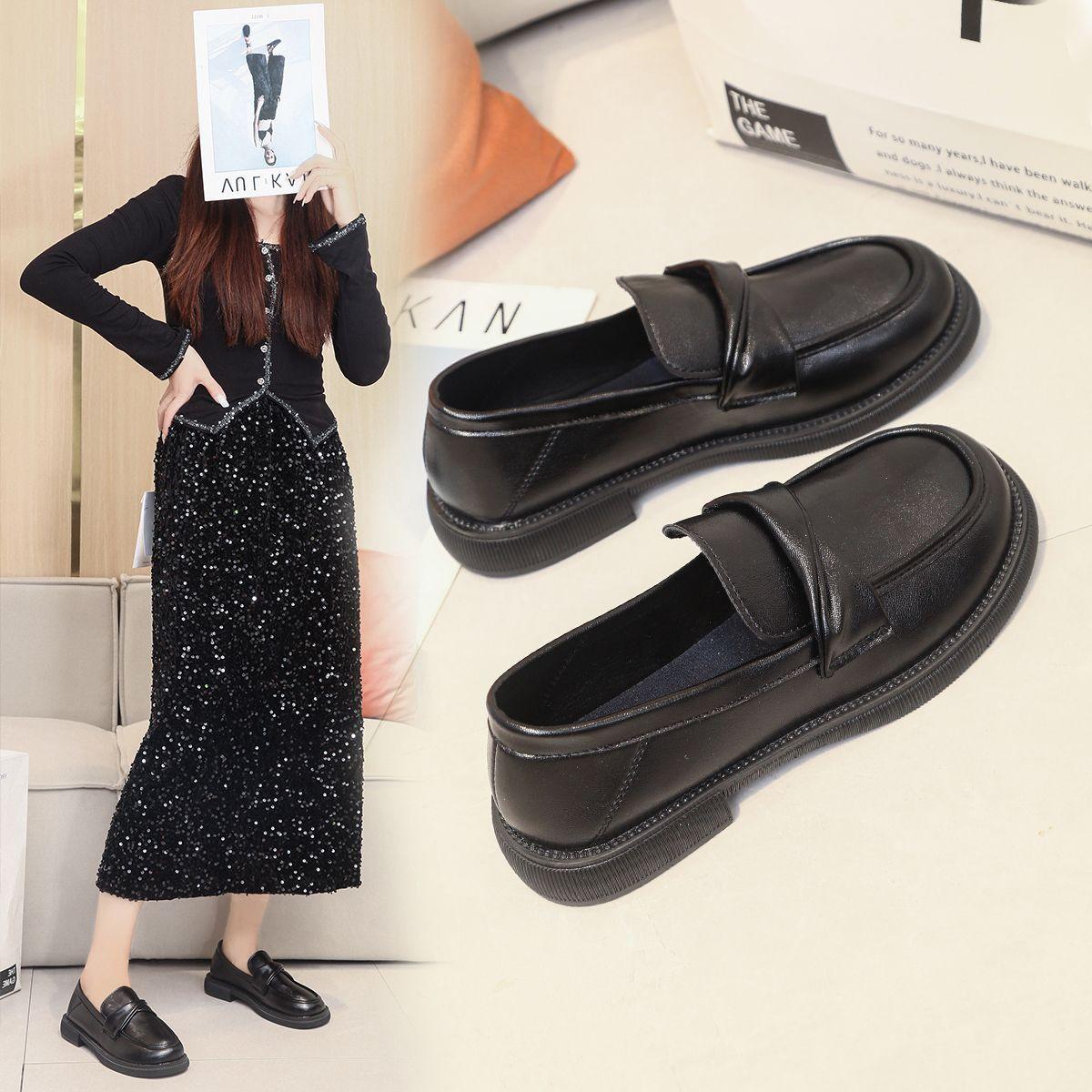 Mocasines planos antideslizantes de estilo británico, color negro, para mujer, otoño e invierno 2024