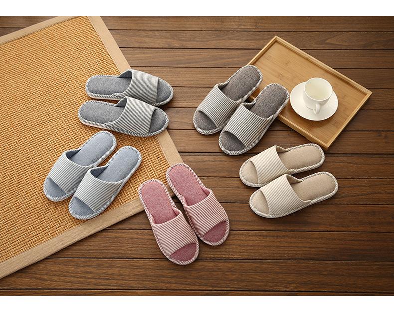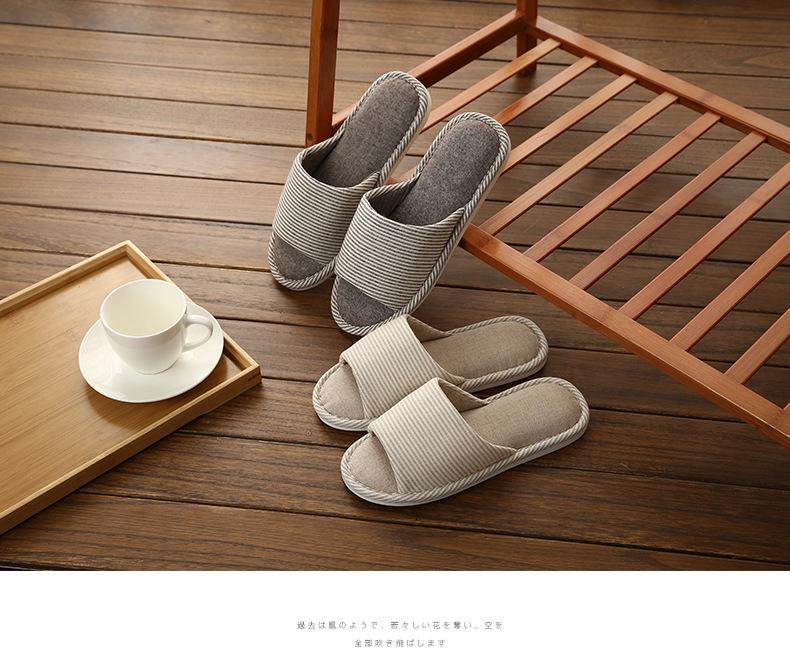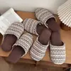 Otoño Nuevo Hecho a Mano Zapatillas de Algodón Estilo Japonés Lino Hogar Interior Piso Suela Blanda Casual Antideslizante Transpirable Zapatillas Gruesas