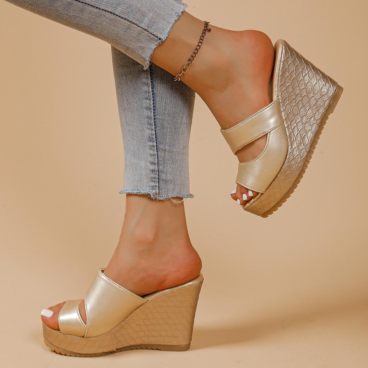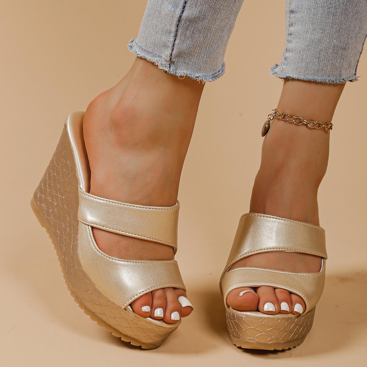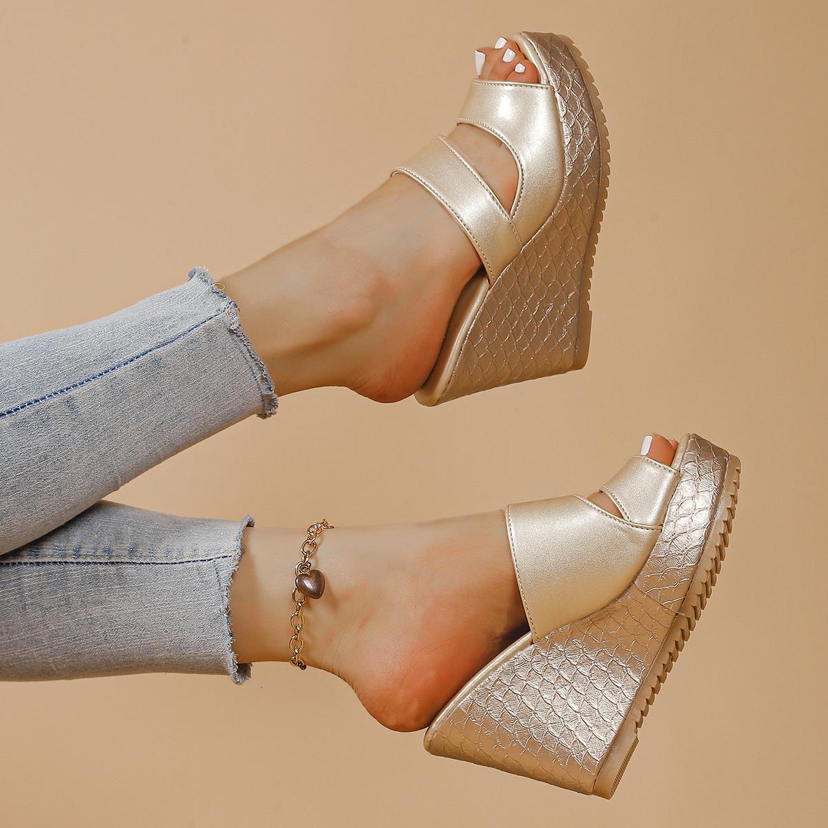 Sandalias de Cuña de Verano 2025 con Boca de Pescado y Suela Gruesa para Uso Exterior Zapatillas de Tacón Alto Sandalias Modernas y Cómodas Talla Grande