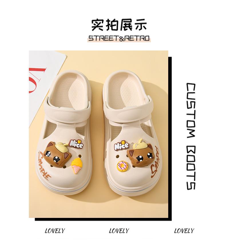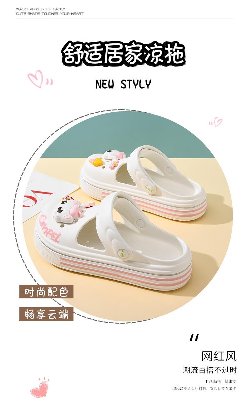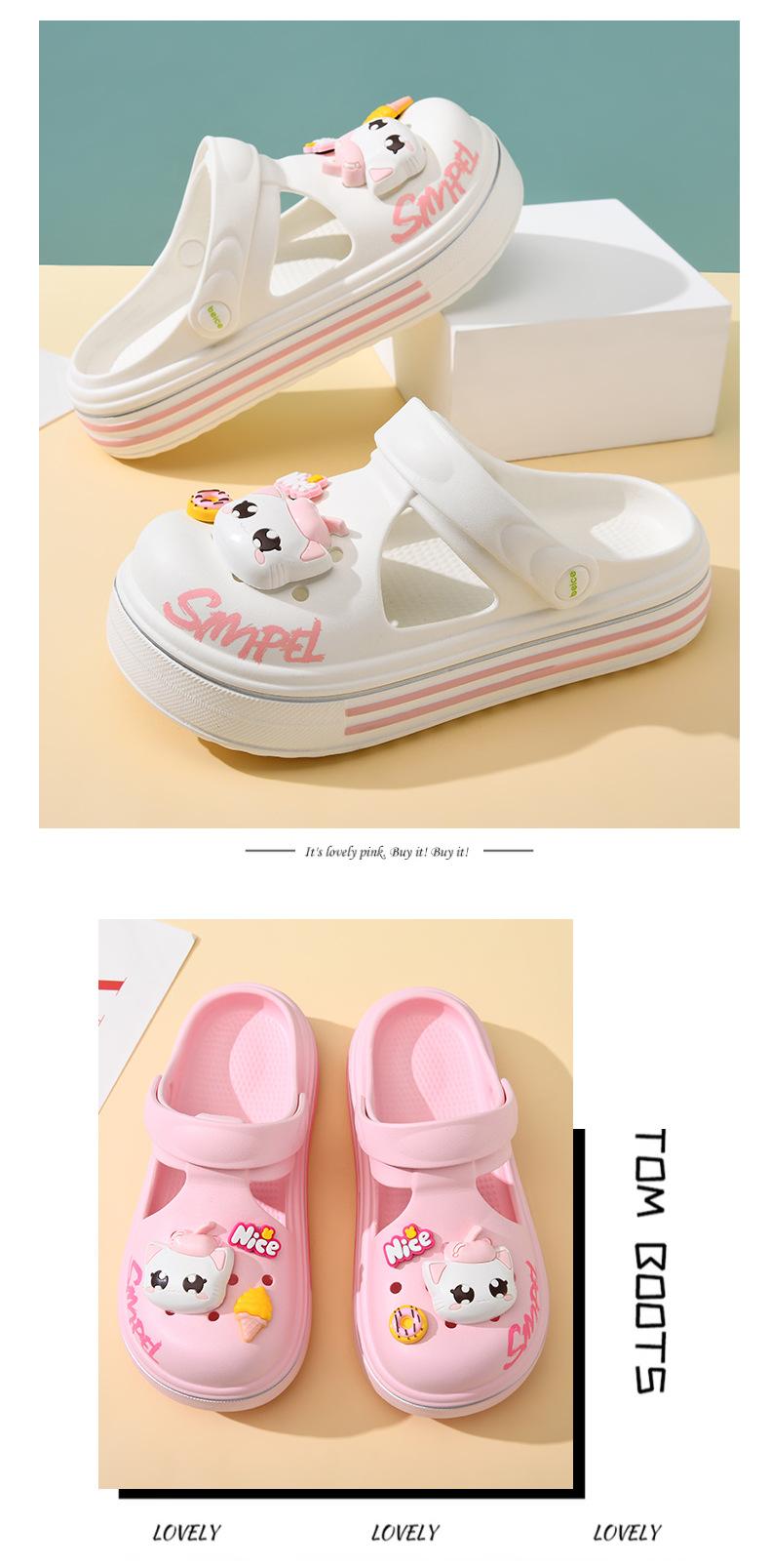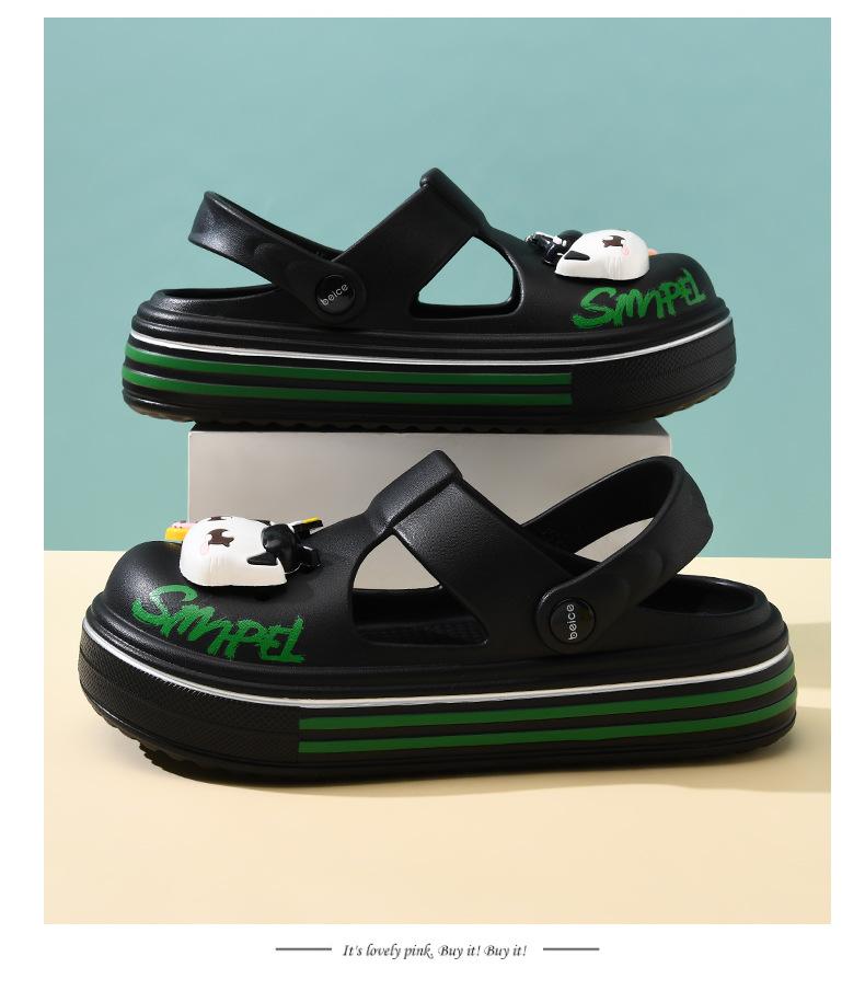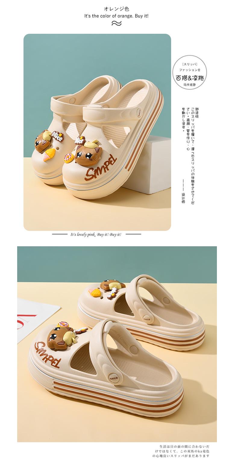 Zapatos Croc de Suela Gruesa para Mujer Nuevas Pantuflas Baotou de Verano Antideslizantes y Desodorantes Dibujos Animados Resistentes al Desgaste Eva Pies Sin Mal Olor Pantuflas de Playa
