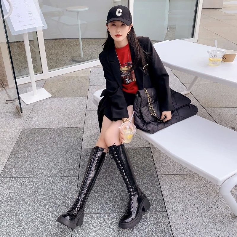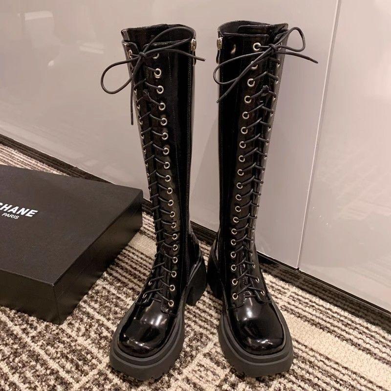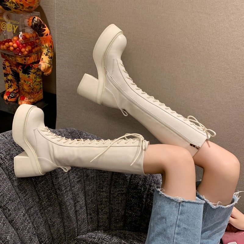 Botas de Caballero para Mujer 2025 Nuevo Otoño/Invierno Suela Gruesa Media Caña Forro Polar Botas Martin Tubo Alto Blancas Botas de Motociclista