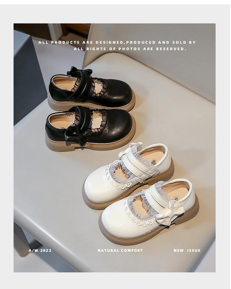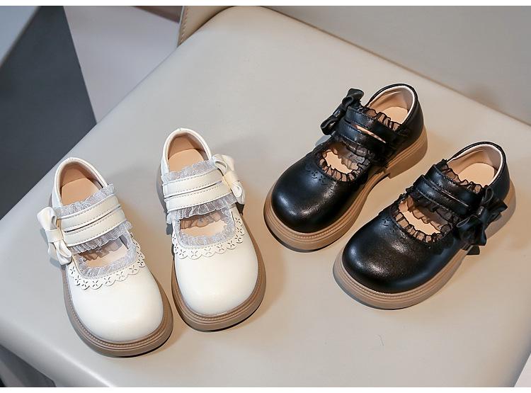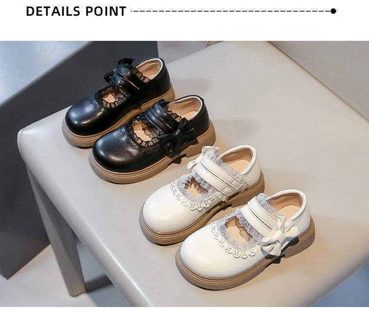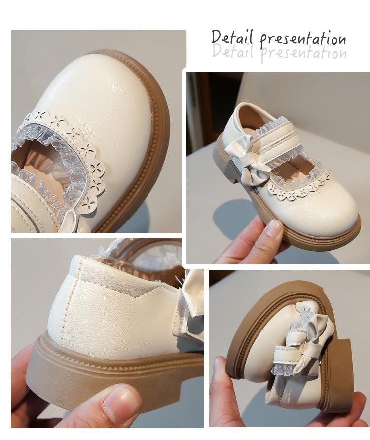 Zapatos de Niña 2025 Primavera y Otoño Nuevos Zapatos de Cuero para Niñas Zapatos de Princesa con Lazo y Encaje para Niñitas Flats Estilo Bebé