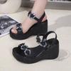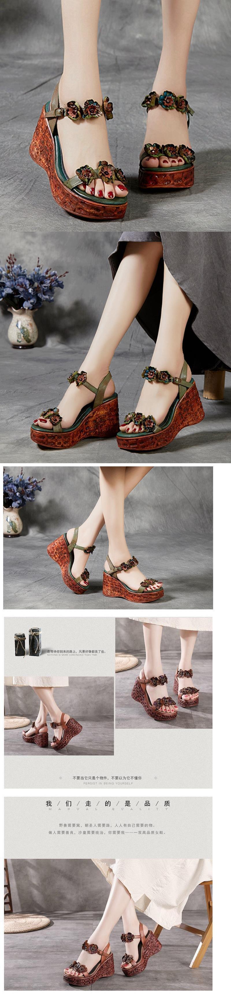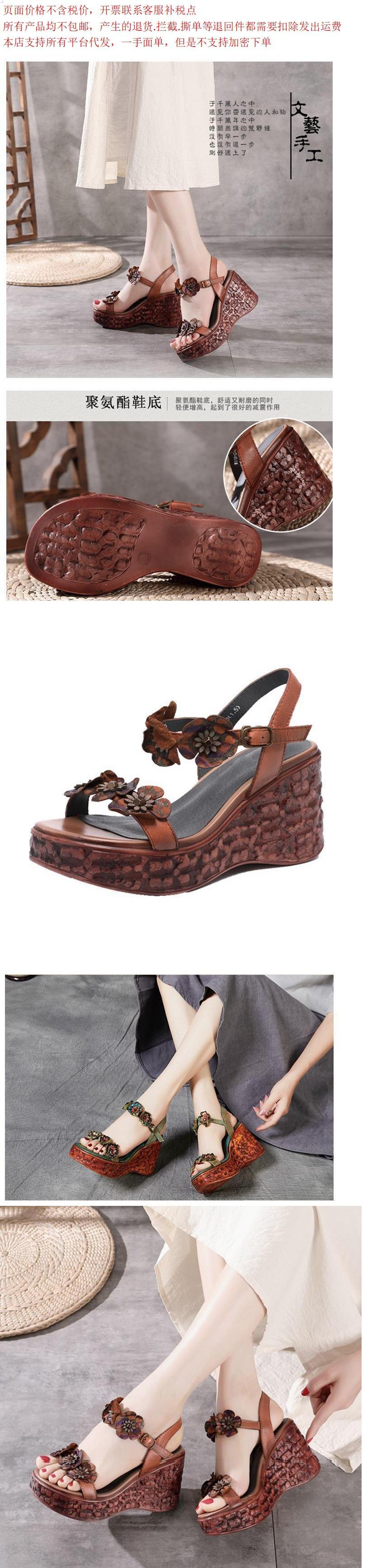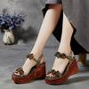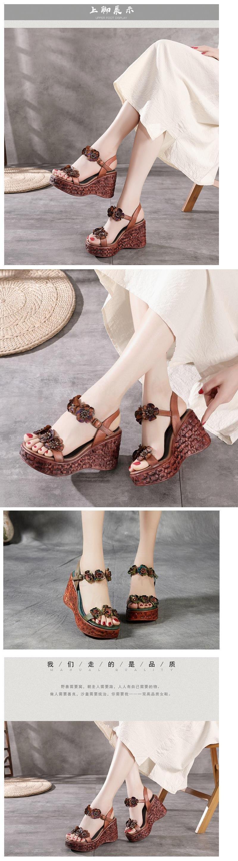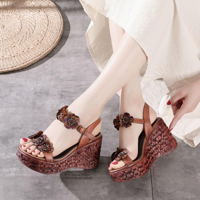 Sandalias de Cuña de Verano 2023 para Mujer Estilo Étnico Retro Flor Hada Punta Abierta Tacón Super Alto Plataforma Hueca Mujer
