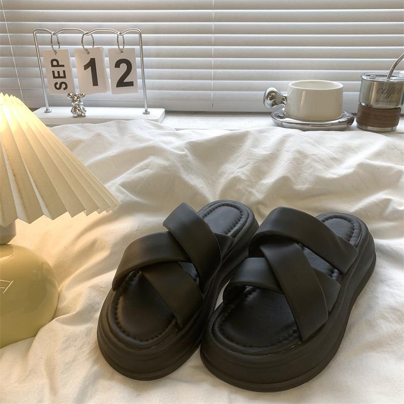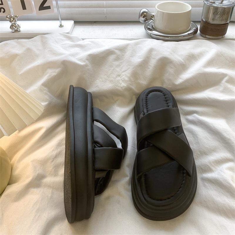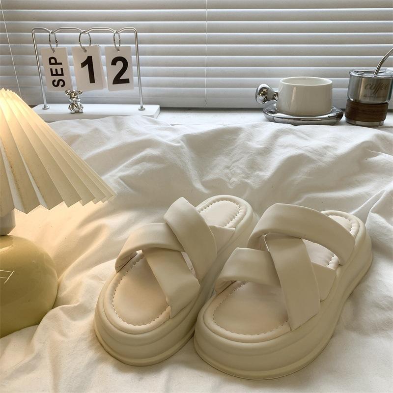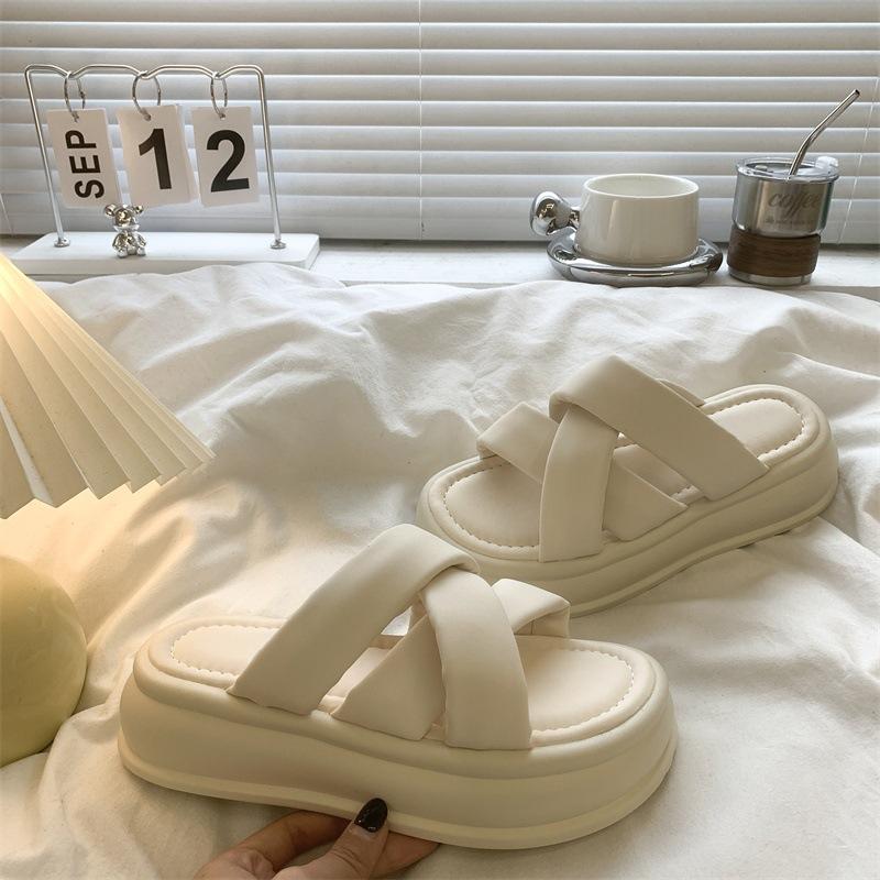 Pantuflas de Suela Gruesa para Verano para Mujer 2025 Nuevo Estilo Francés de Alta Gama Estilo Hada Altas Sandalias de Playa