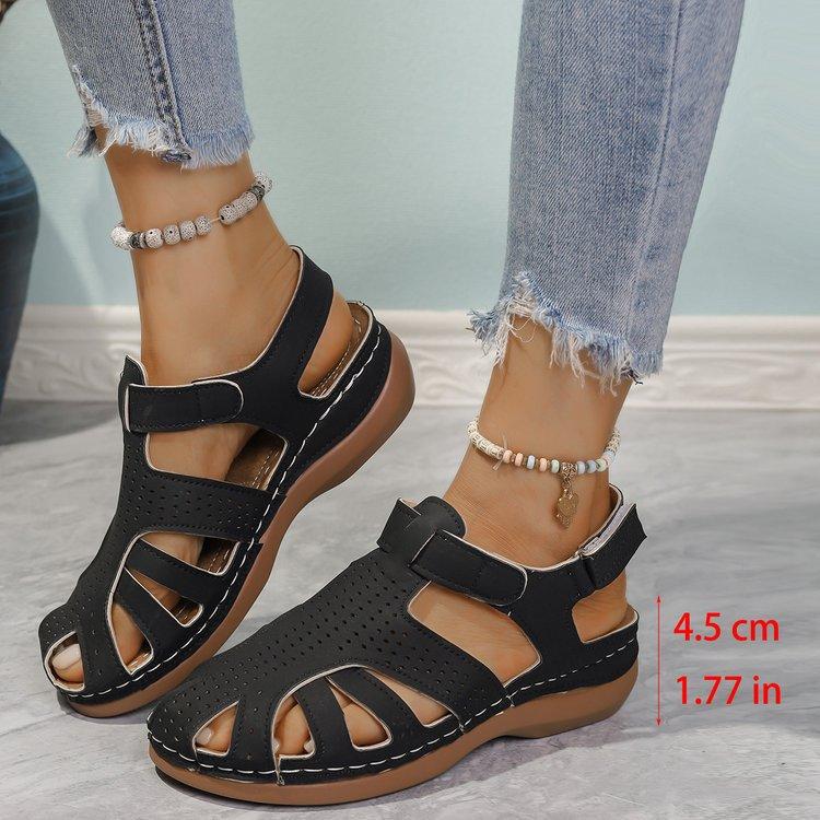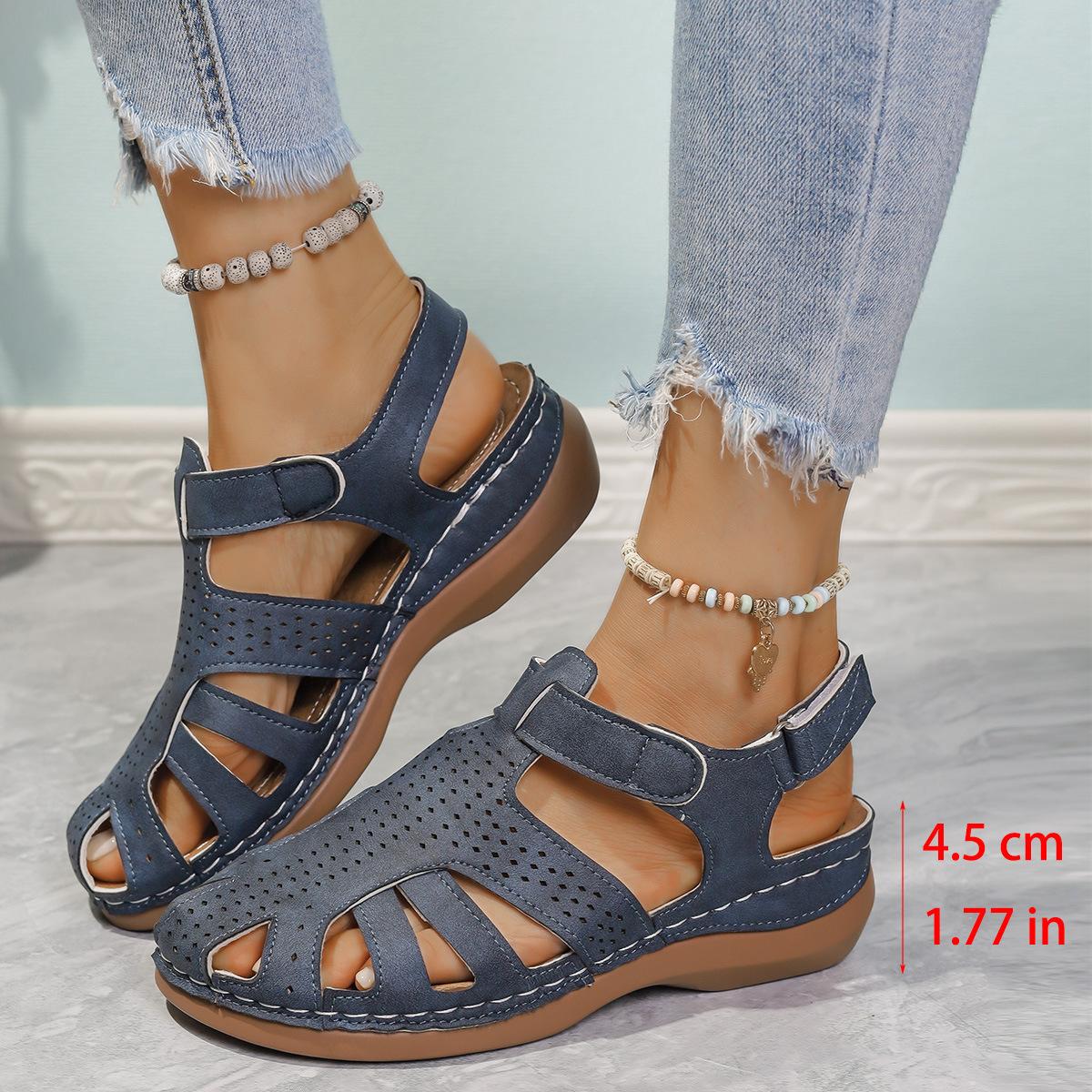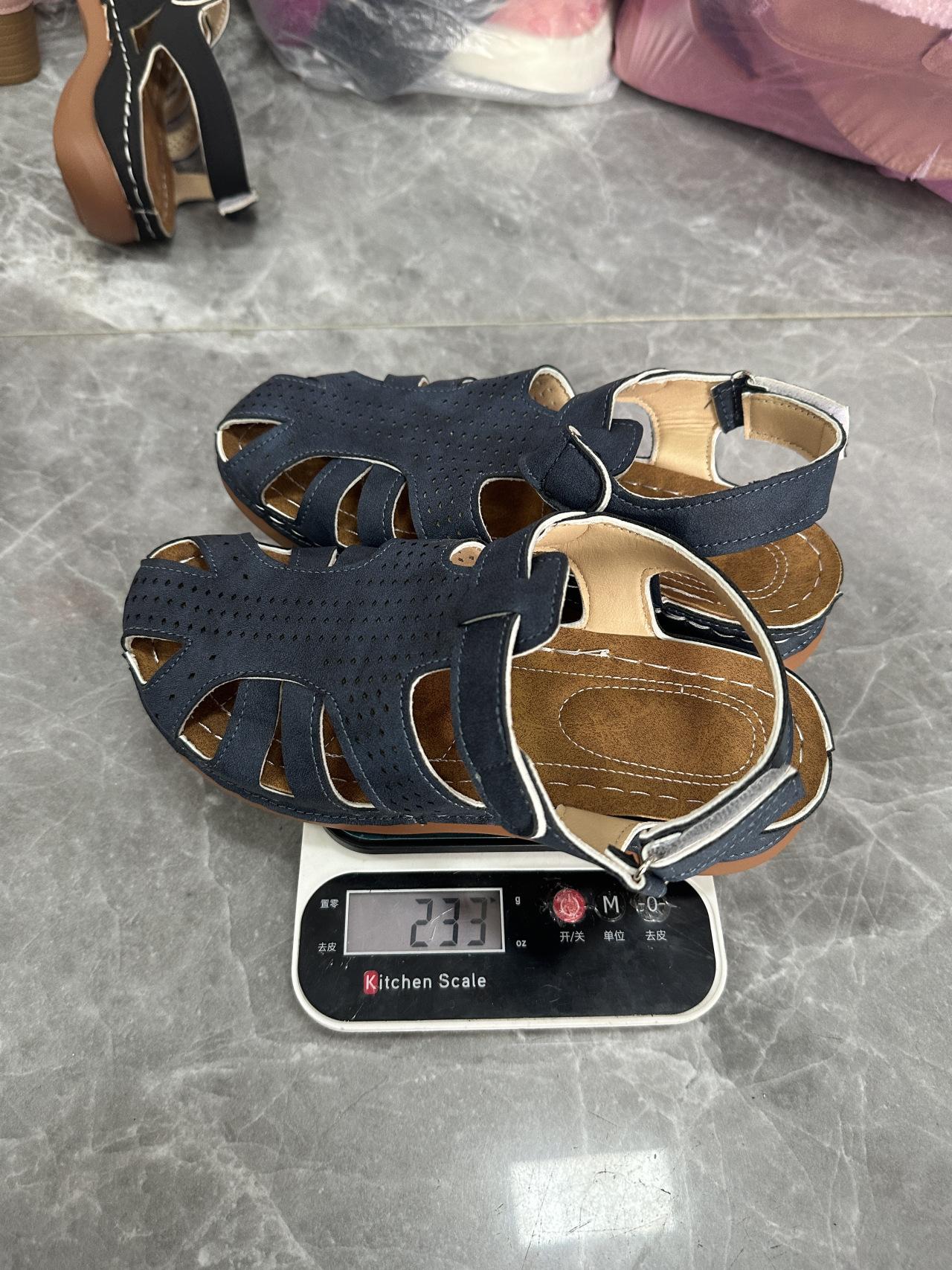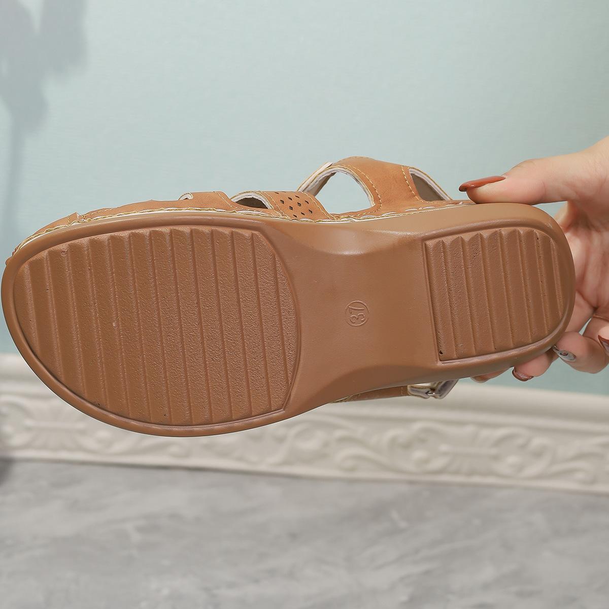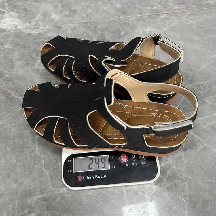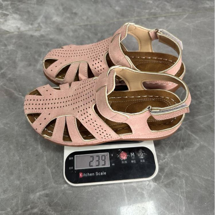 2025 Nuevas Sandalias de Punta Tejida Hueca de Talla Grande para Exportación Transfronteriza para Mujer Punta Redonda Europea y Americana Cómodas Sandalias Romanas