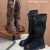 Turn-Over Otoño e Invierno 2025 Nuevas Botas de Suela Gruesa para Mujer, Botas de Caballero por Encima de la Rodilla de Tacón Grueso de Doble Uso, Modernas de Primavera y Otoño