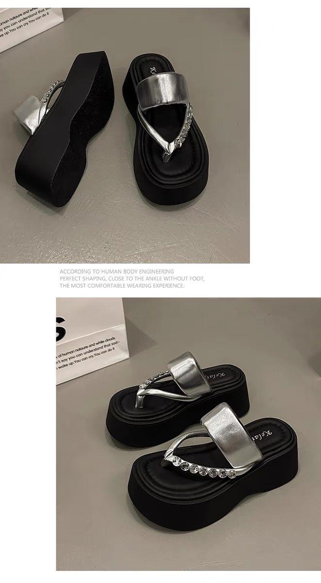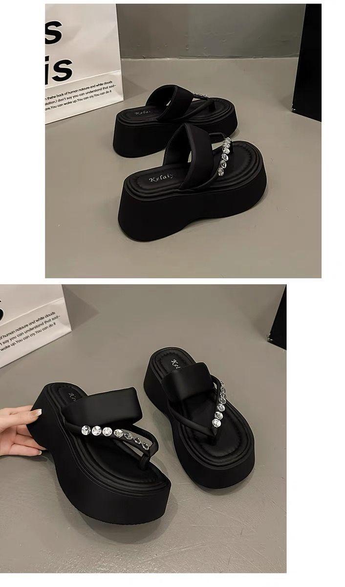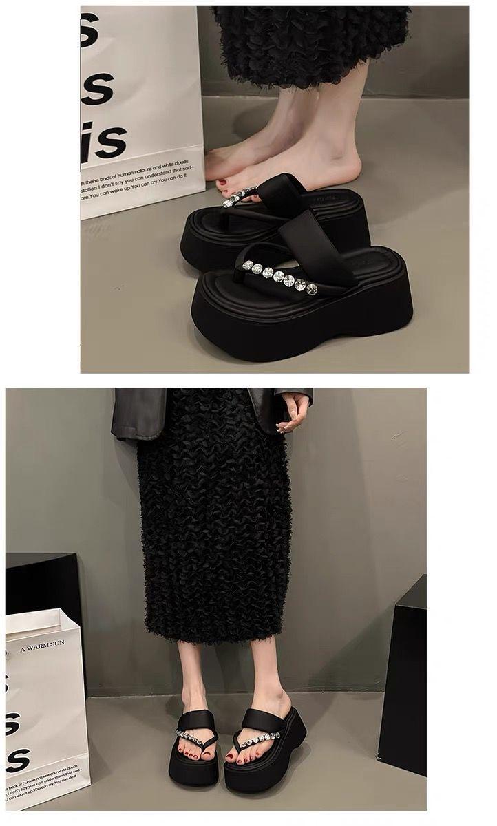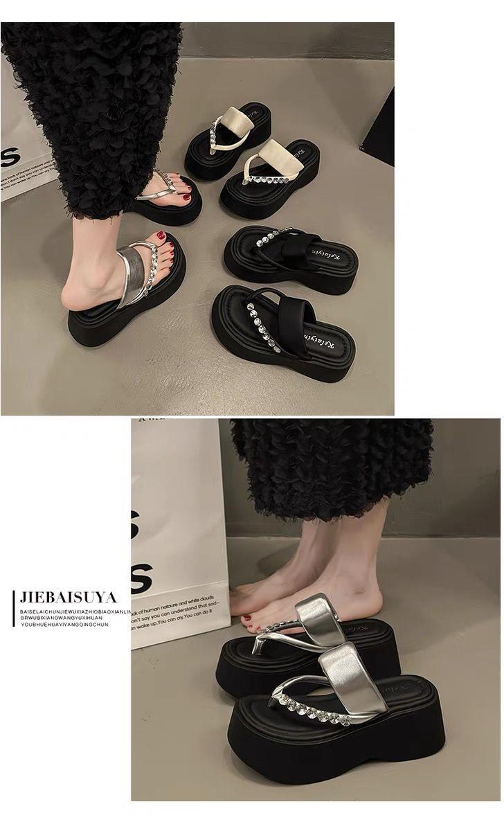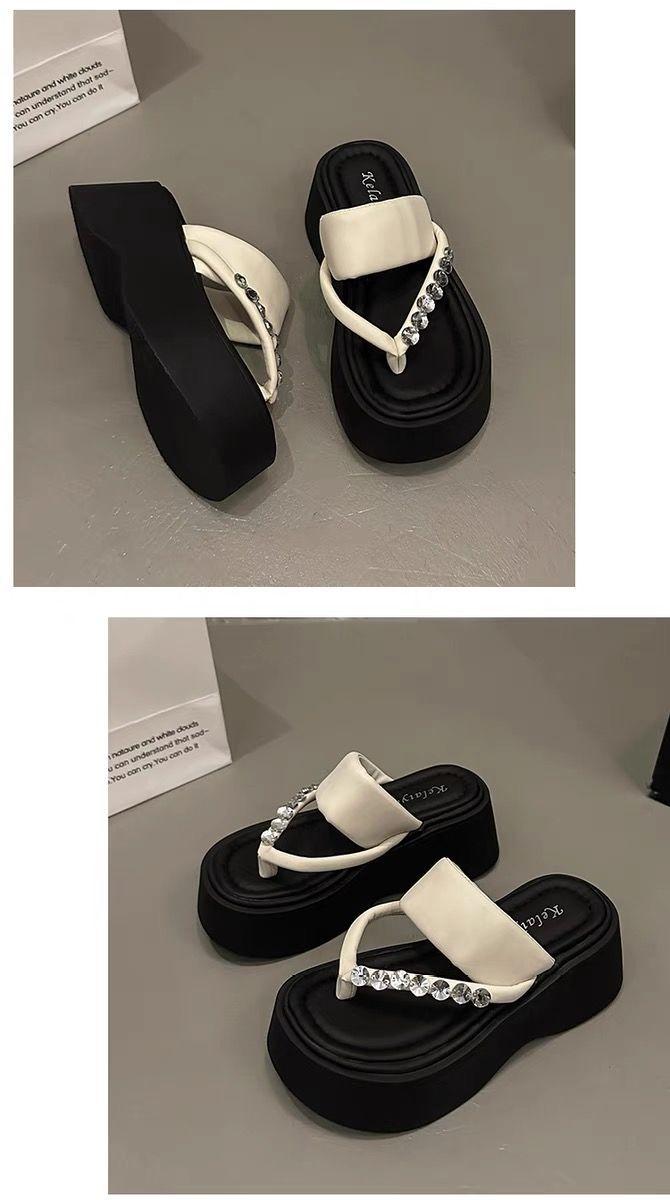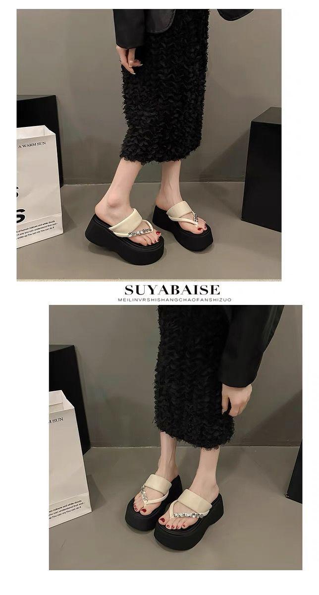Chanclas de Pedrería Modernas y Versátiles para Verano para Mujer para Exterior Plataforma de Celebridad de Internet Suela Gruesa Sandalias de Playa Marítima