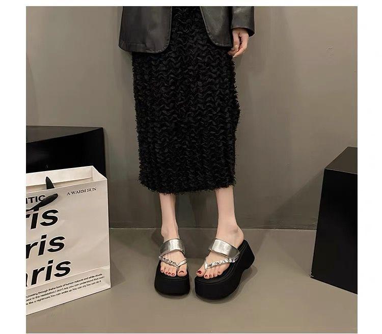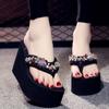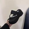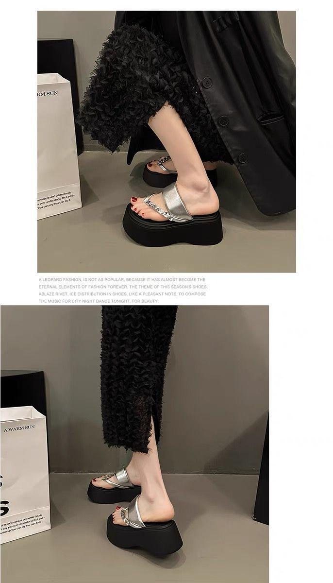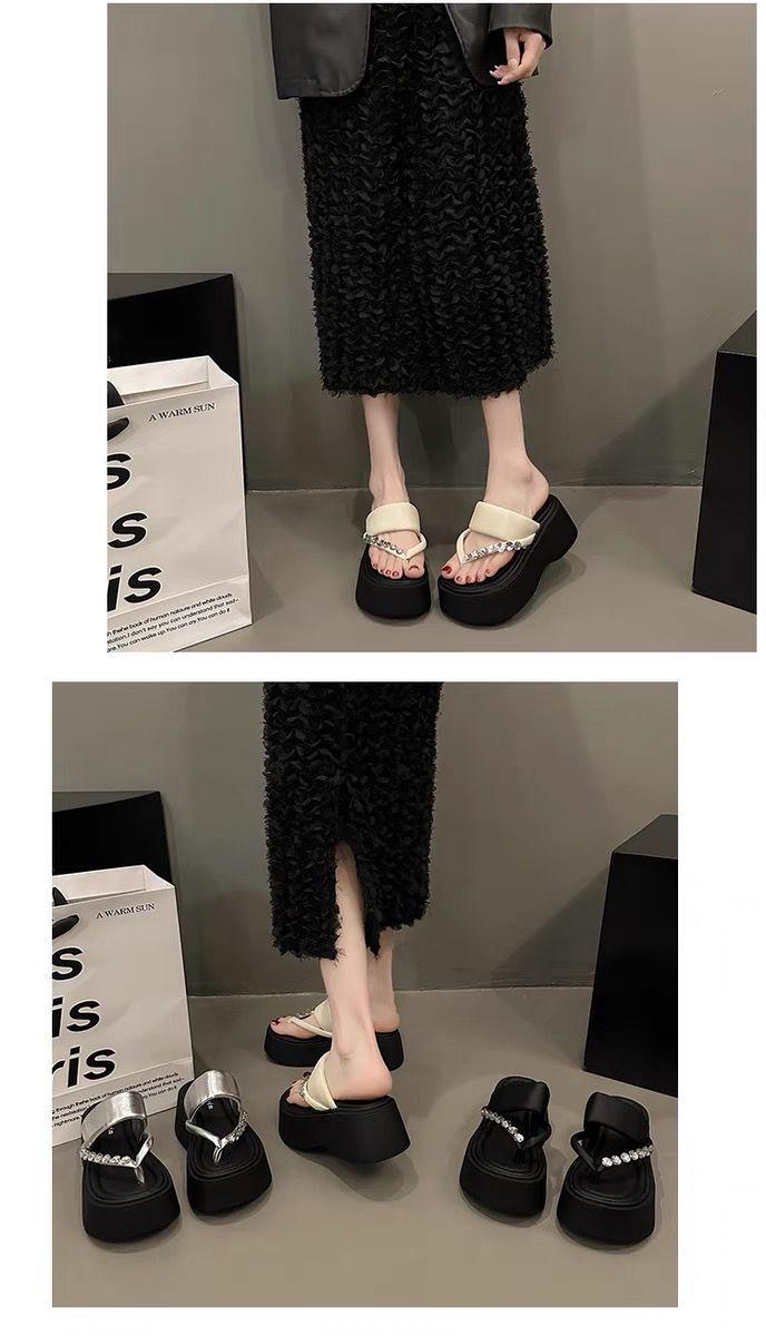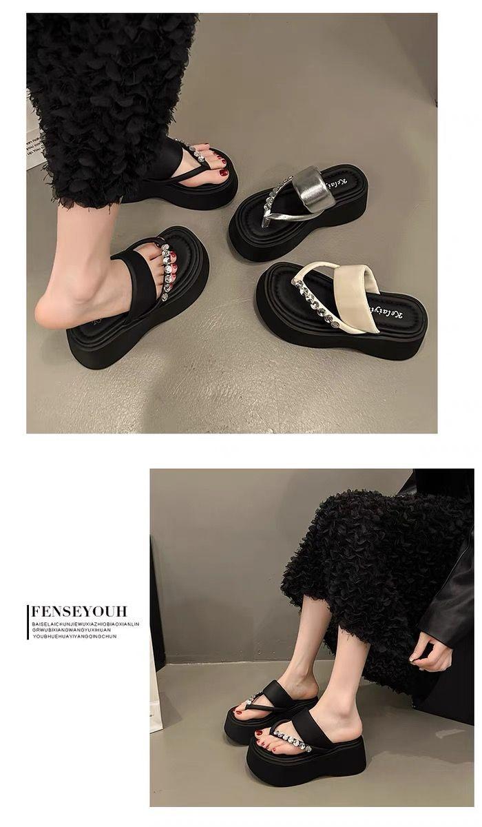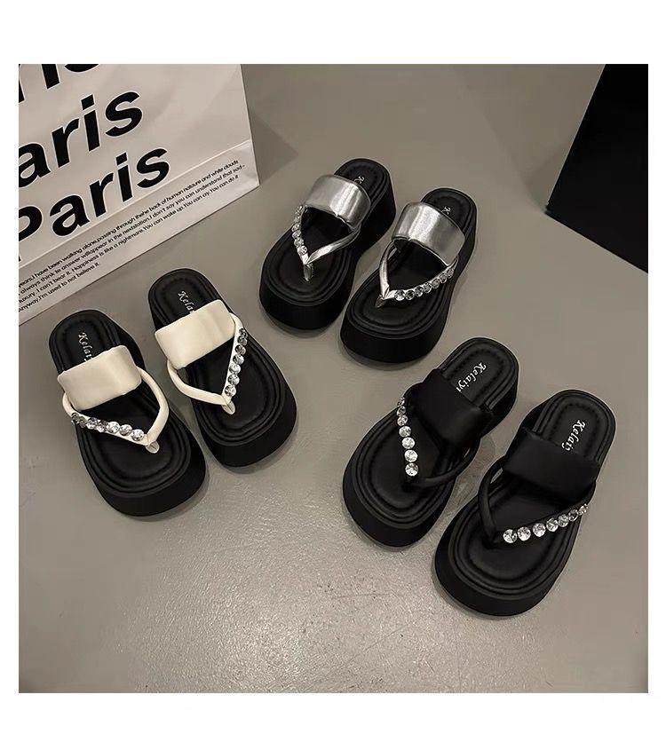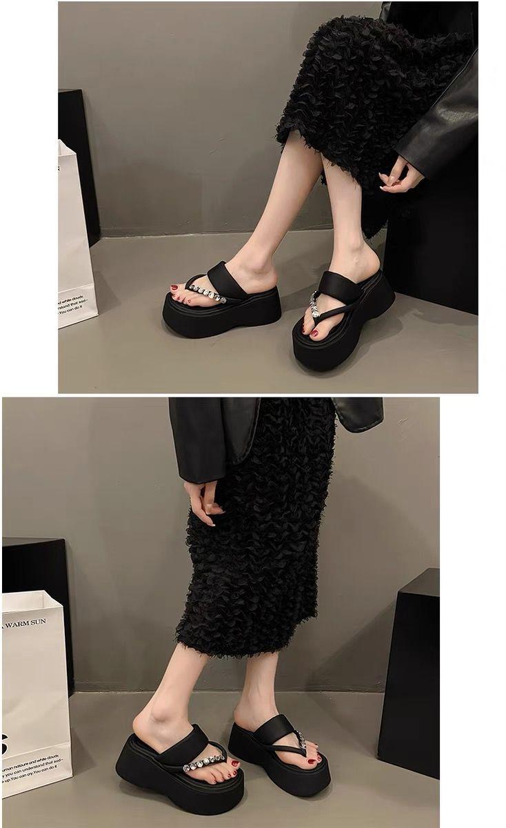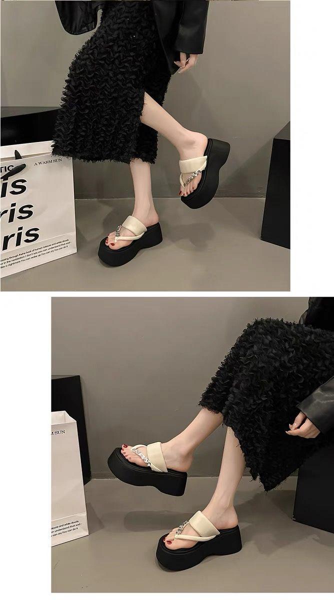 Chanclas de Pedrería Modernas y Versátiles para Verano para Mujer para Exterior Plataforma de Celebridad de Internet Suela Gruesa Sandalias de Playa Marítima