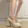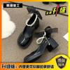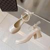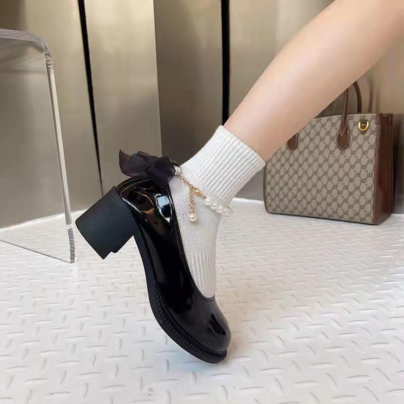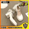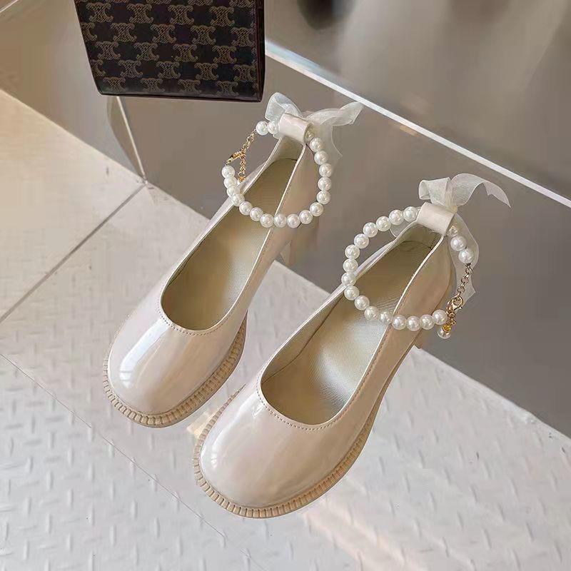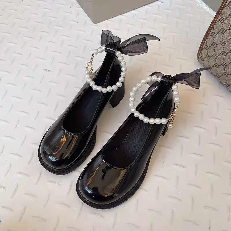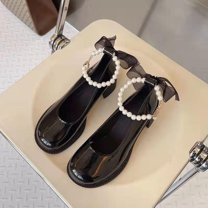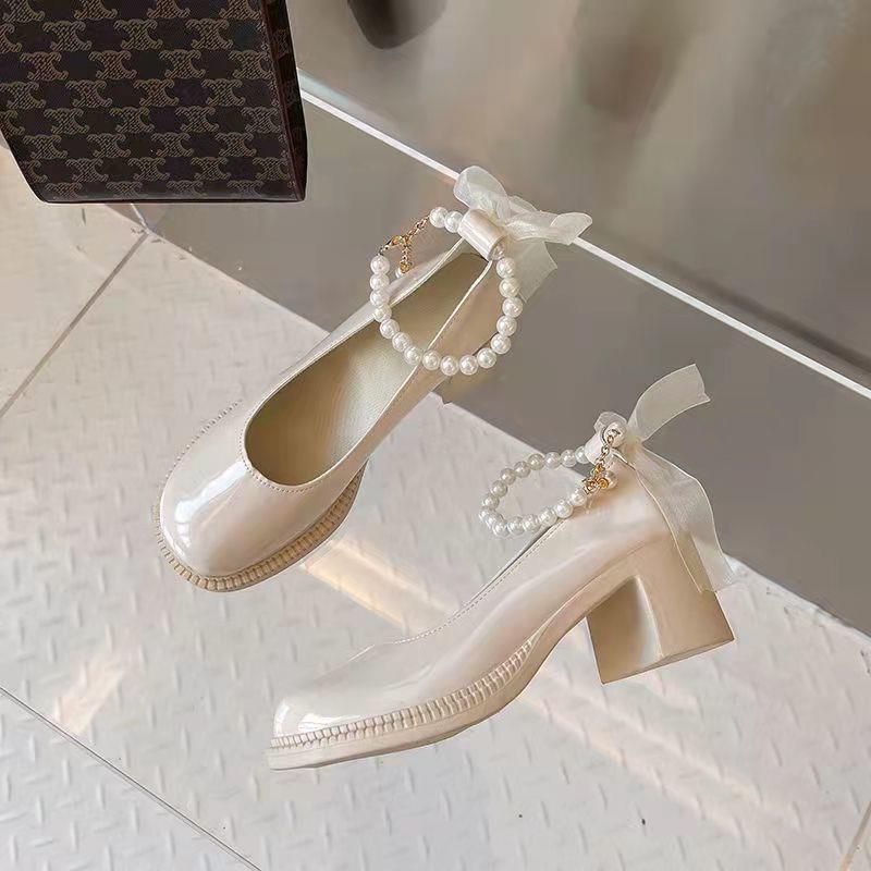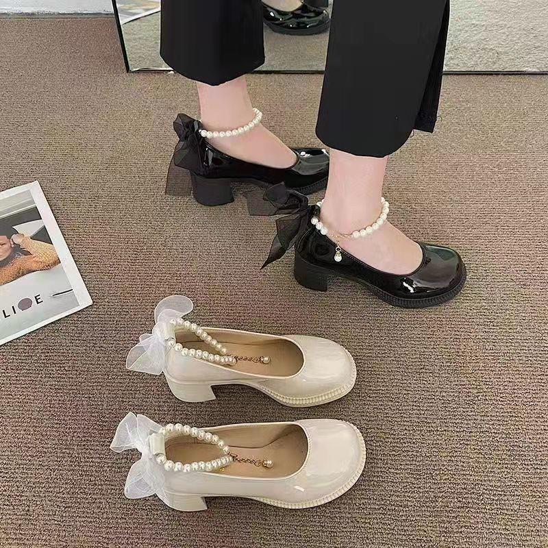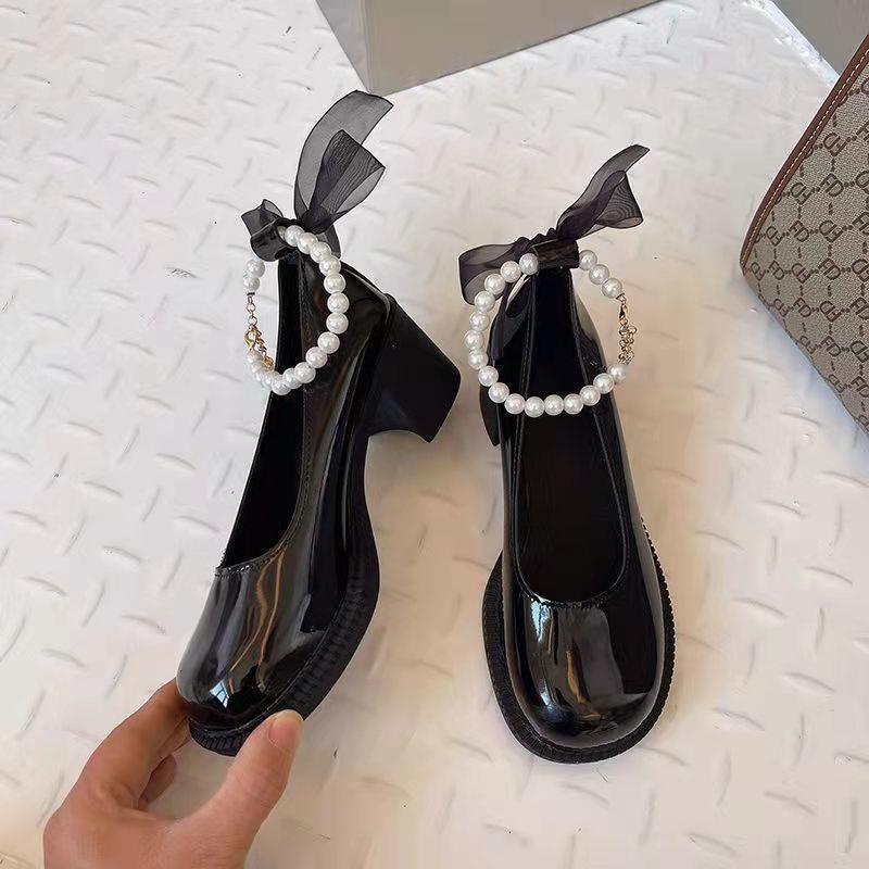 Zapatos de mujer Mary Jane 2023 primavera nuevos retro Perla lazo tacones altos franceses zapatos de cuero de tacón grueso de hadas para mujer